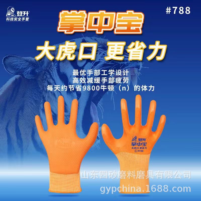 Dengsheng Palm 보물 788 통기성 내마모성 미끄럼 방지 강철 건설 토지 대형 호랑이 입 고무 양각 노동 보호 장갑