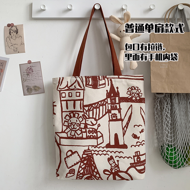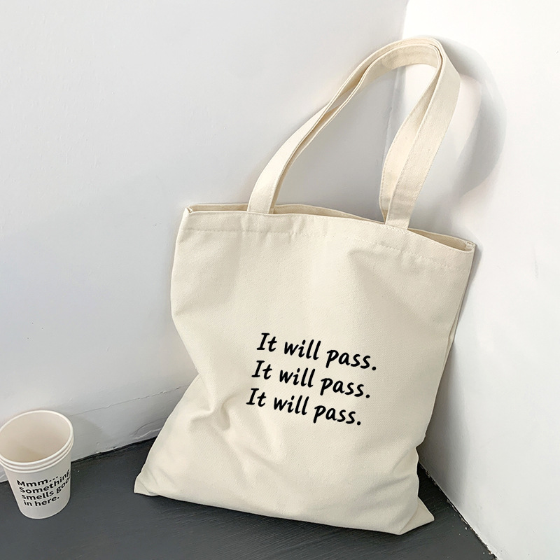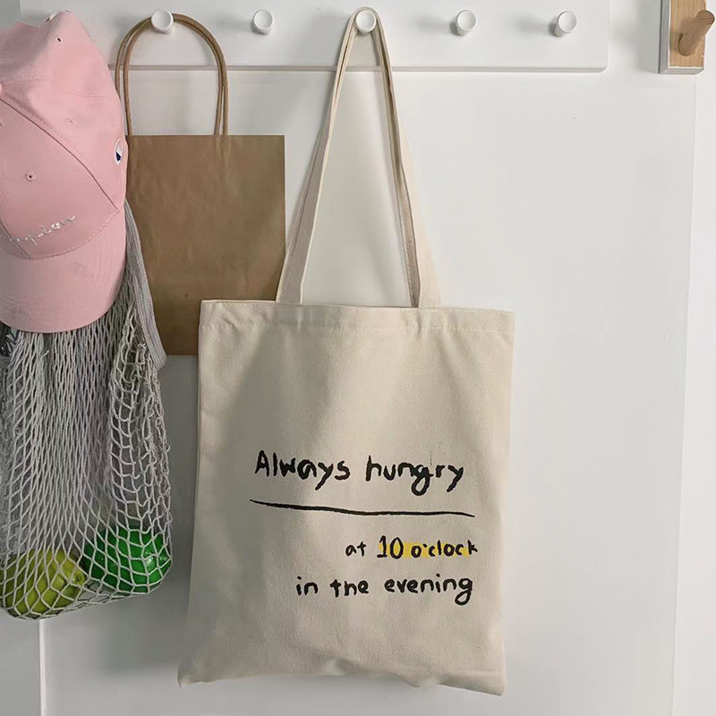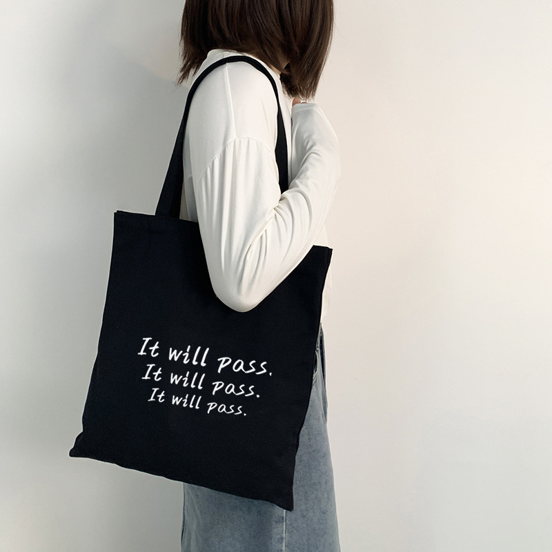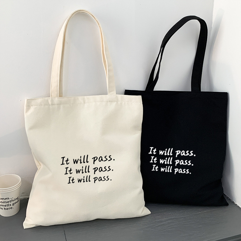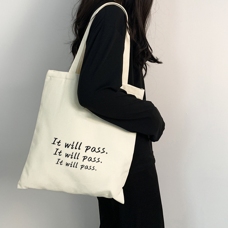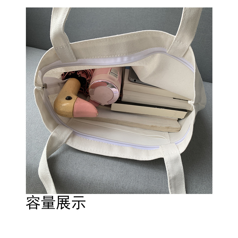 여름 간단한 편지 휴대용 캔버스 가방 지퍼 숄더 백 캐주얼 천 가방 간식 쇼핑 컴퓨터 책 가방 여성용스토어 가기
