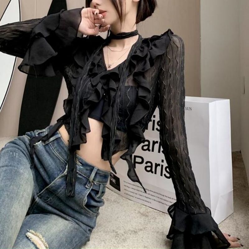 가을 여성 스웨터, 레이스 탑, 여성 디자인 숏 스타일, 섹시하고 매력적인 니트 가디건