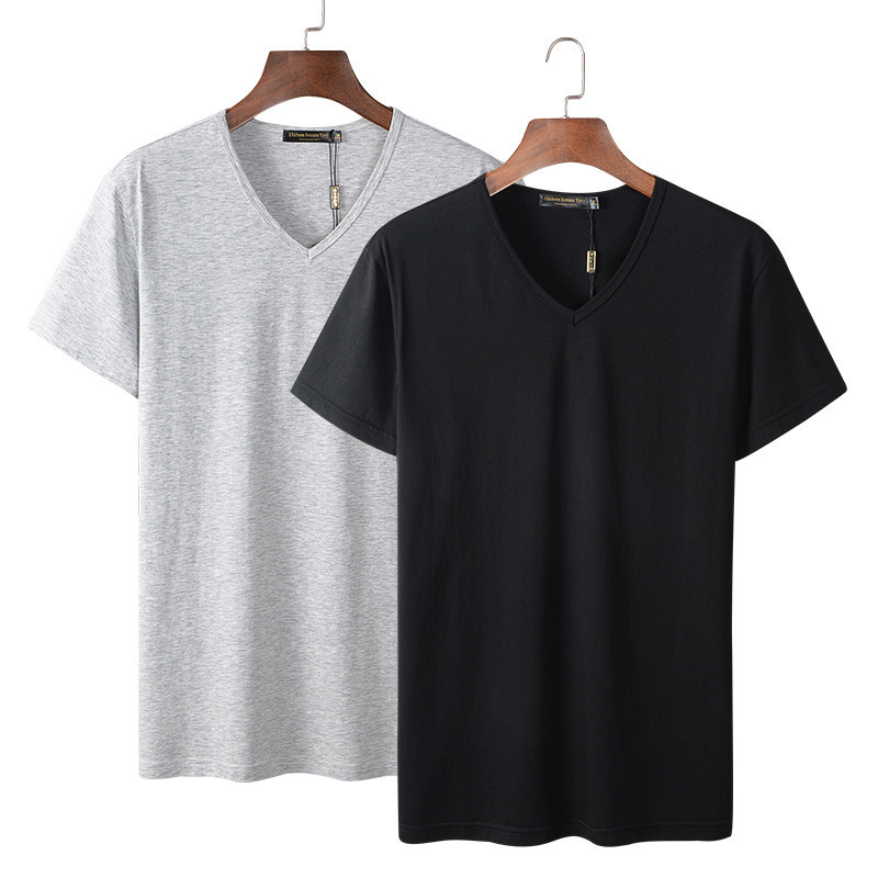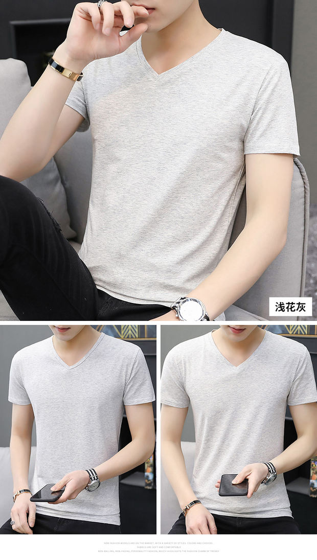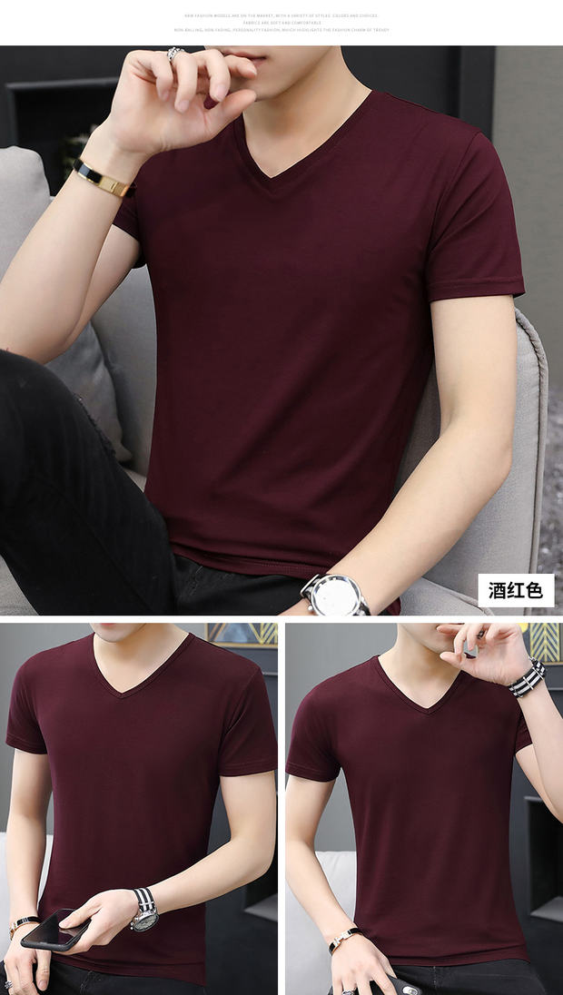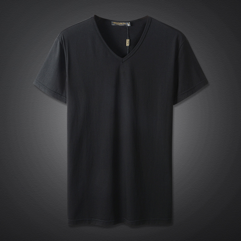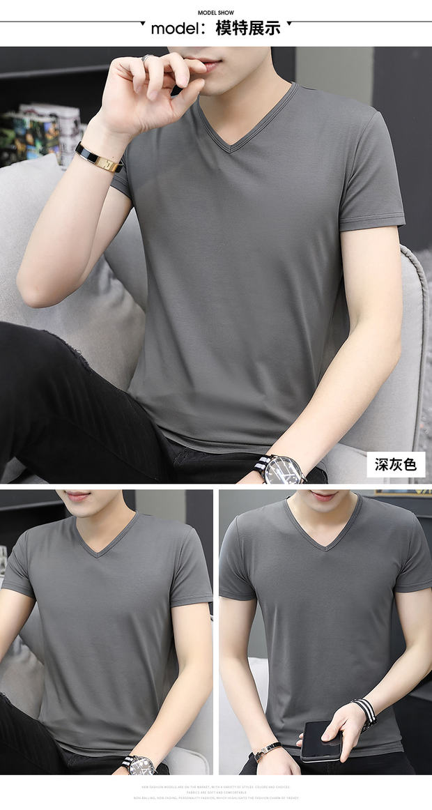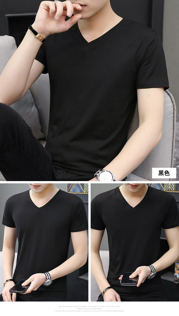 모달 남성 반팔 티셔츠 치킨 하트 브이넥 퓨어 블랙 반팔 아이스 실크 슬림핏 여름 학생 베이스 셔츠 얇은 트렌디스토어 가기