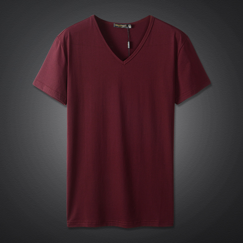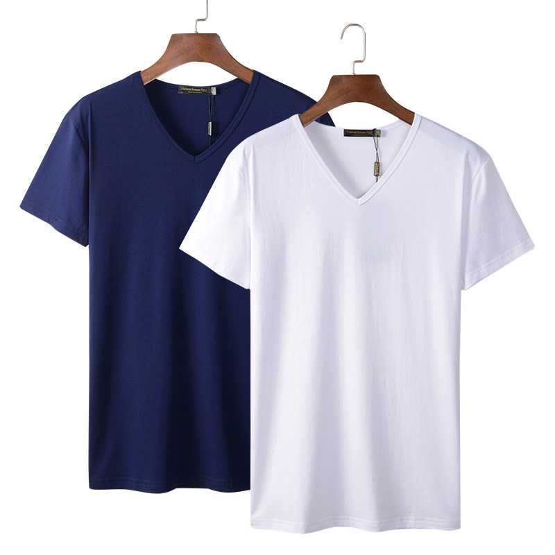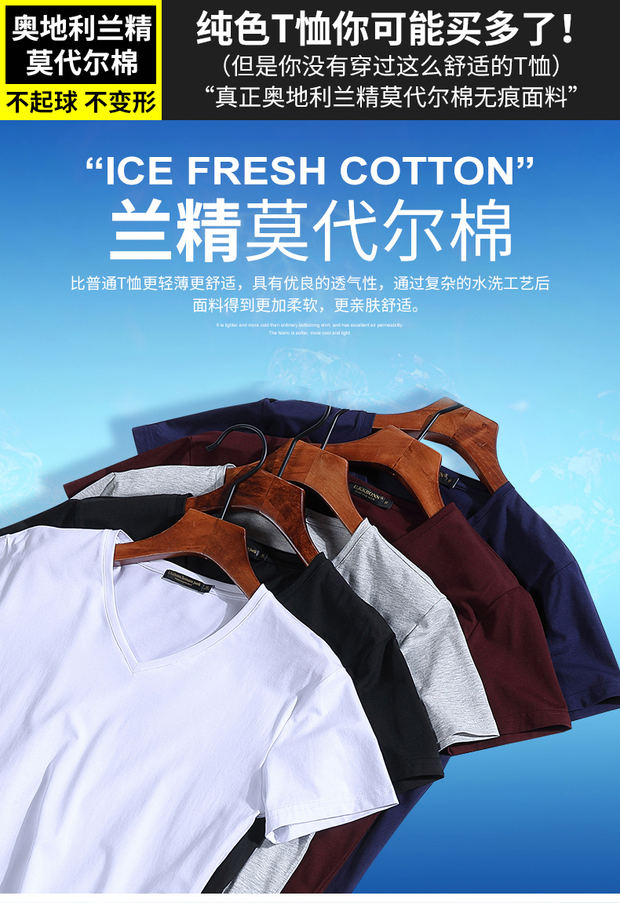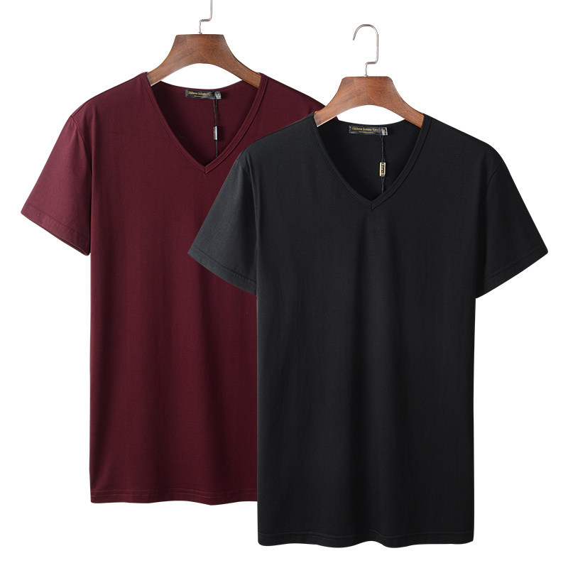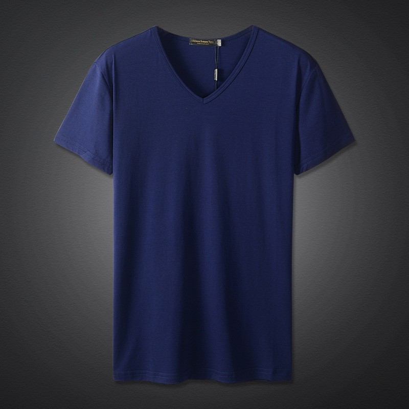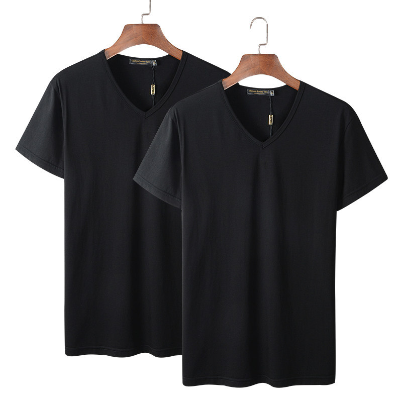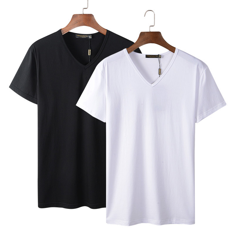 모달 남성 반팔 티셔츠 치킨 하트 브이넥 퓨어 블랙 반팔 아이스 실크 슬림핏 여름 학생 베이스 셔츠 얇은 트렌디스토어 가기