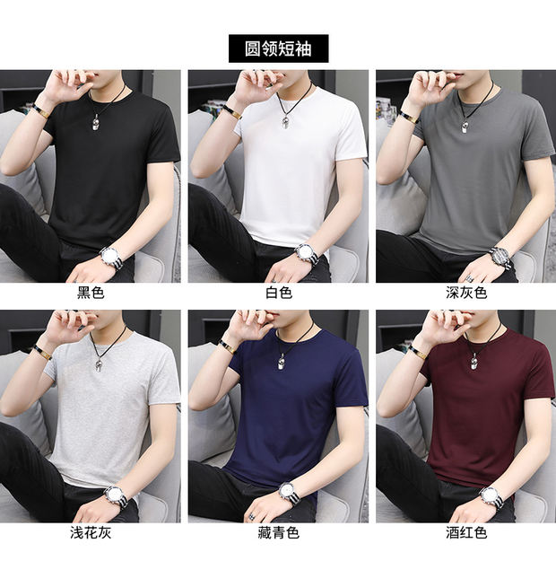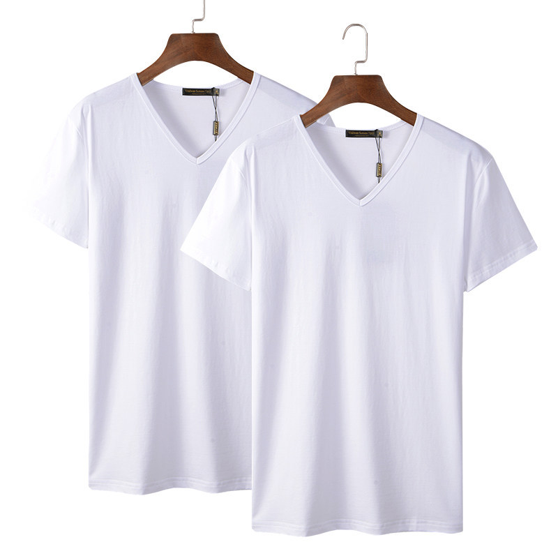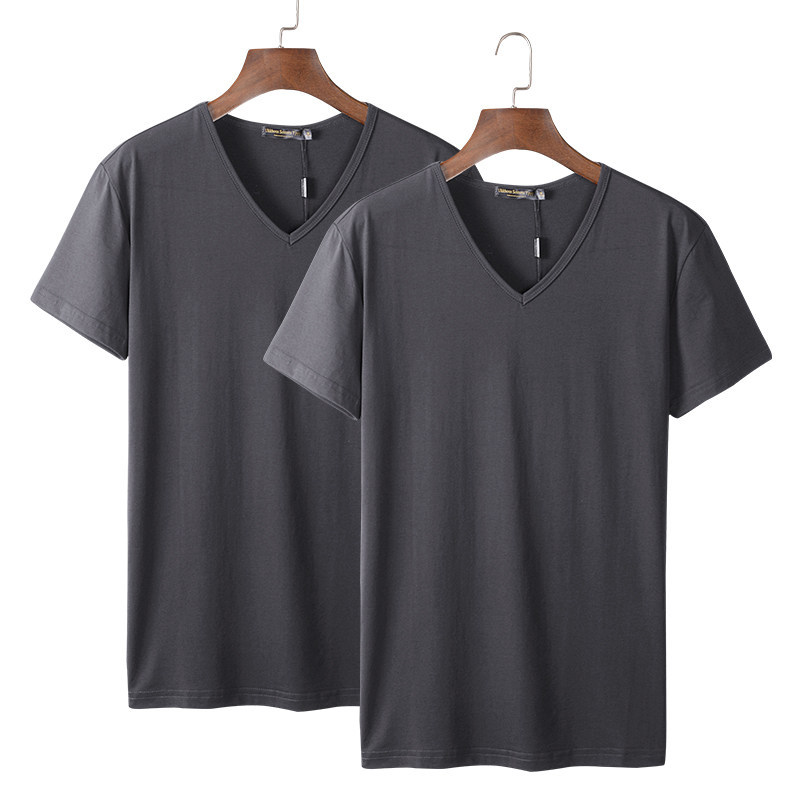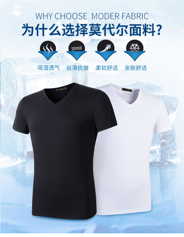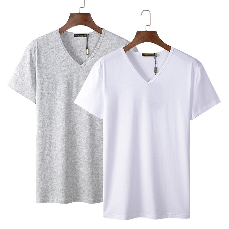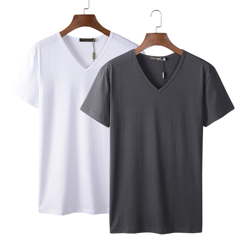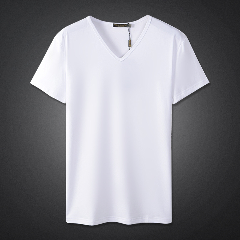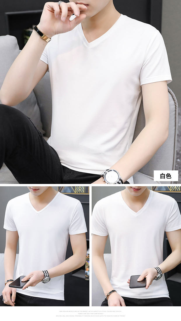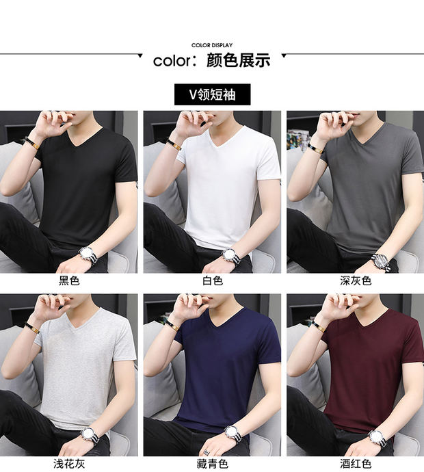 모달 남성 반팔 티셔츠 치킨 하트 브이넥 퓨어 블랙 반팔 아이스 실크 슬림핏 여름 학생 베이스 셔츠 얇은 트렌디
