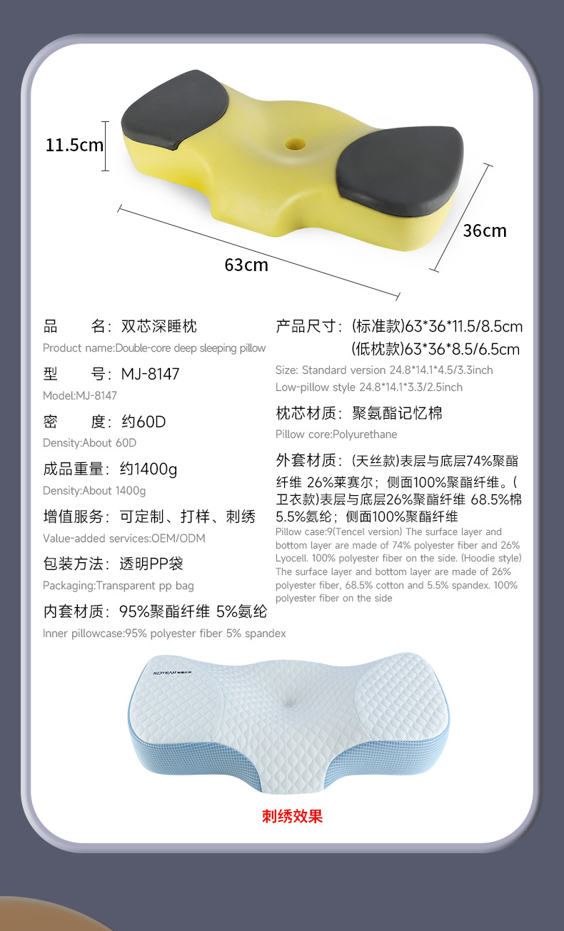 메모리폼 베개 베개심 높은 베개 경추 견인 무너지지 않는 느린 반발 수면 보조 인체공학적 메모리폼 베개 도매
