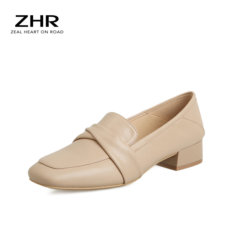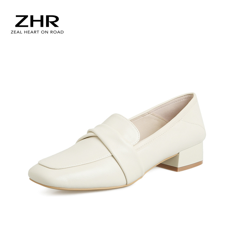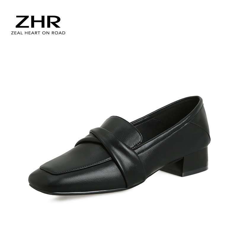 여성을위한 ZHR 두꺼운 뒤꿈치 단일 신발 2023 여름 새로운 영국 스타일 작은 가죽 신발 광장 발가락 캐주얼 슬립 온 로퍼스토어 가기