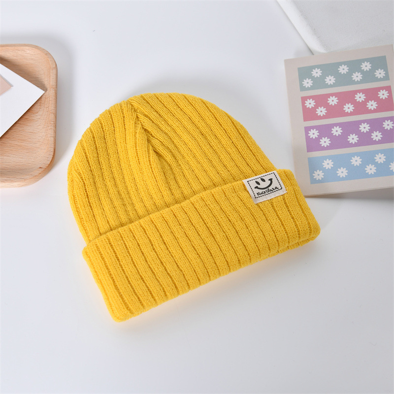 가을과 겨울 새로운 어린이 캐주얼 패션 따뜻한 니트 모자 아기 소녀 귀여운 스마일 얼굴 풀오버 모자 소년 조수스토어 가기