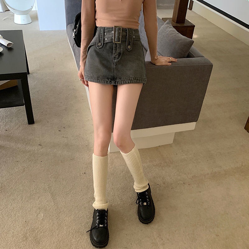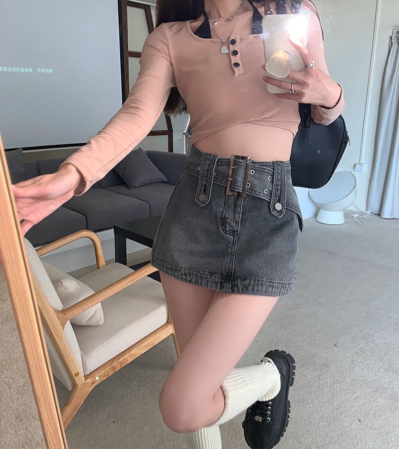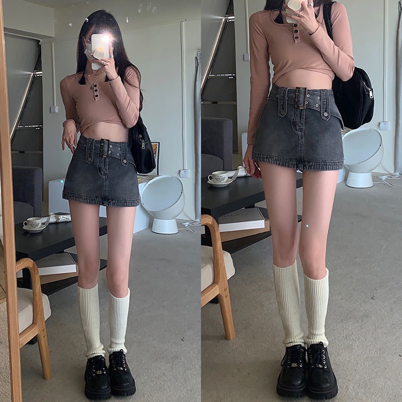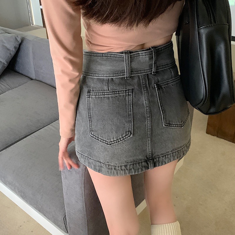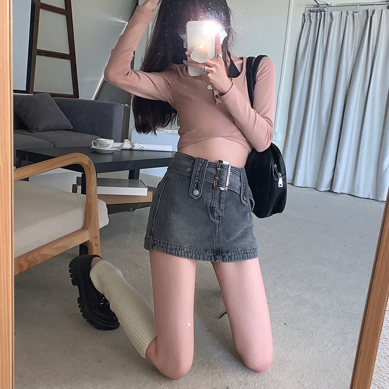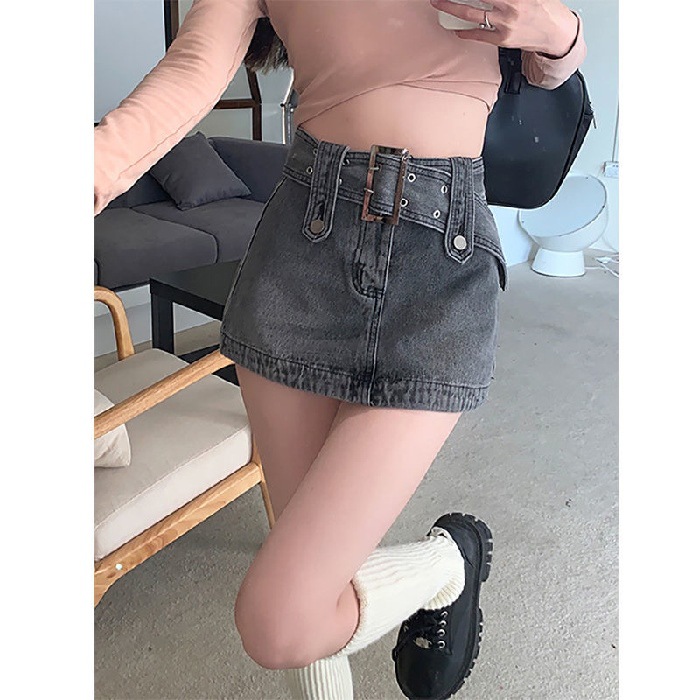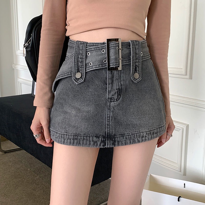 봄 2023 새로운 빈티지 밀레니엄 스파이스 걸 메탈 벨트 낮은 허리 슬림 핏 엉덩이 스커트 데님 스커트 여성