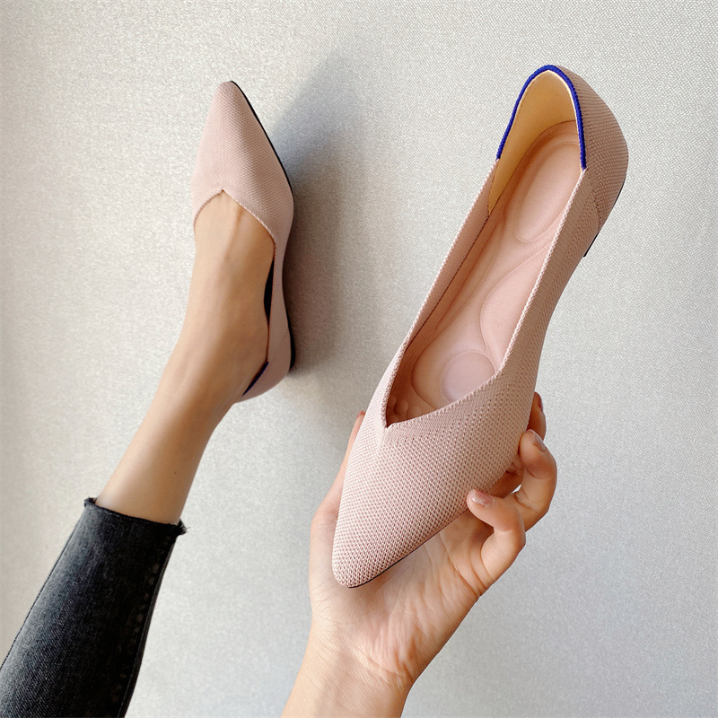 2023 새로운 니트 공주 같은 스타일 싱글 신발 달걀 롤 신발 콩 신발 여성용 니트 신발 해외 무역 크로스 보더 비행 직조 여성 신발