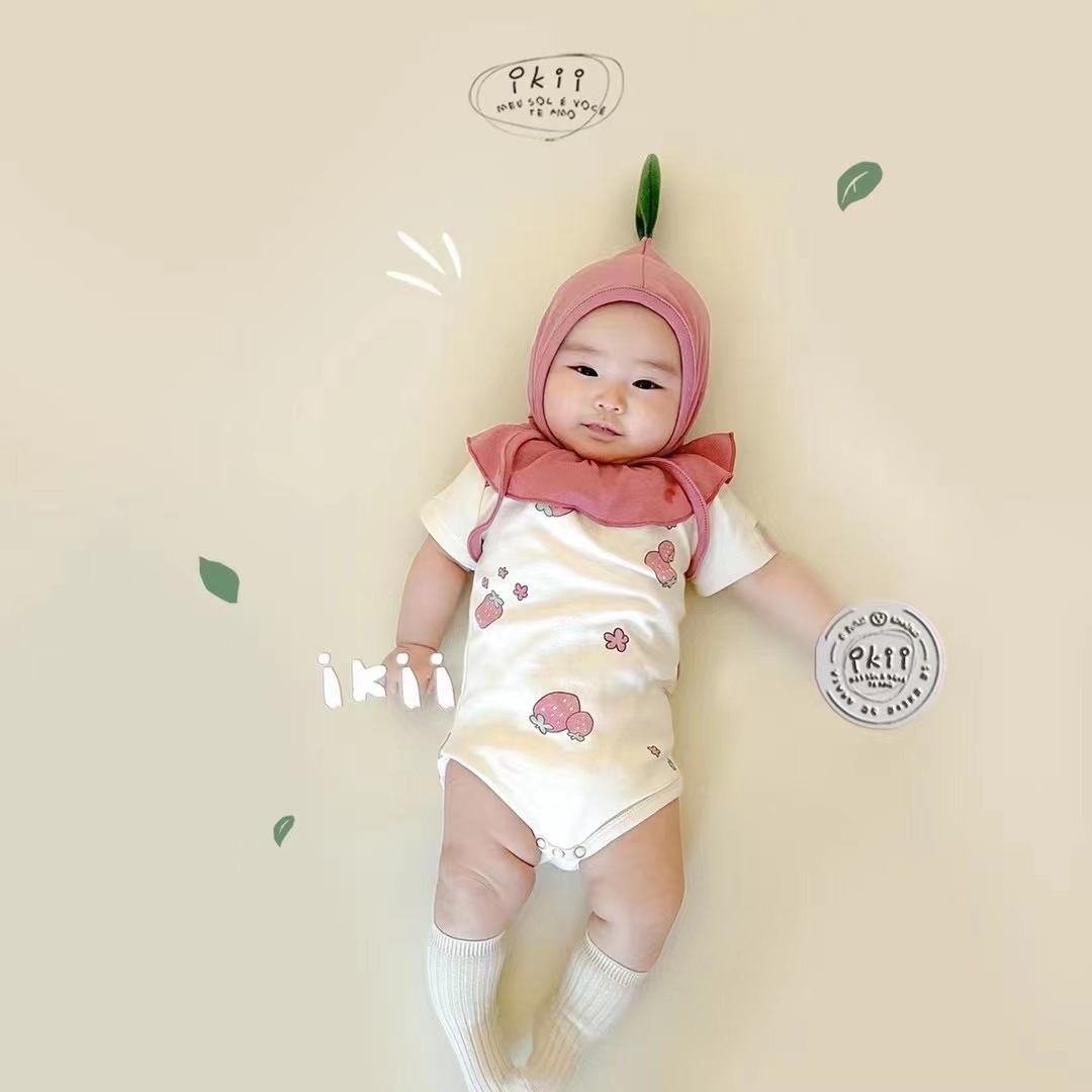 22 여름 인 스타일 한국식 아기의 Haxi 인터넷 인기 모든 경기 딸기 반팔 삼각형 등반 세트 어린이 랩 방귀 세트스토어 가기