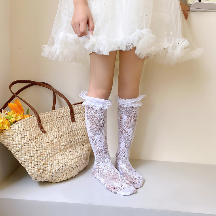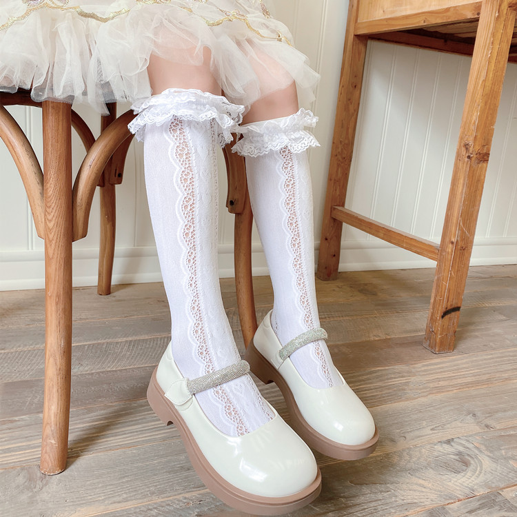 • 레이스 물결 모양의 가장자리 그물 종아리 화이트
