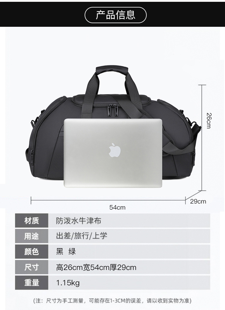 옥스포드 천 숄더백 겸용 백팩 남성용 독립 신발 수납칸 대용량 여행 피트니스 가방 로고