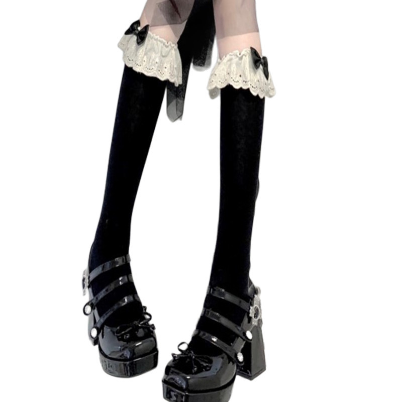 레이스 양말 레이스 종아리 양말 여성의 귀여운 일본 jk 활 중간 종아리 양말 레이스 업 스타킹 로리타 양말