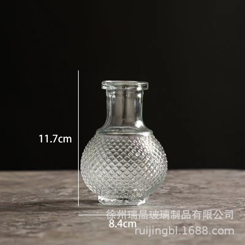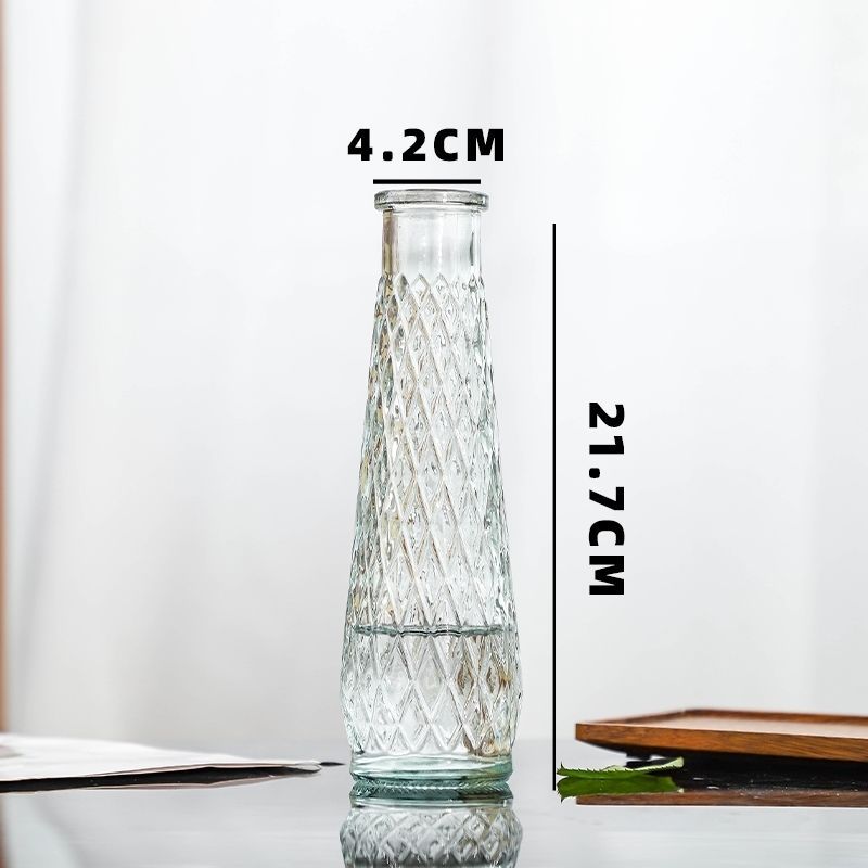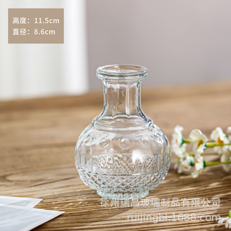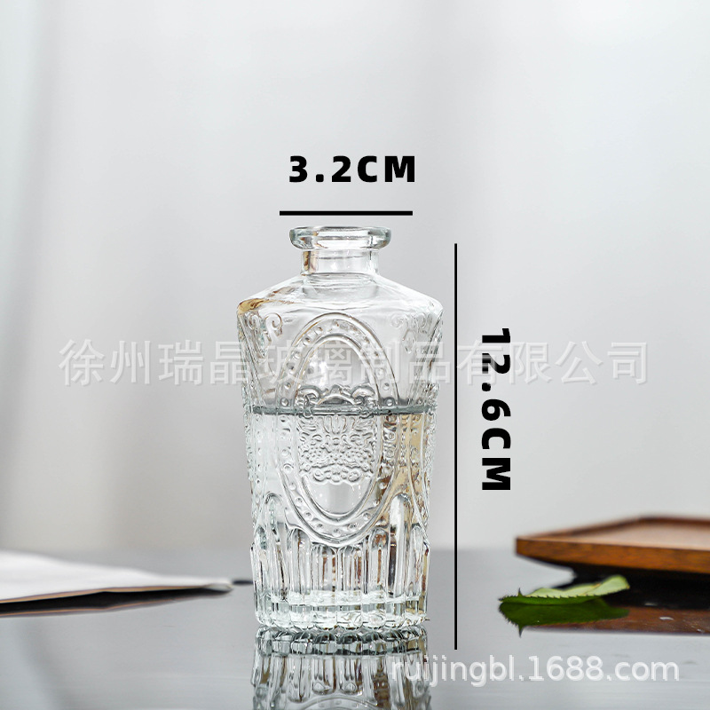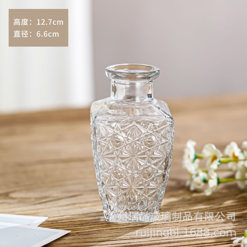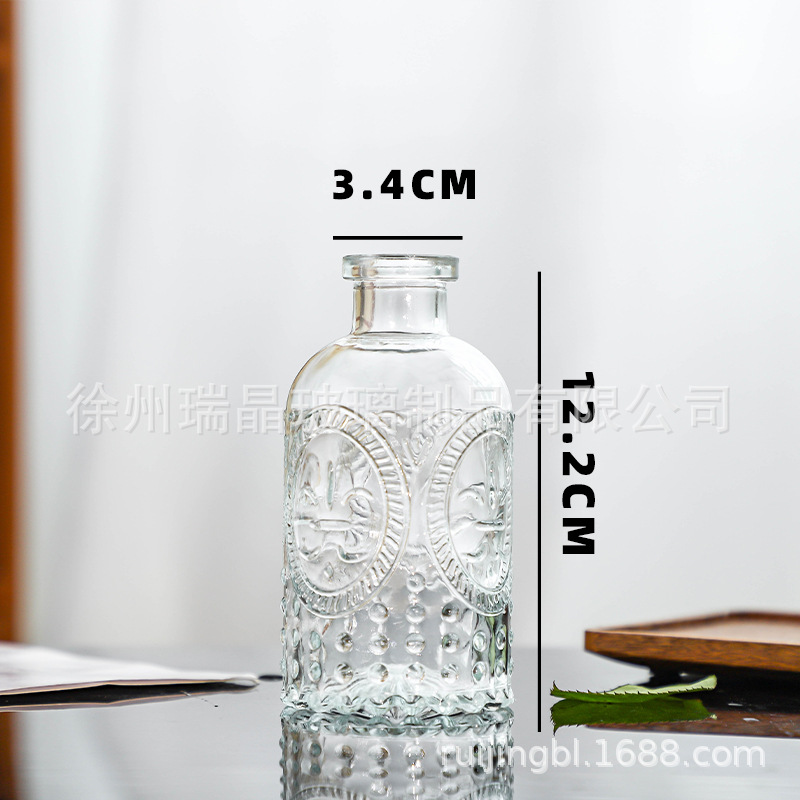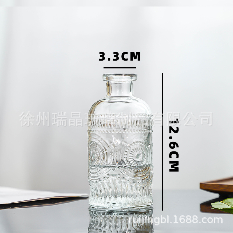빈티지 라이트 럭셔리 양각 투명 프랑스 스타일 유리 꽃병 스타일 홈 장식품 거실 포켓 꽃 배치 작은 꽃병