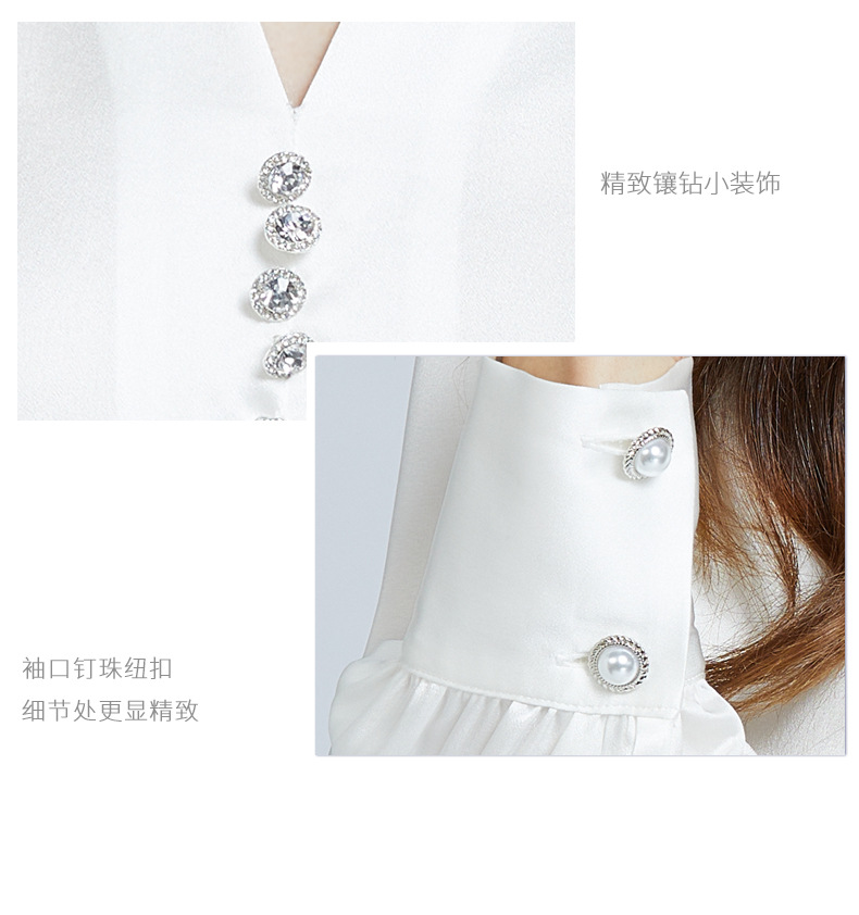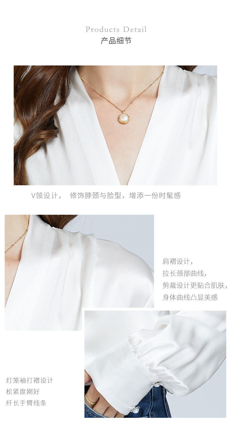 우아한 V-넥 셔츠 풀오버 여성용 실크 긴팔 여성용 셔츠 루즈한 코트 뽕나무 실크 캐주얼 루즈한 탑
