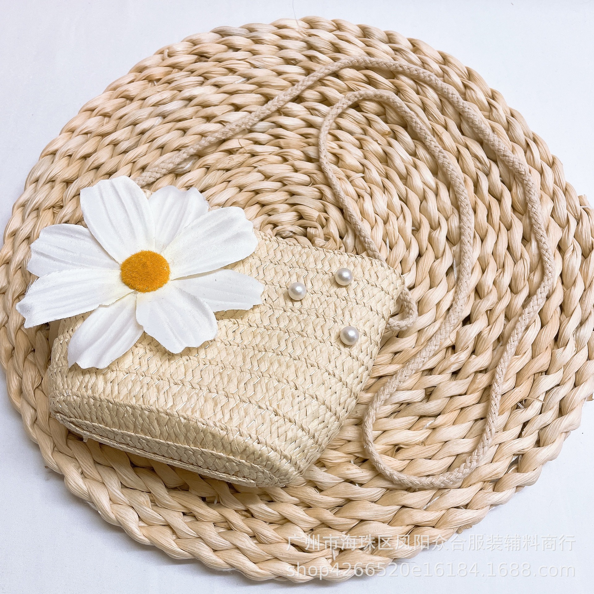 새로운 한국 스타일 트렌디 한 여아 가방 크로스 바디 백 유행 국화 밀짚 가방 어린 소녀 귀여운 숄더백