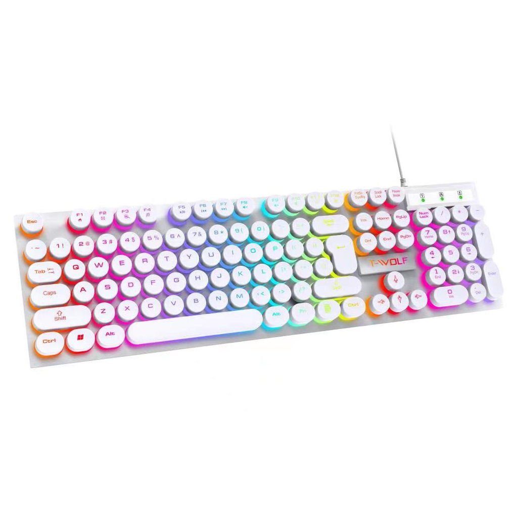 T-WOLF 썬더 울프 T80 단일 키보드 발광 백라이트 색상 다채로운 유선 게임 키보드 문자 빛나는 크로스 보더