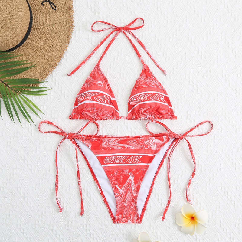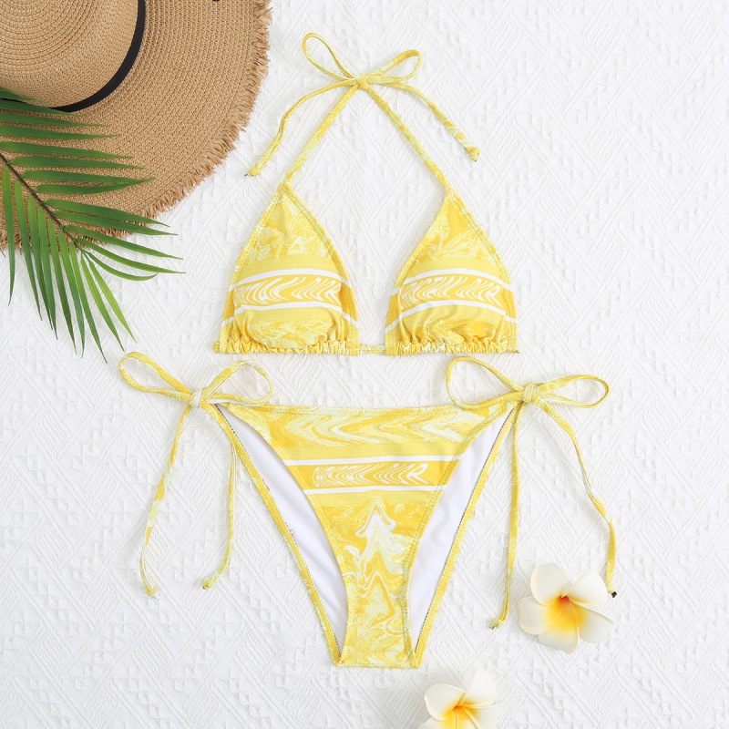 유럽과 미국의 해외 무역용 호랑이 프린트 수영복, 분리형 비키니, 끈으로 묶는 삼각형 패키지, 패셔너블한 여성 수영복