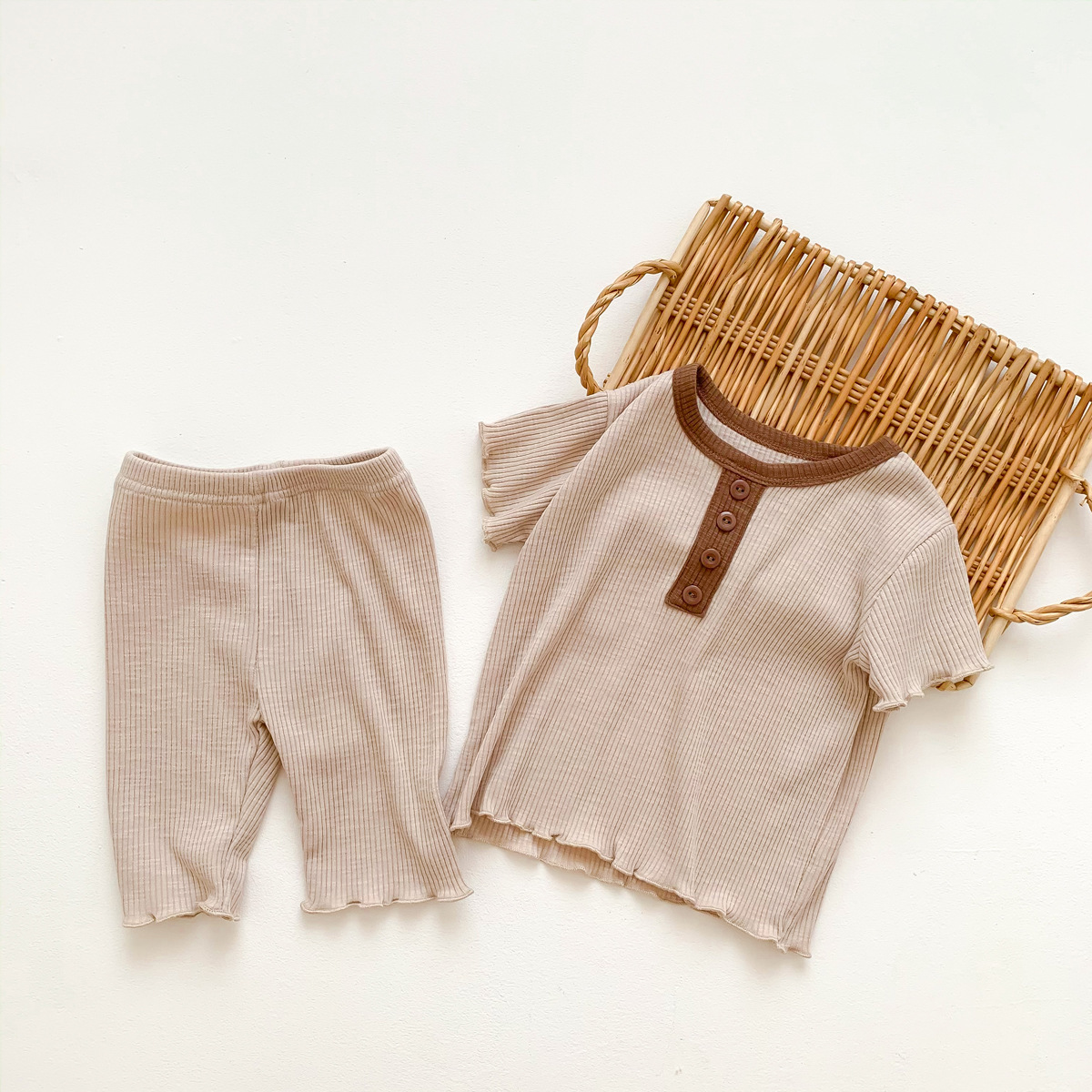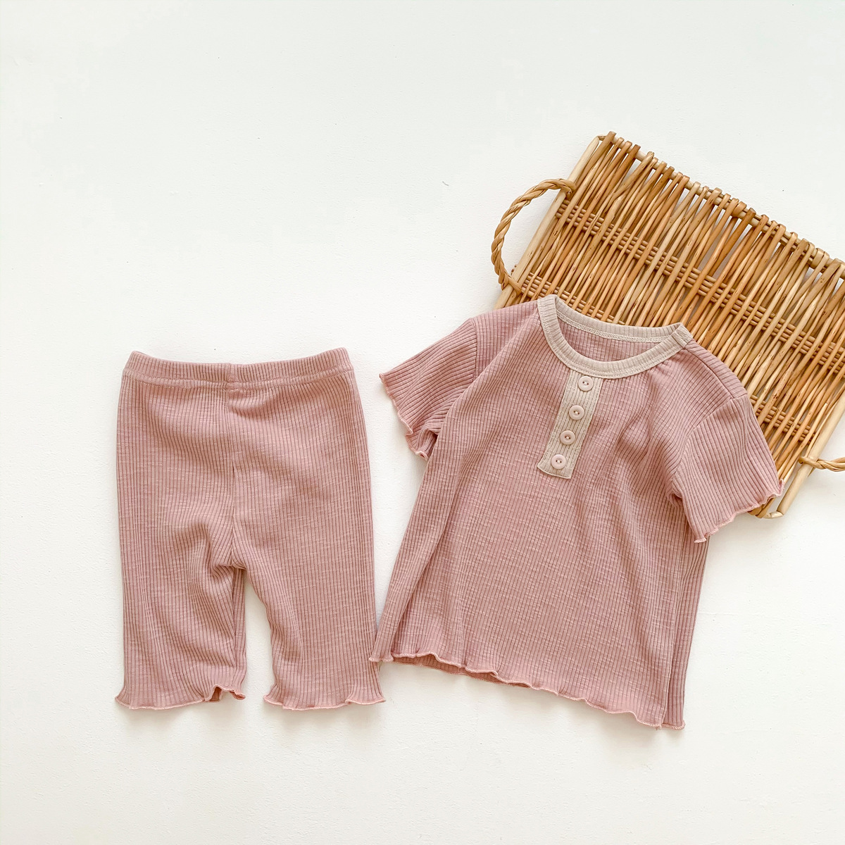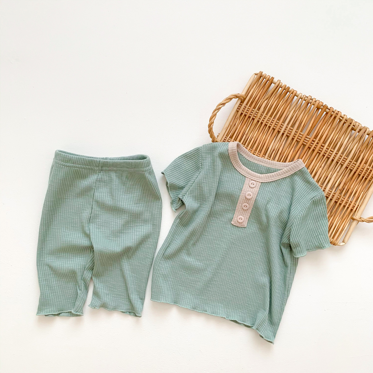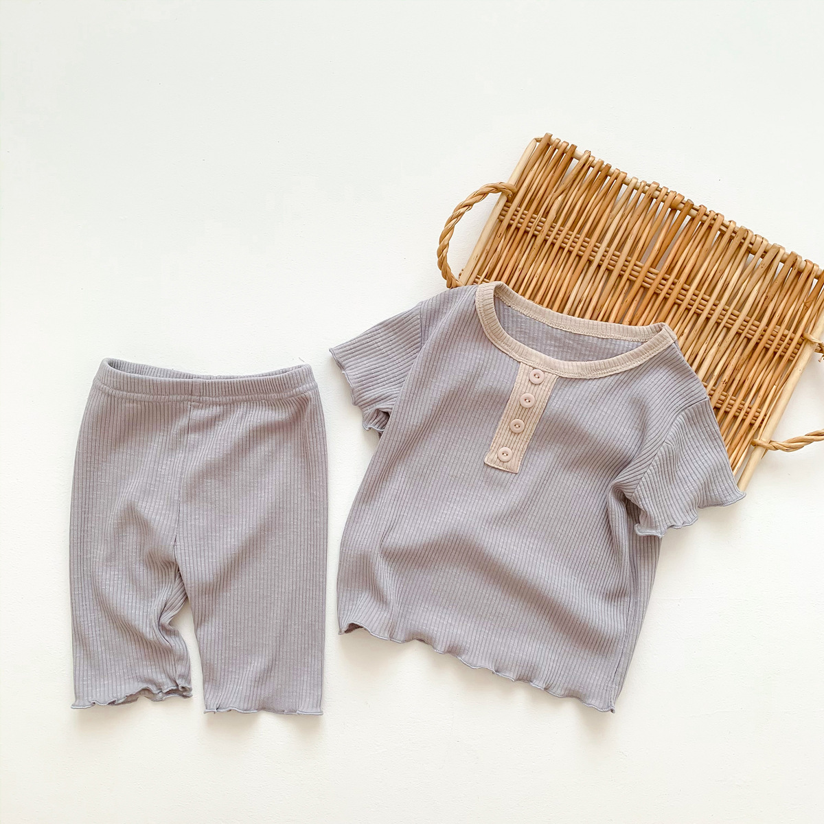 아동복 한국식 스타일의 가정복 세트 아기 소년 소녀 에어컨 옷 반팔 중간 길이 바지 투피스 세트