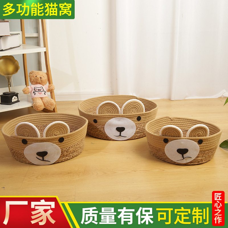 등나무 고양이 둥지 사계절 유니버설 손으로 짠 매트 여름 통기성 시원한 둥지 귀여운 곰 고양이 애완 동물 둥지스토어 가기