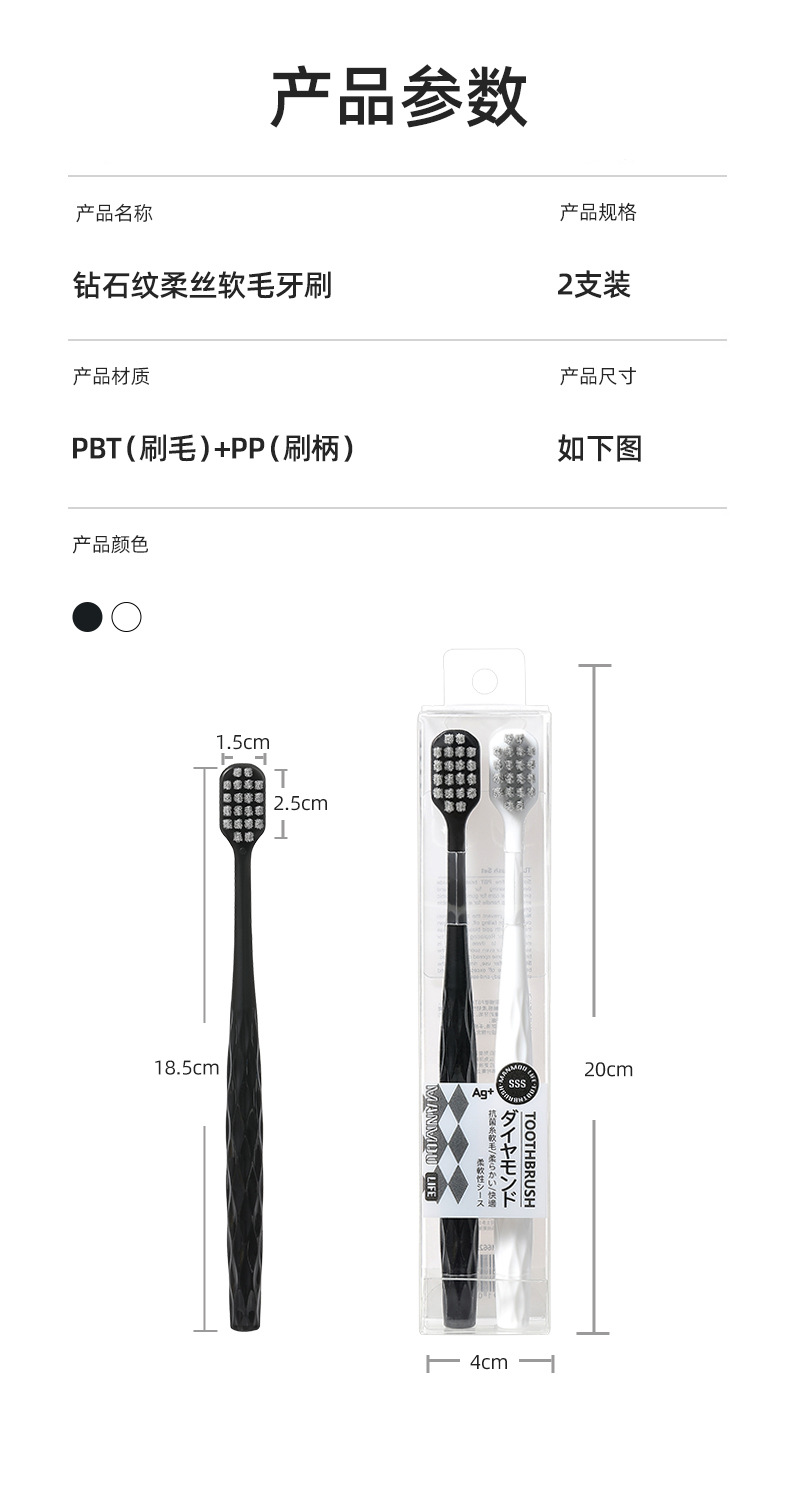 다이아몬드 사각 구멍 실버 이온 항균 실크 칫솔 2 팩 홈 흑백 커플 팩 잇몸 부드러운 머리 넓은 머리 칫솔스토어 가기