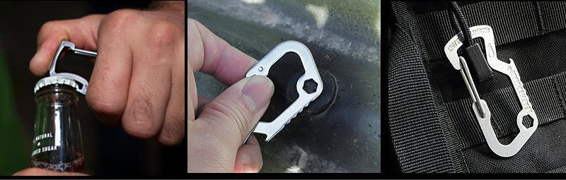 작은 각도 상어 EDC 다기능 D 형 버클 스테인레스 스틸 카라비너 병 오프너 스프링 후크 매달려 버클 빠른 교수형