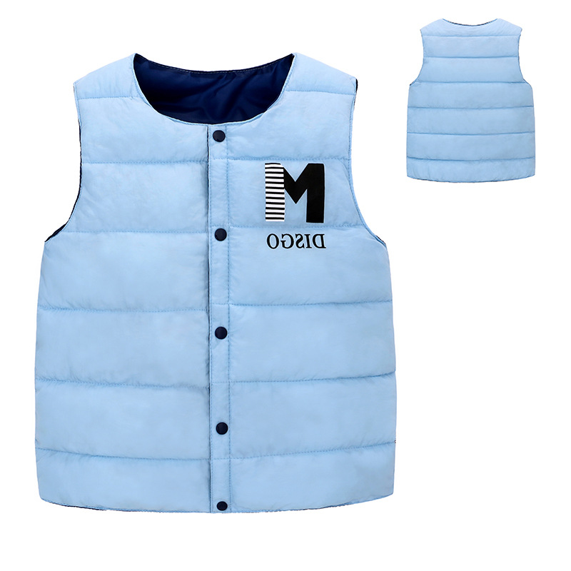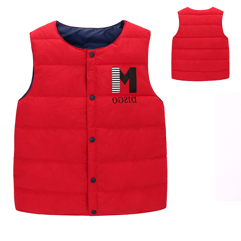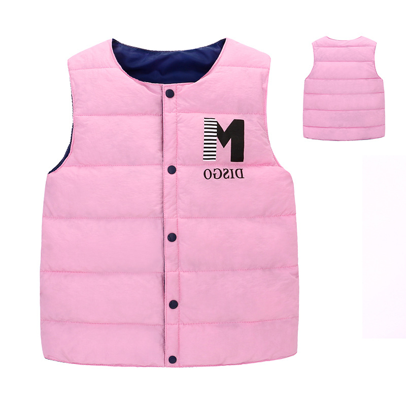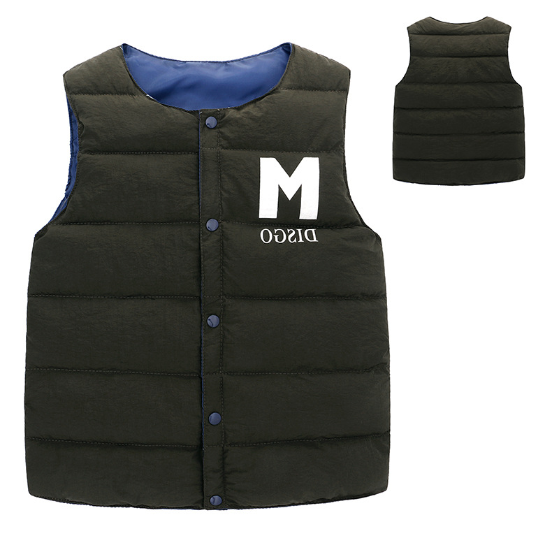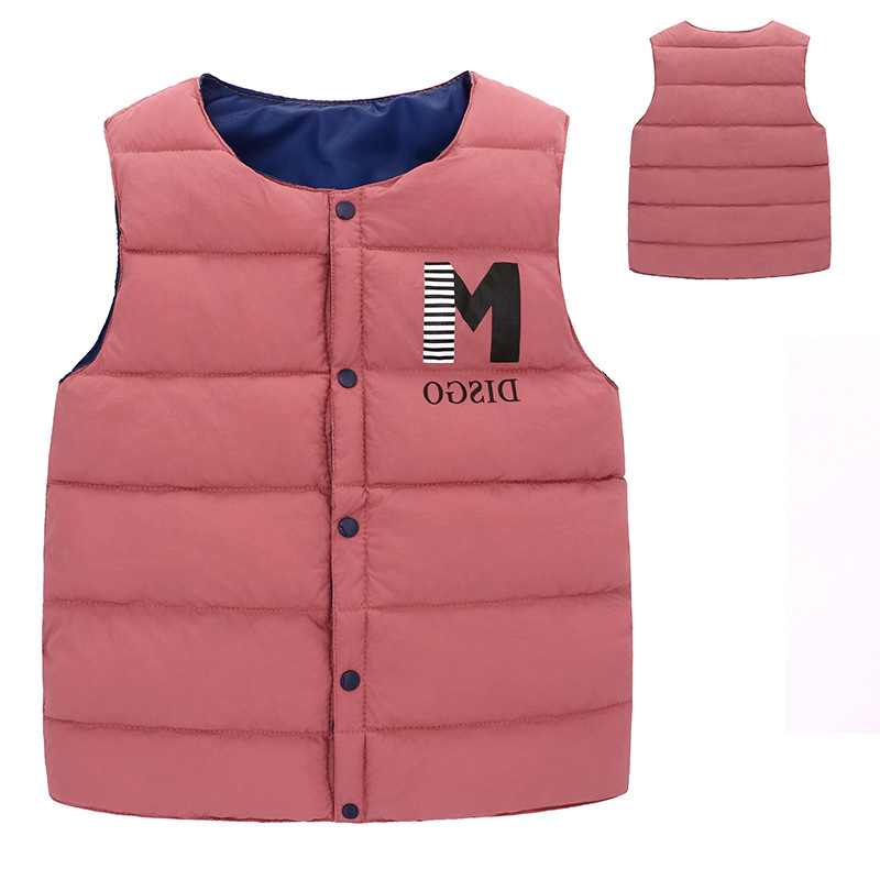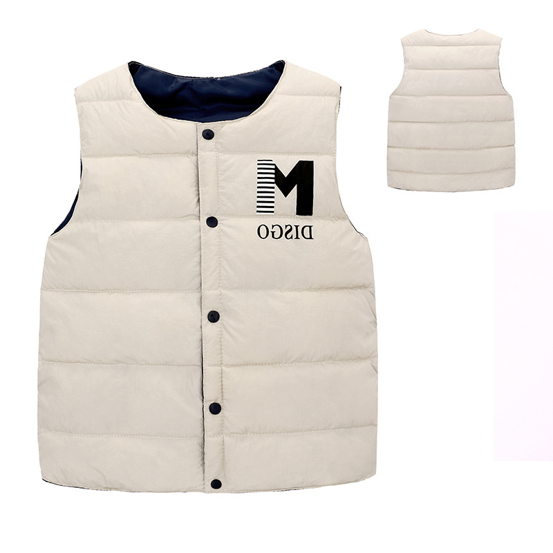 새로운 스타일의 중대형 아동용 다운 코튼 조끼, 남아 여아용 레터링 보온 조끼, 가을 겨울용 두꺼운 외투 조끼스토어 가기