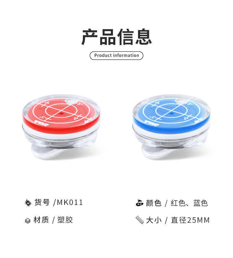 产品介绍 水平仪帽夹马克,可测量果岭坡度,磁吸帽夹马克