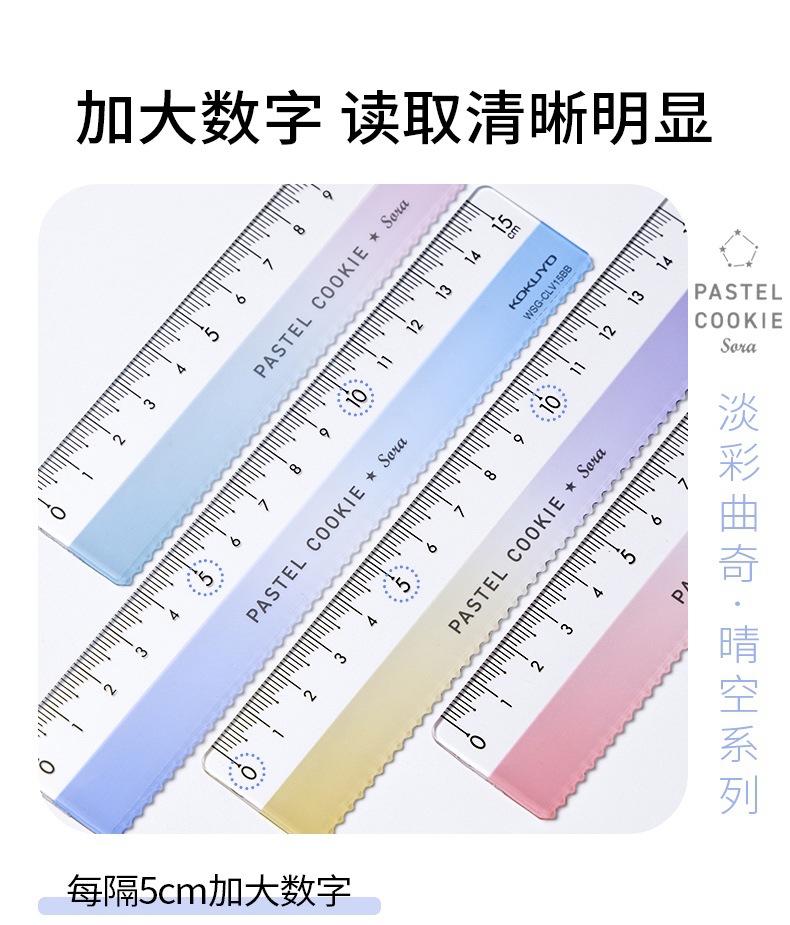 2022 New kokuyo 전국 평판 라이트 컬러 쿠키 클리어 스카이 눈금자 웨이브 패턴 학생 눈금자 스케일