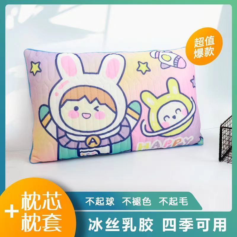 어린이용 아이스실크 라텍스 베개, 유치원 낮잠베개, 사계절 탈부착 가능한 목베개, 메밀베개, 수면베개심