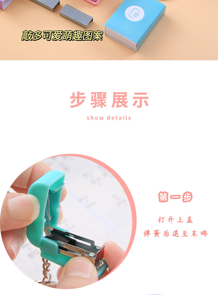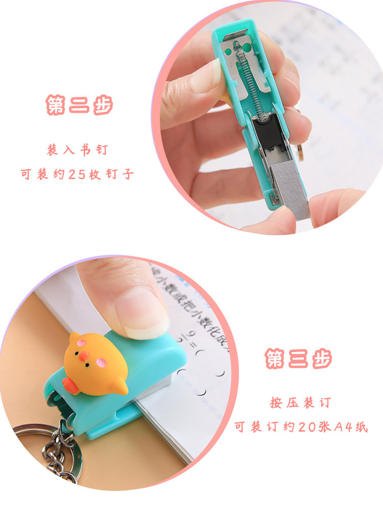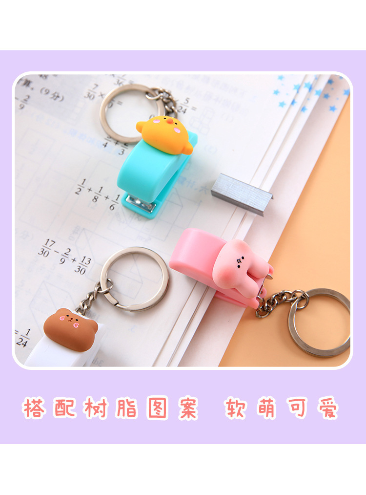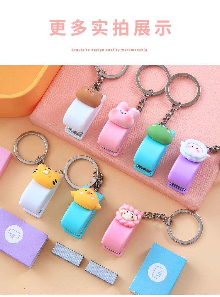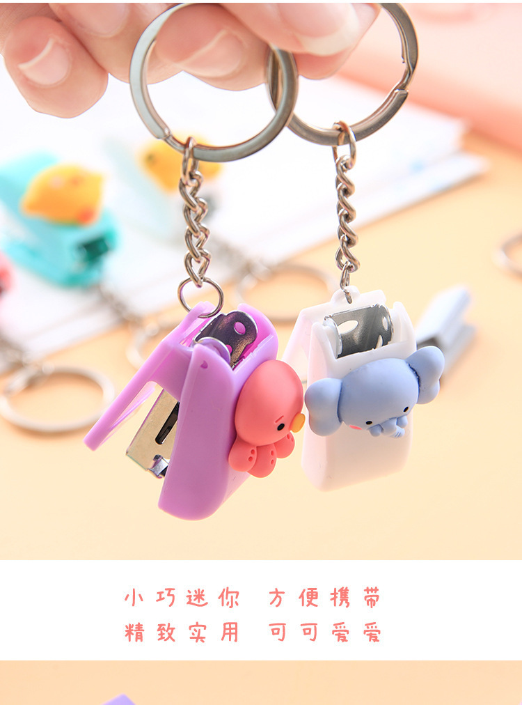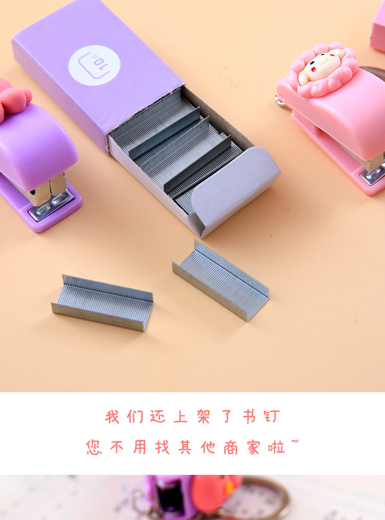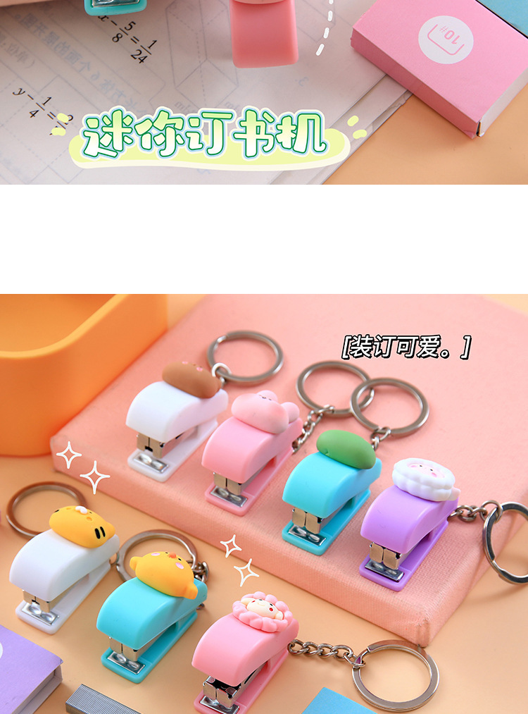키 체인 귀여운 만화 미니 스테이플러 학생 사무실 상품 도매 휴대용 작은 책 스테이플러스토어 가기