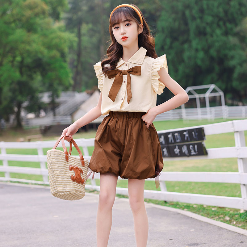 소녀 달콤한 세트 2022 여름 새로운 한국식 얇은 랜턴 반바지 인터넷 유명 인사 공주 셔츠 투피스 세트 패션