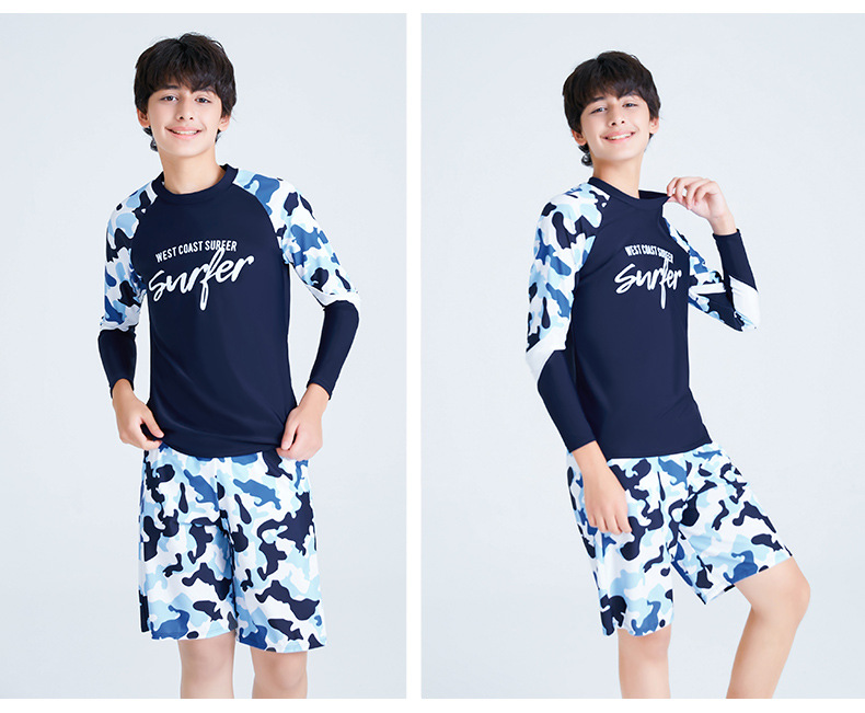 Jinhong 브랜드 2022 새로운 분할 남성 수영복 긴 소매 캐주얼 휴가 청소년 위장 수영복 수영 트렁크