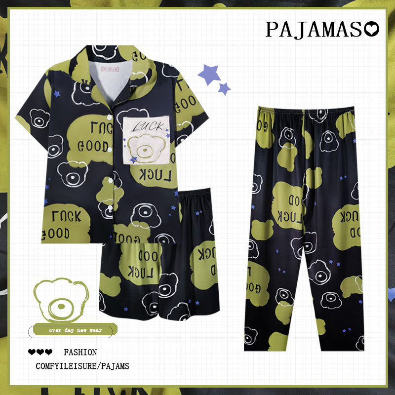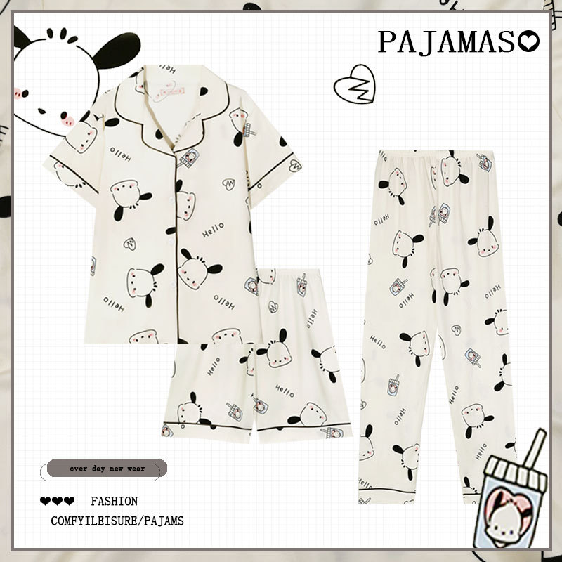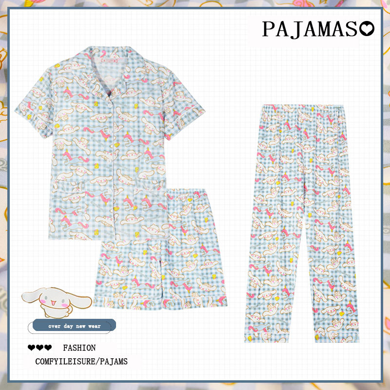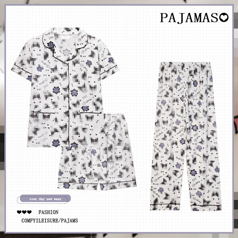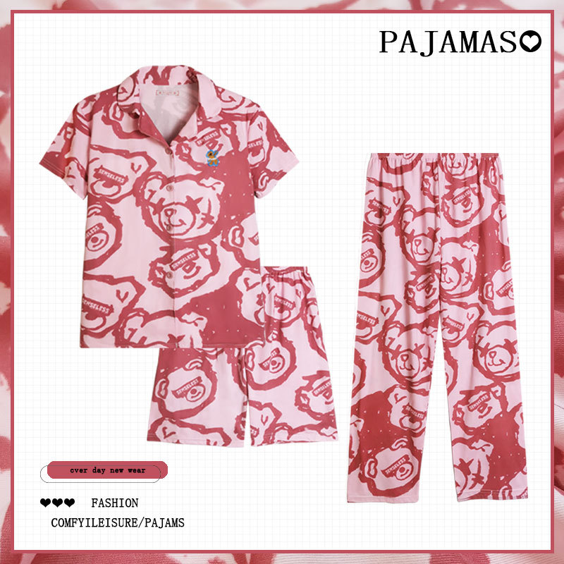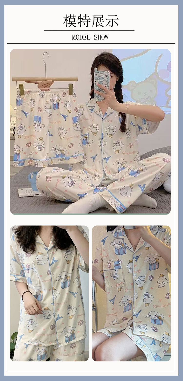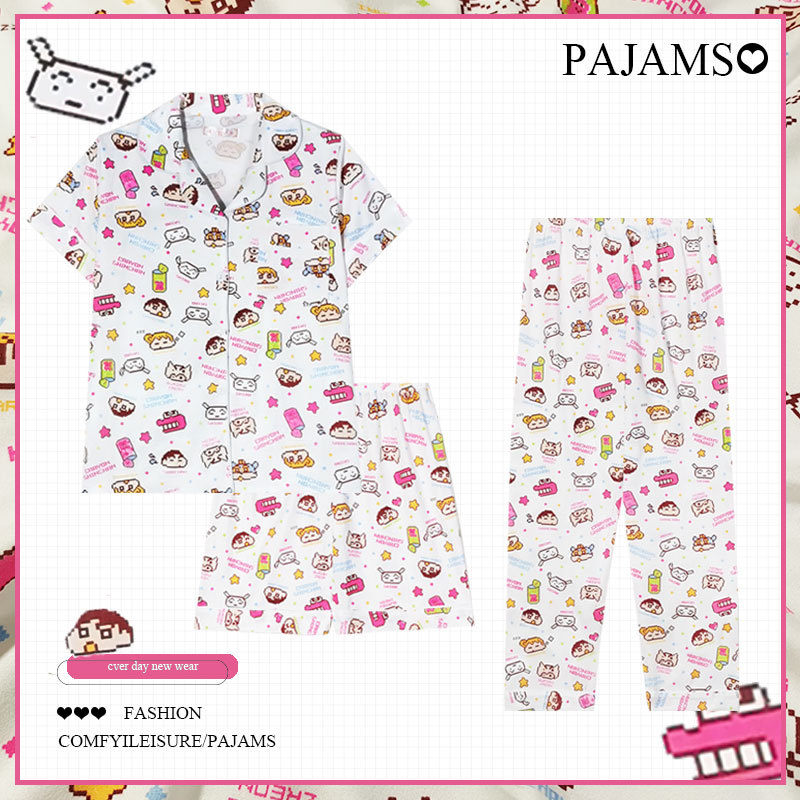 일본 스타일 만화 잠옷 여자의 여름 새로운 달콤한 느슨한 반팔 가정 옷 학생 기숙사에 대 한 쓰리 피스 세트스토어 가기