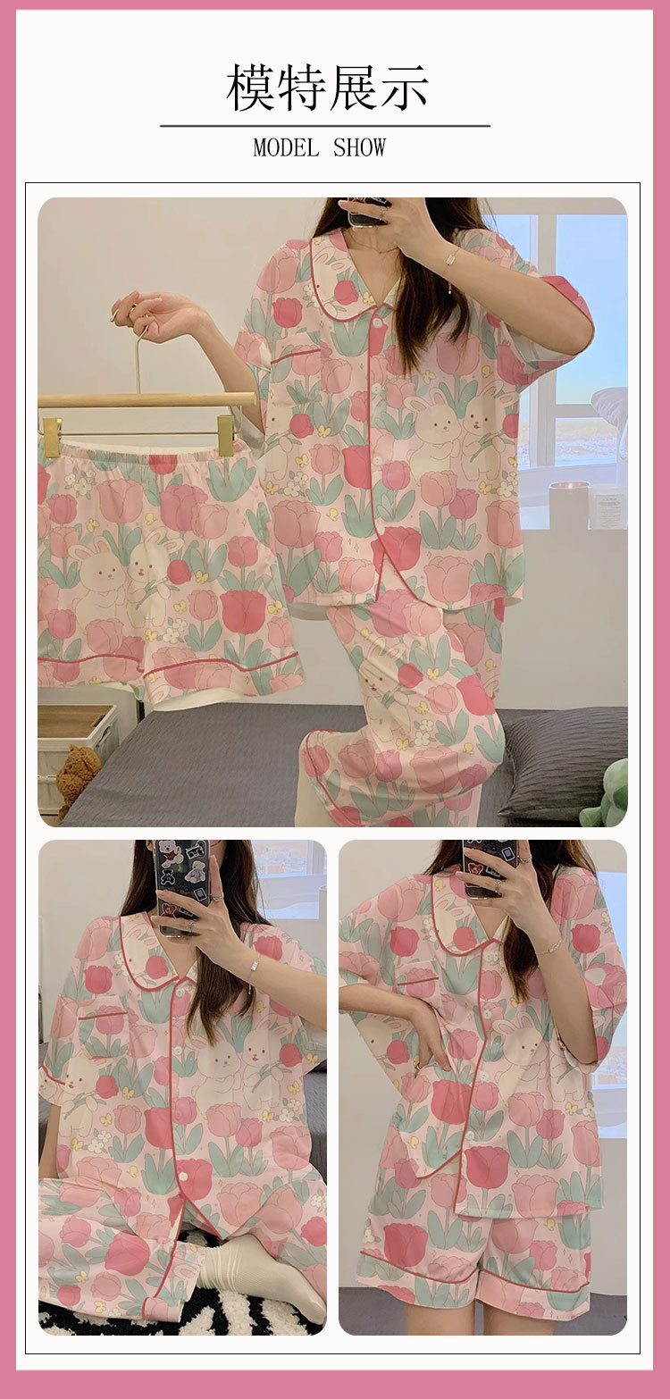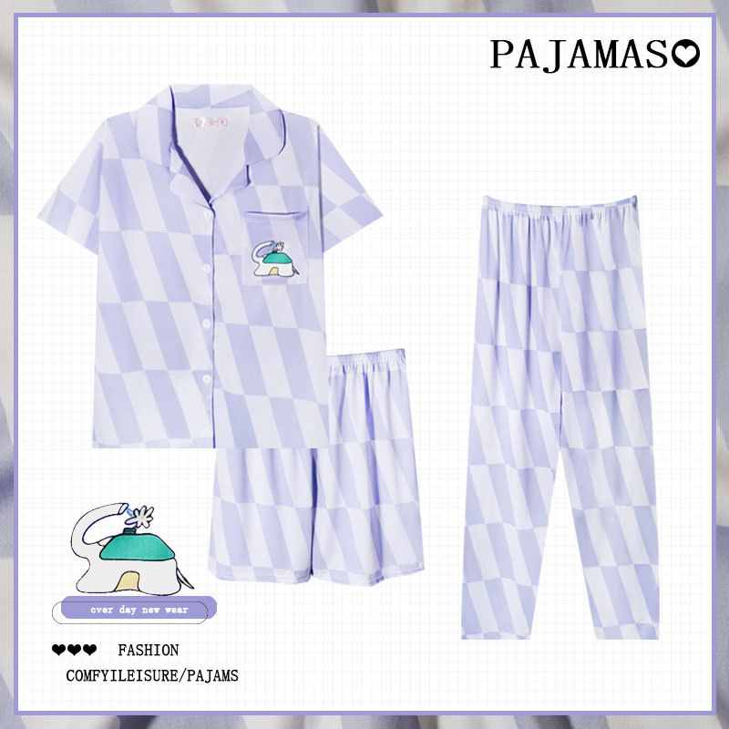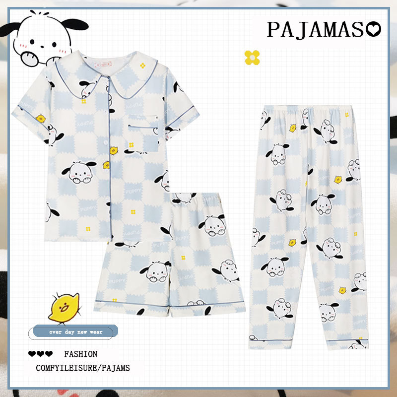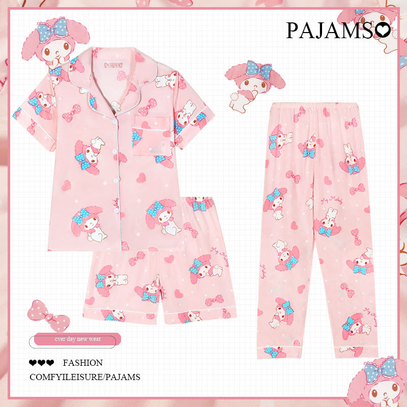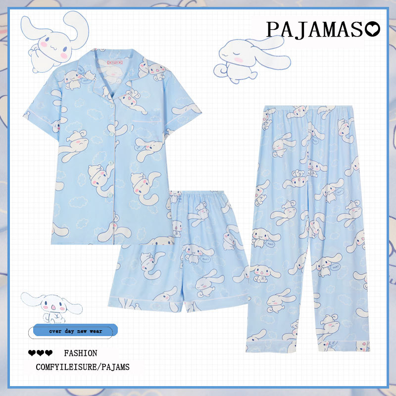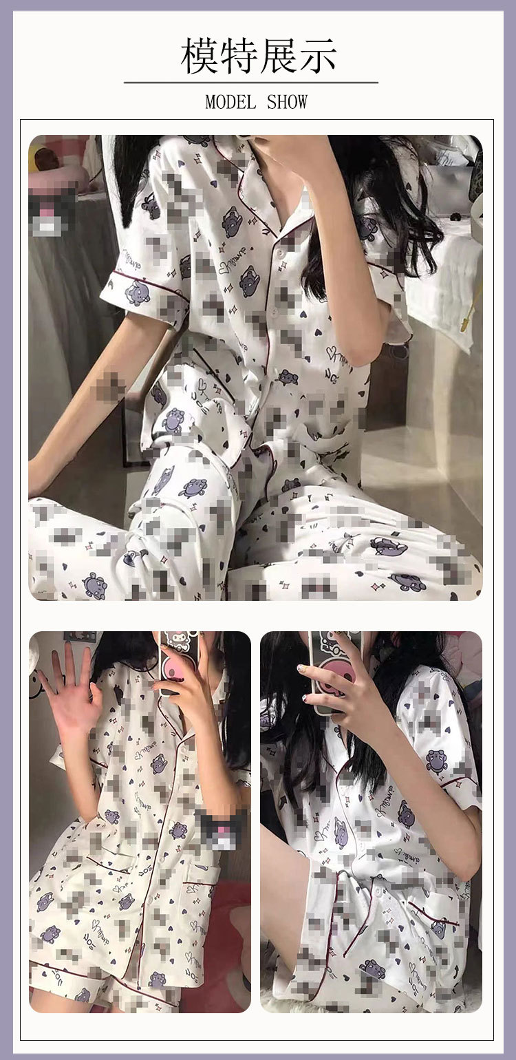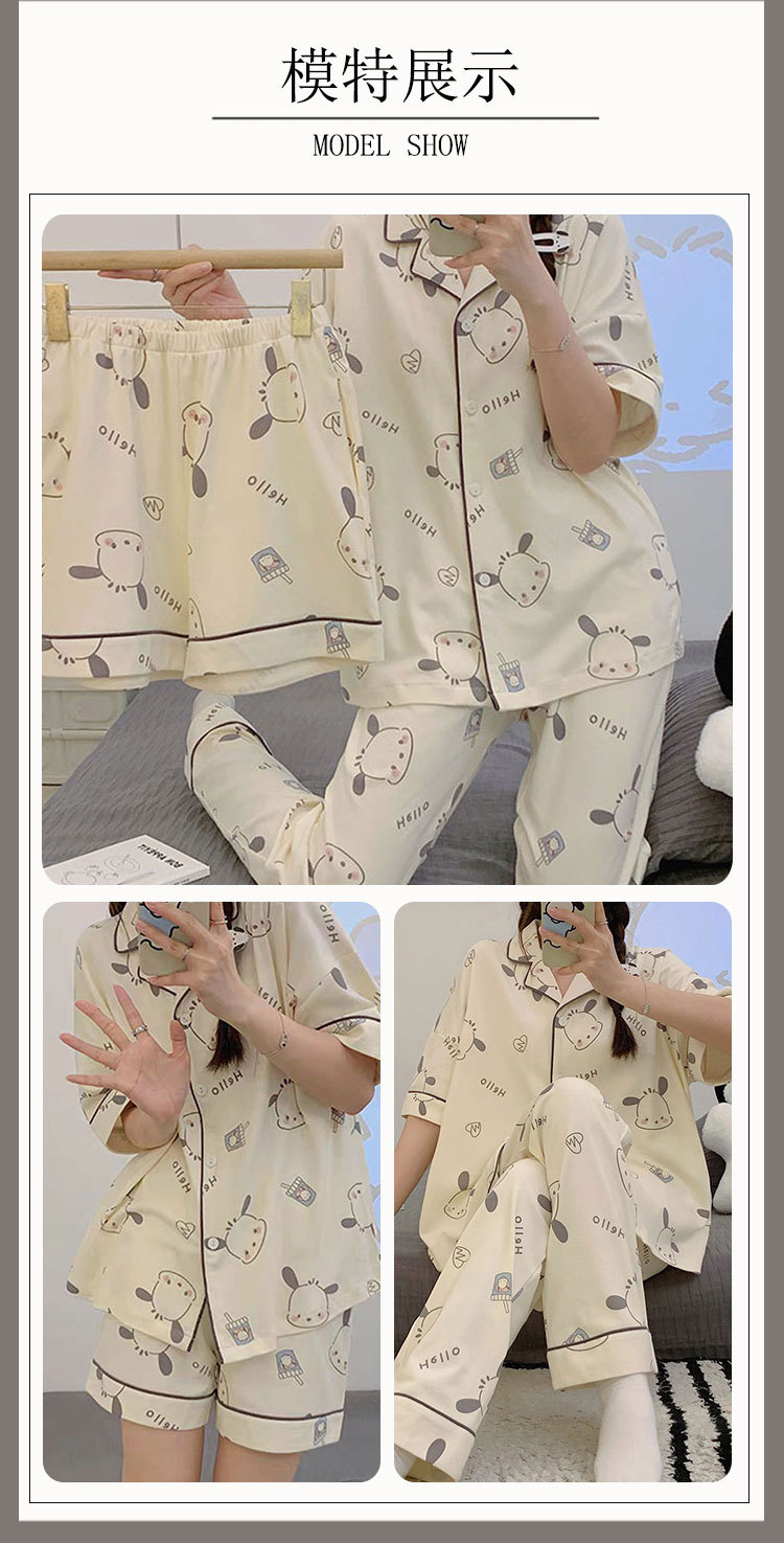 일본 스타일 만화 잠옷 여자의 여름 새로운 달콤한 느슨한 반팔 가정 옷 학생 기숙사에 대 한 쓰리 피스 세트스토어 가기