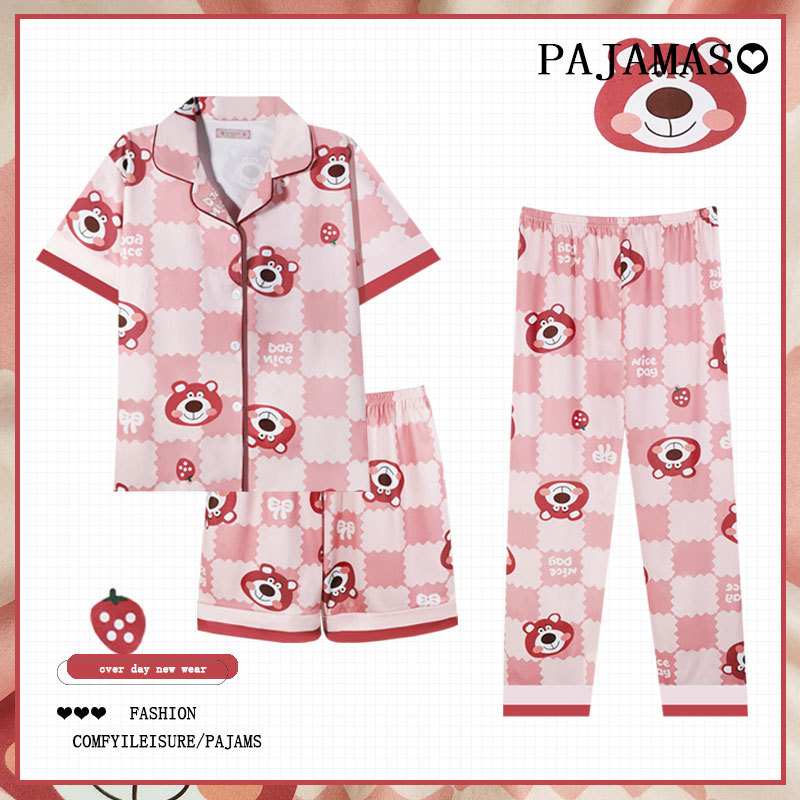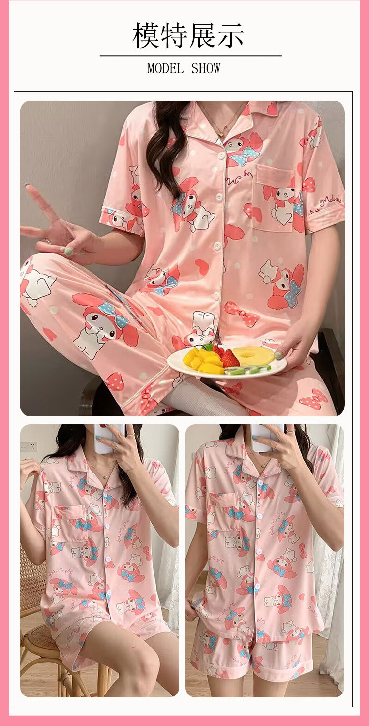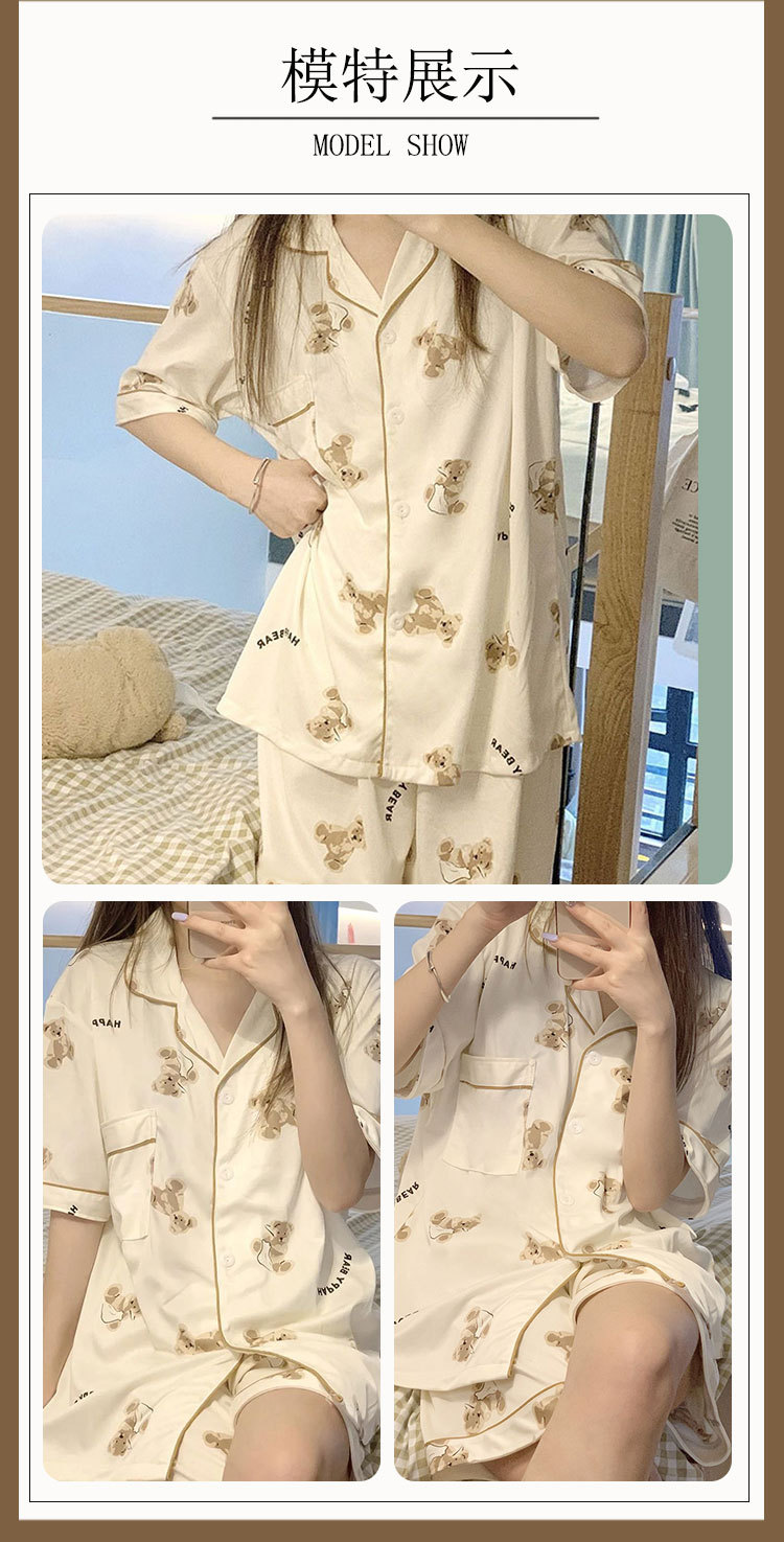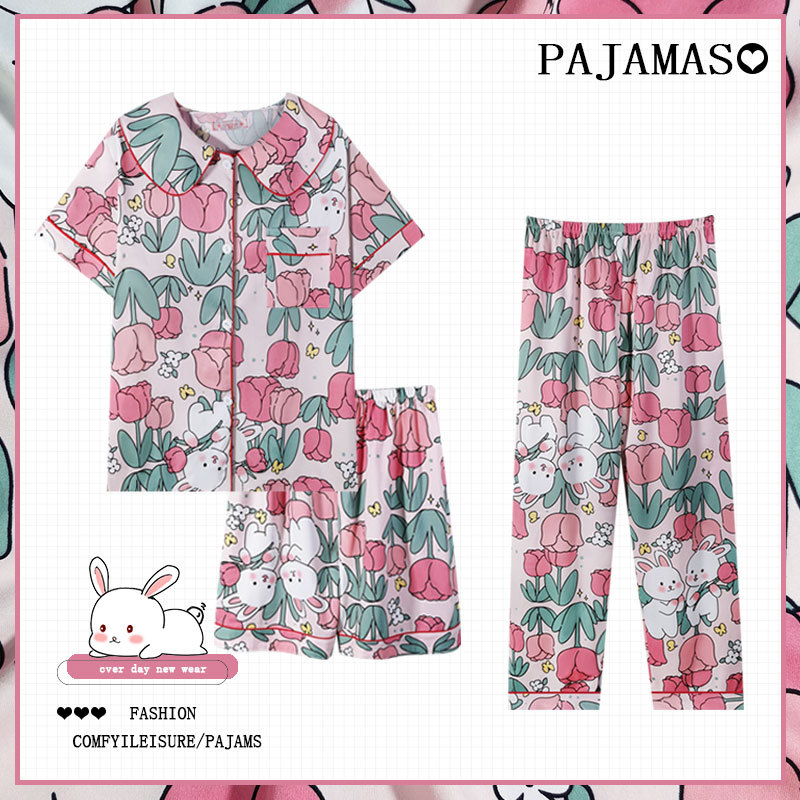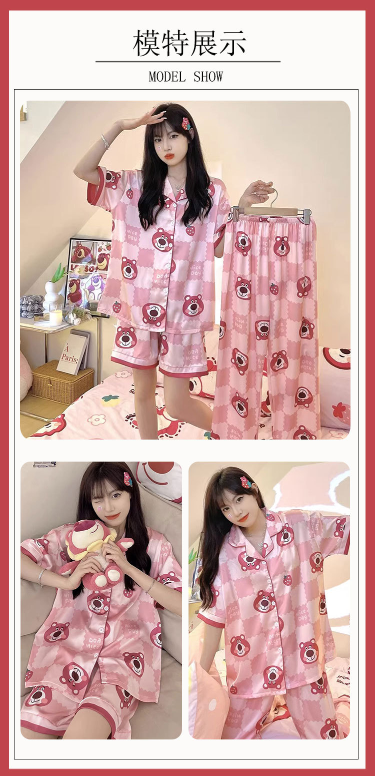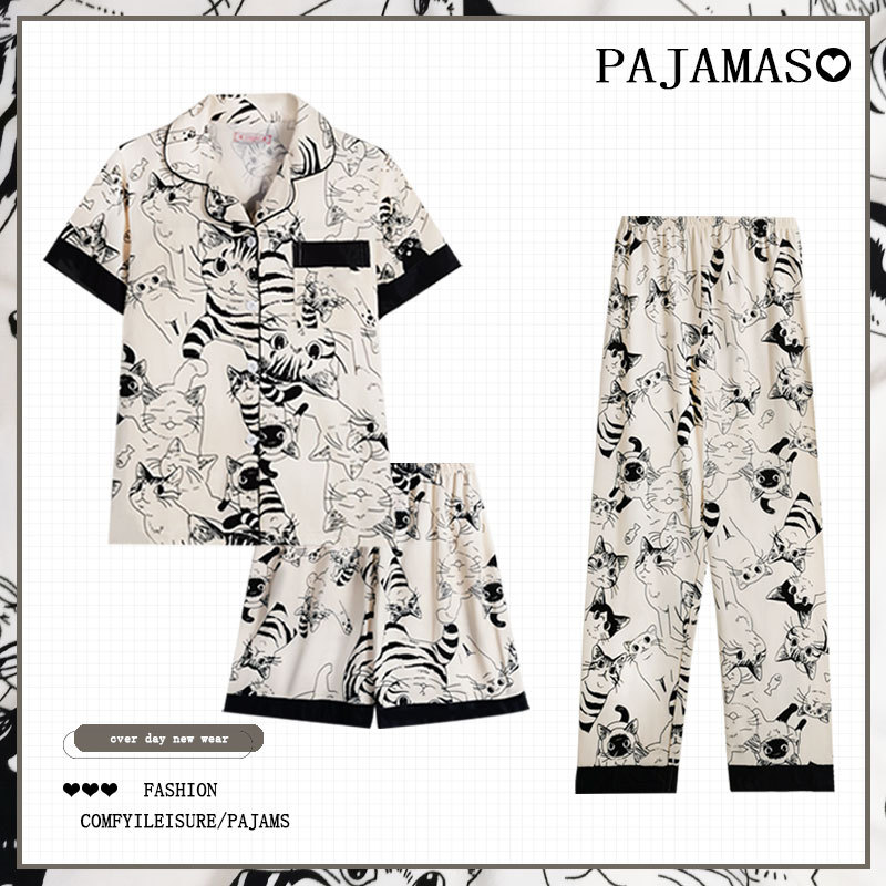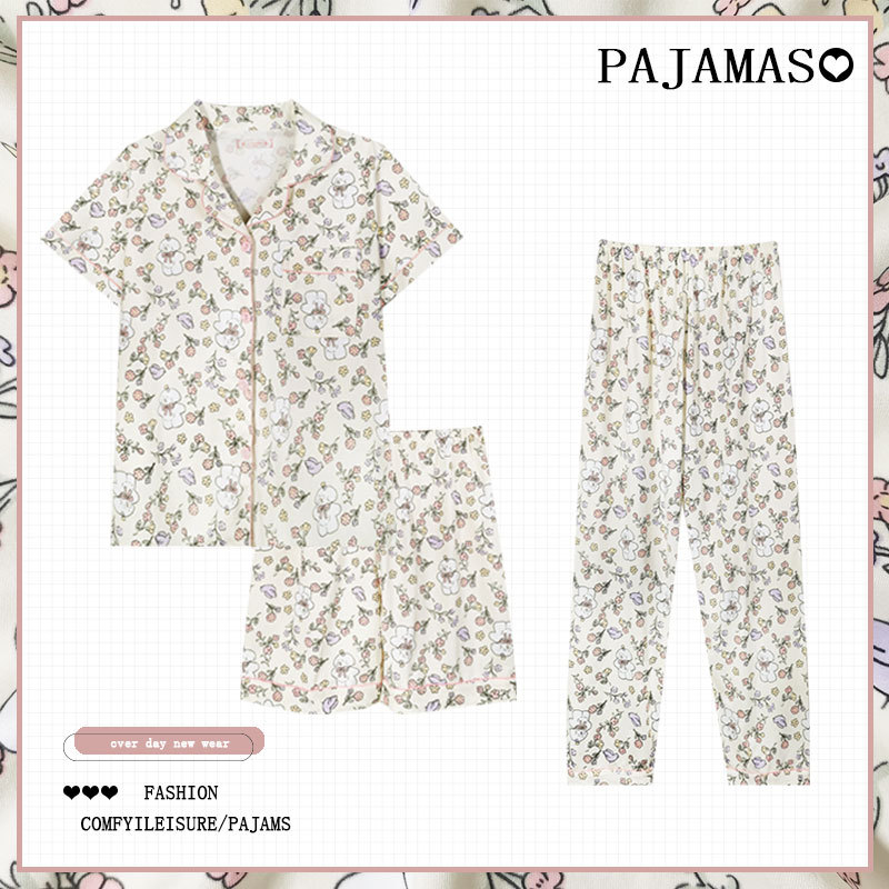 일본 스타일 만화 잠옷 여자의 여름 새로운 달콤한 느슨한 반팔 가정 옷 학생 기숙사에 대 한 쓰리 피스 세트스토어 가기