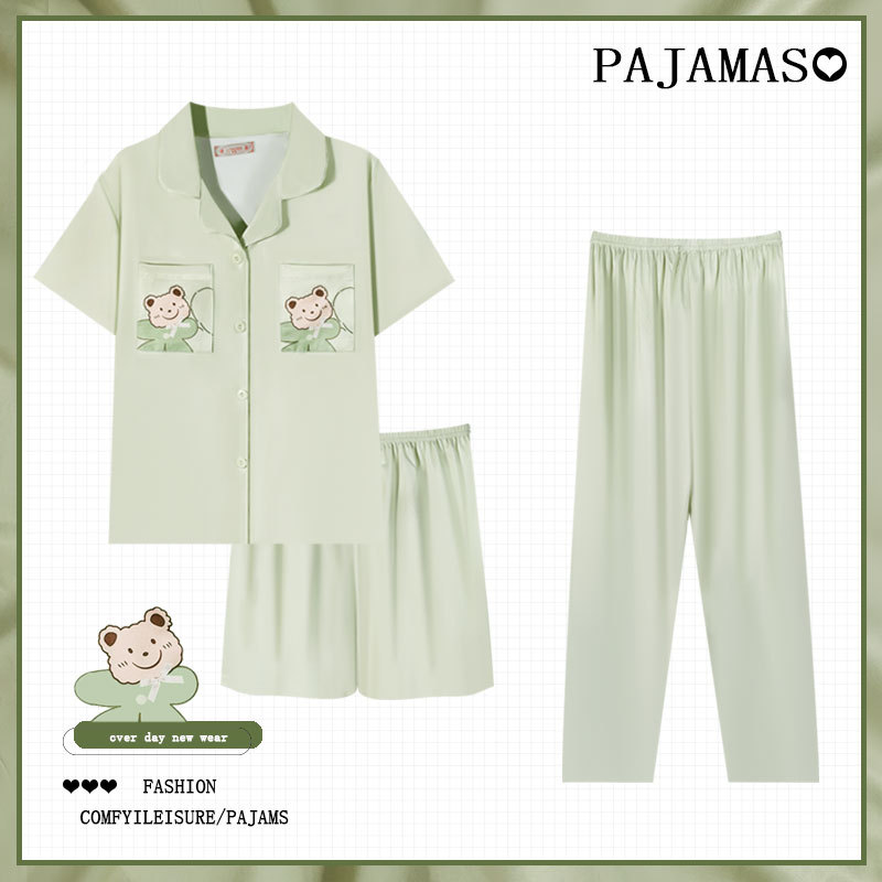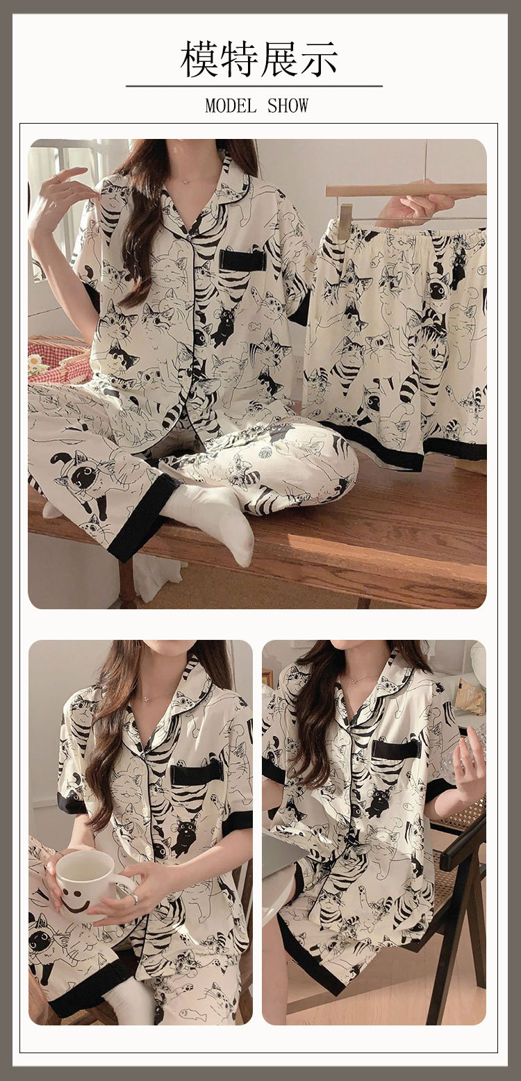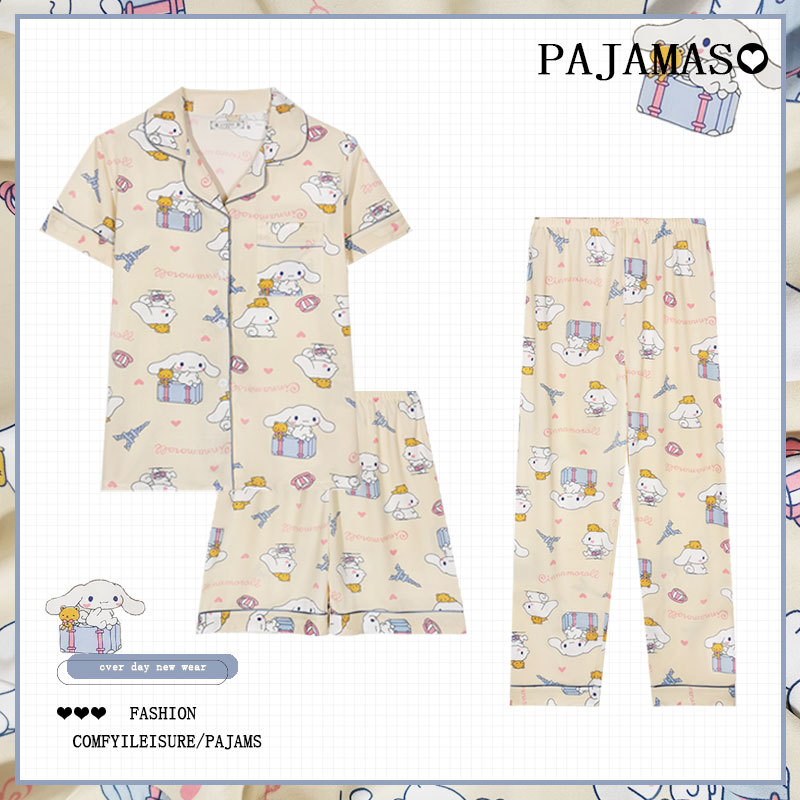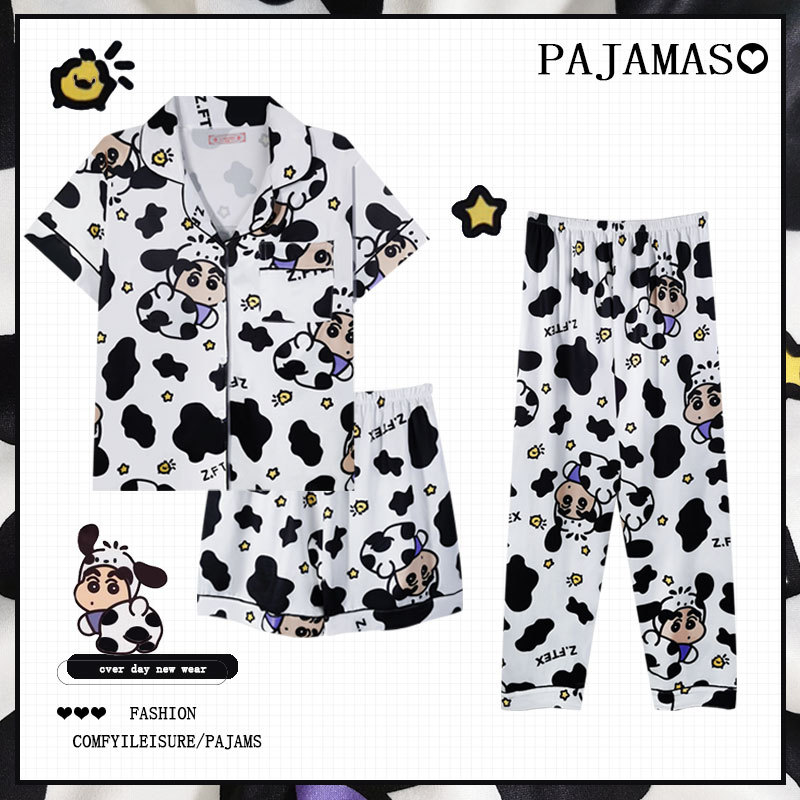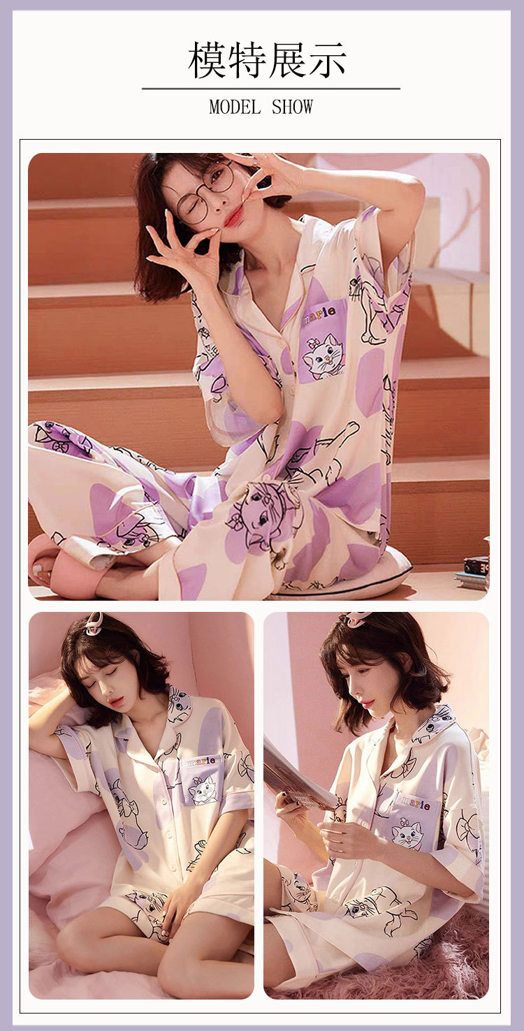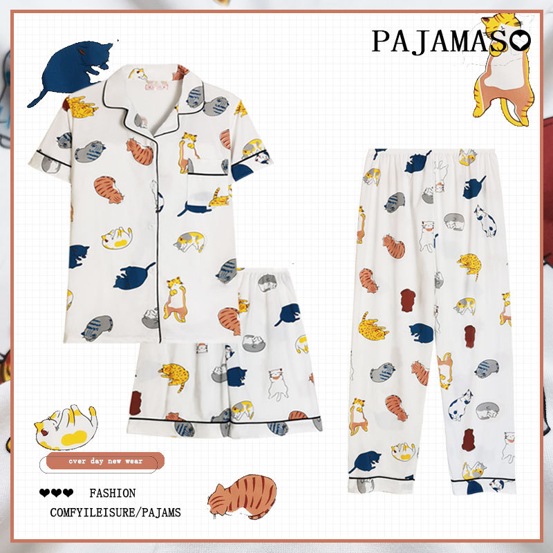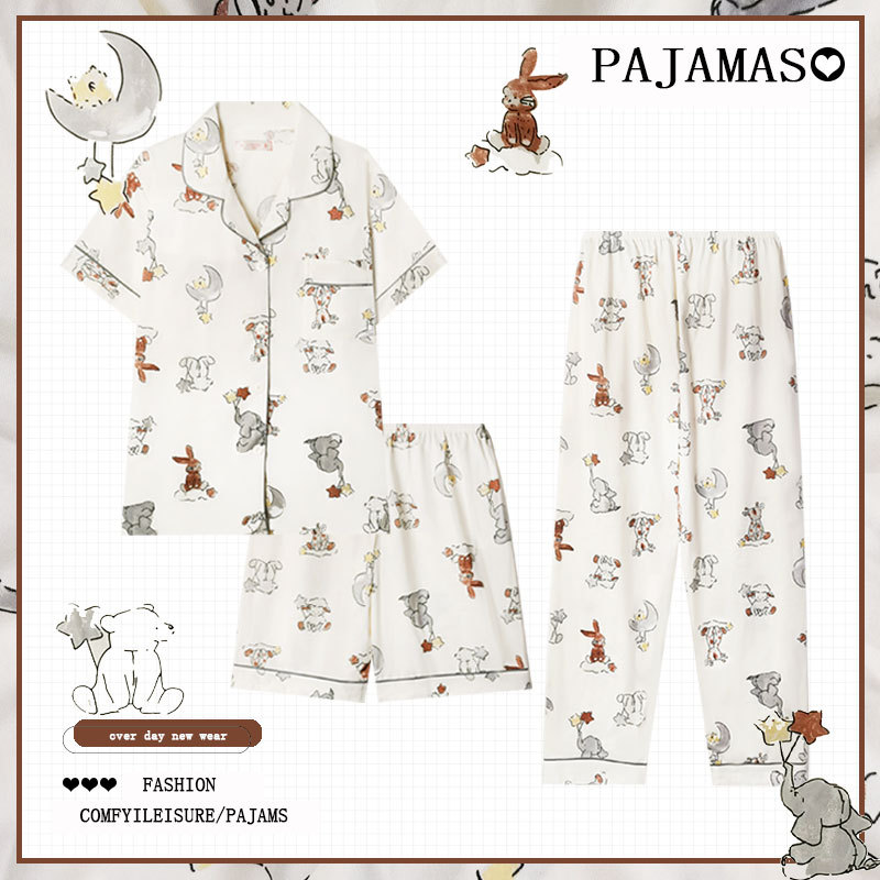 일본 스타일 만화 잠옷 여자의 여름 새로운 달콤한 느슨한 반팔 가정 옷 학생 기숙사에 대 한 쓰리 피스 세트스토어 가기