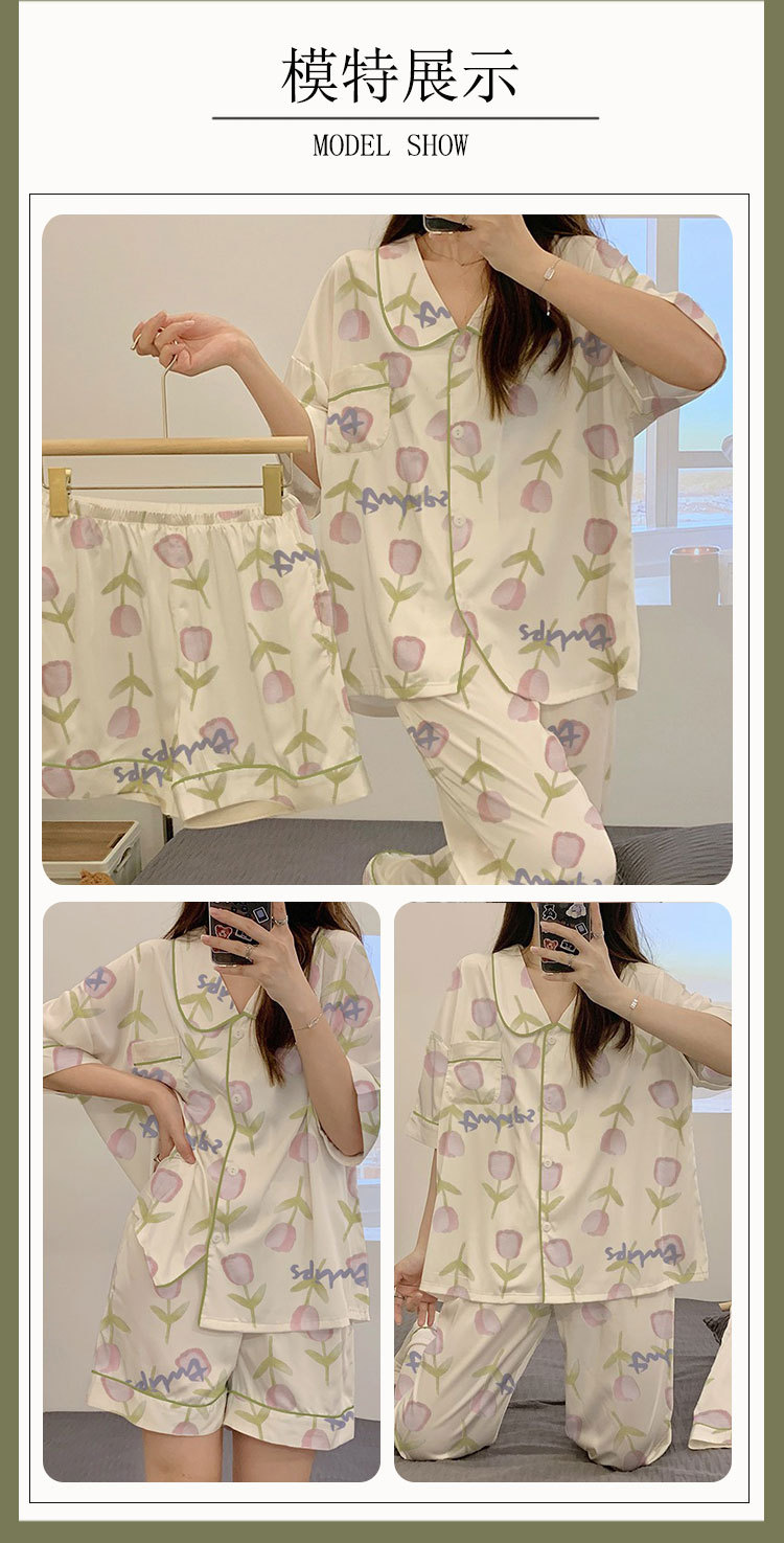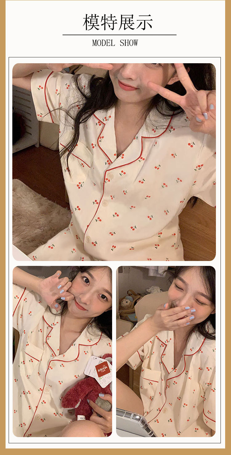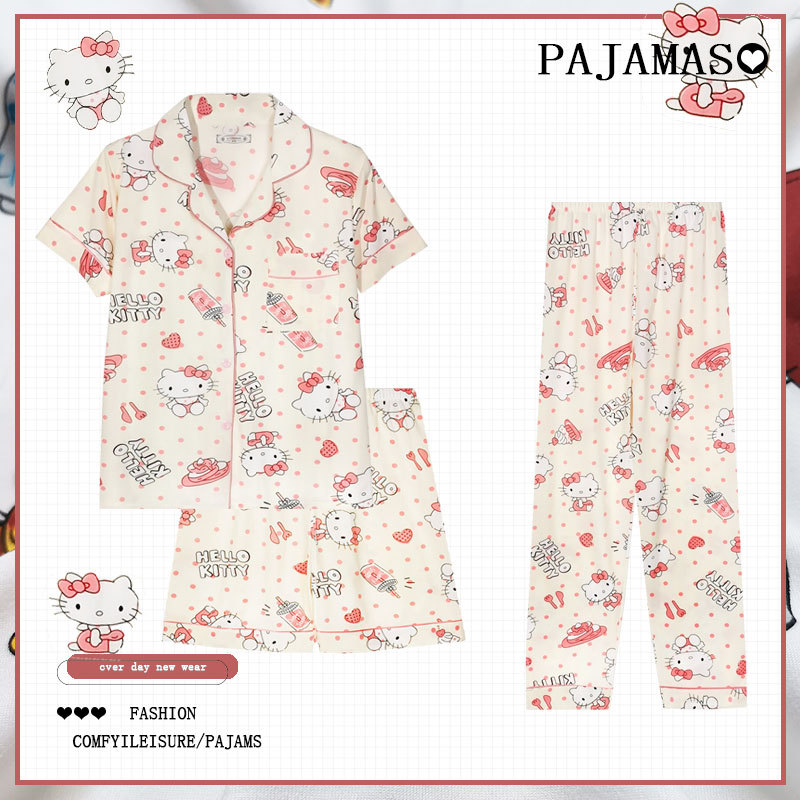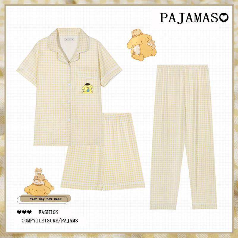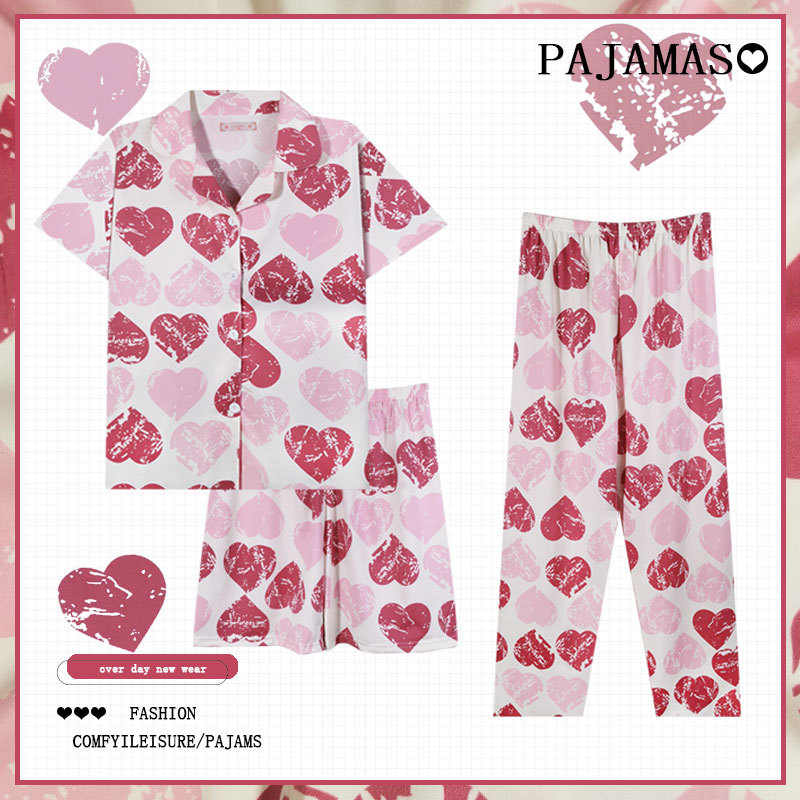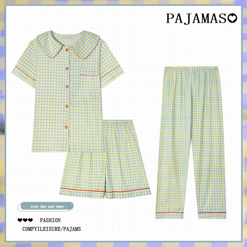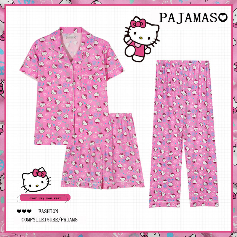일본 스타일 만화 잠옷 여자의 여름 새로운 달콤한 느슨한 반팔 가정 옷 학생 기숙사에 대 한 쓰리 피스 세트스토어 가기