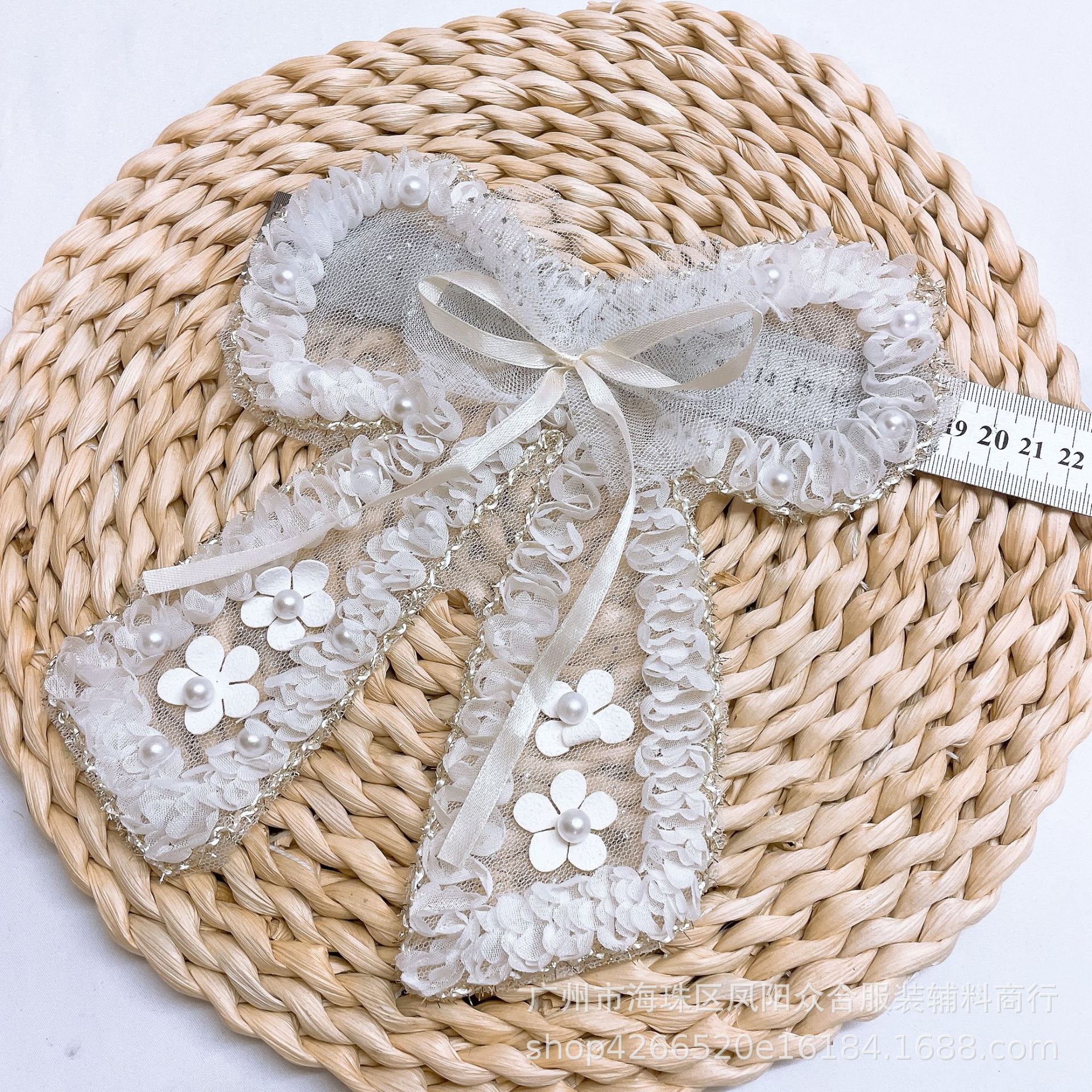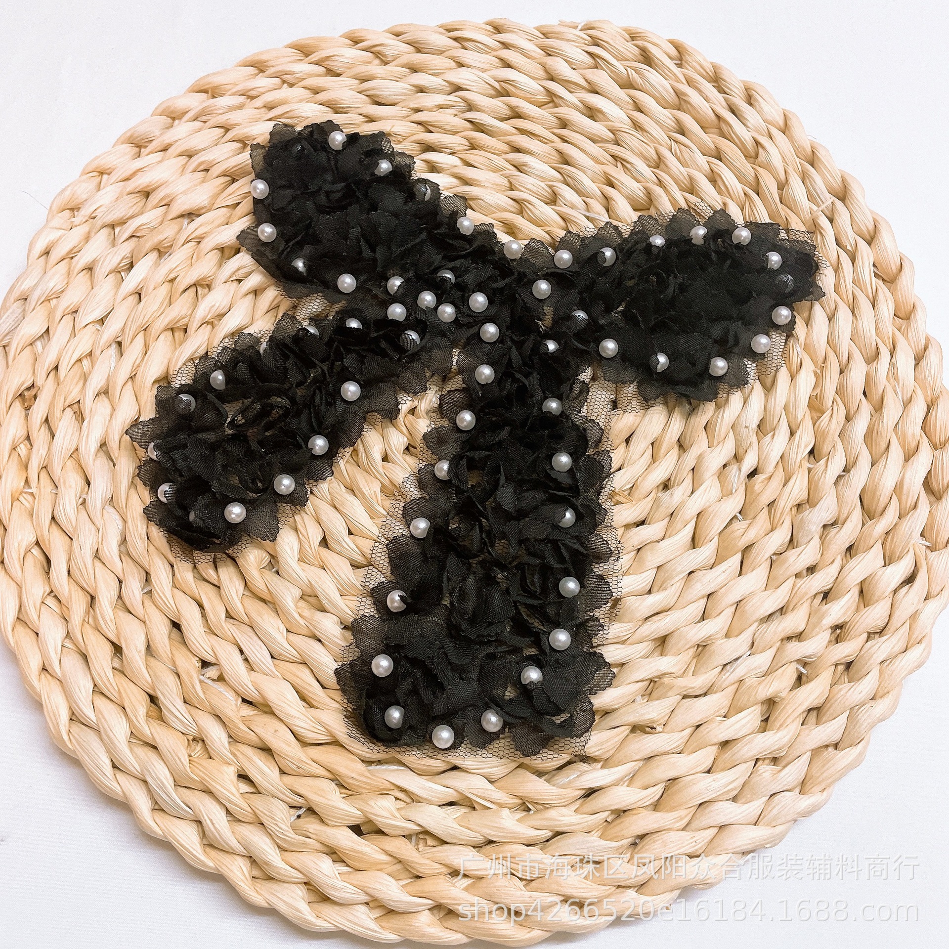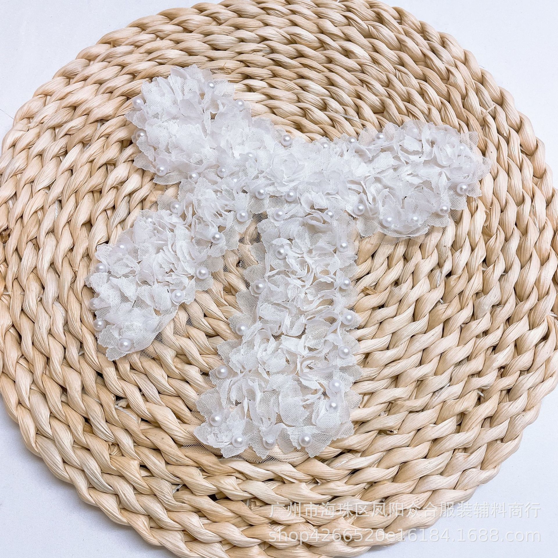 공장 직공급 쉬폰 꽃 진주 활 패치 의류 아동복 3 대 1 리본 자수 천 패치 DIY 액세서리스토어 가기
