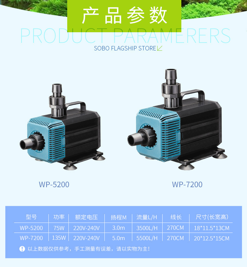 송바오 수륙 양용 어항 잠수정 펌프 필터 펌프 물고기 연못 바위 순환 물 펌프 WP5200 7200