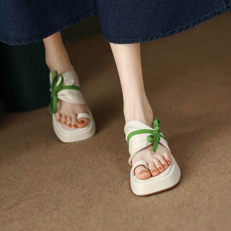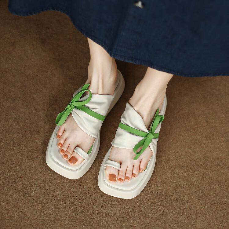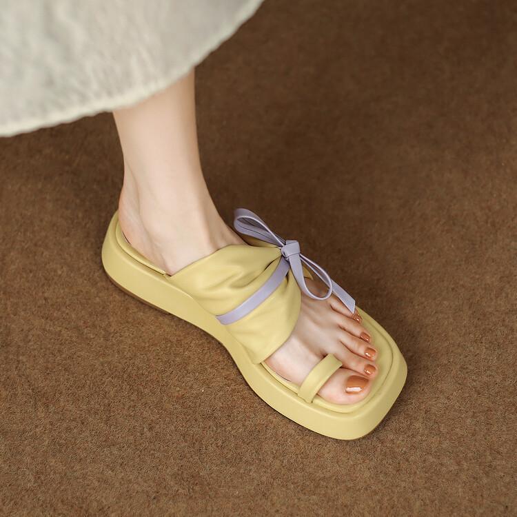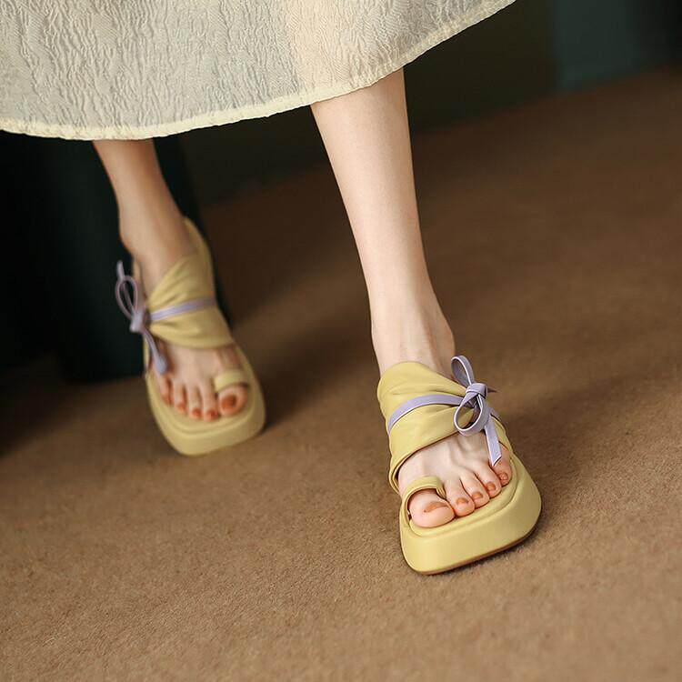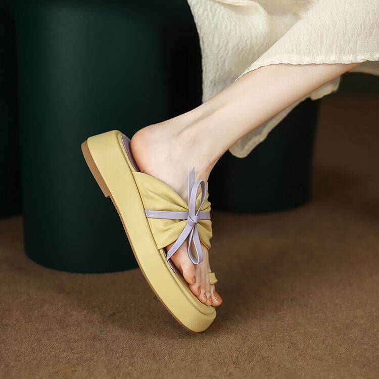 여름의 순간~ 나비 리본 장식의 다용도 여성용 쪼리 슬리퍼, 여름 신상 두꺼운 굽 높이 4.5cm 야외용 샌들