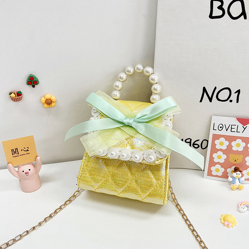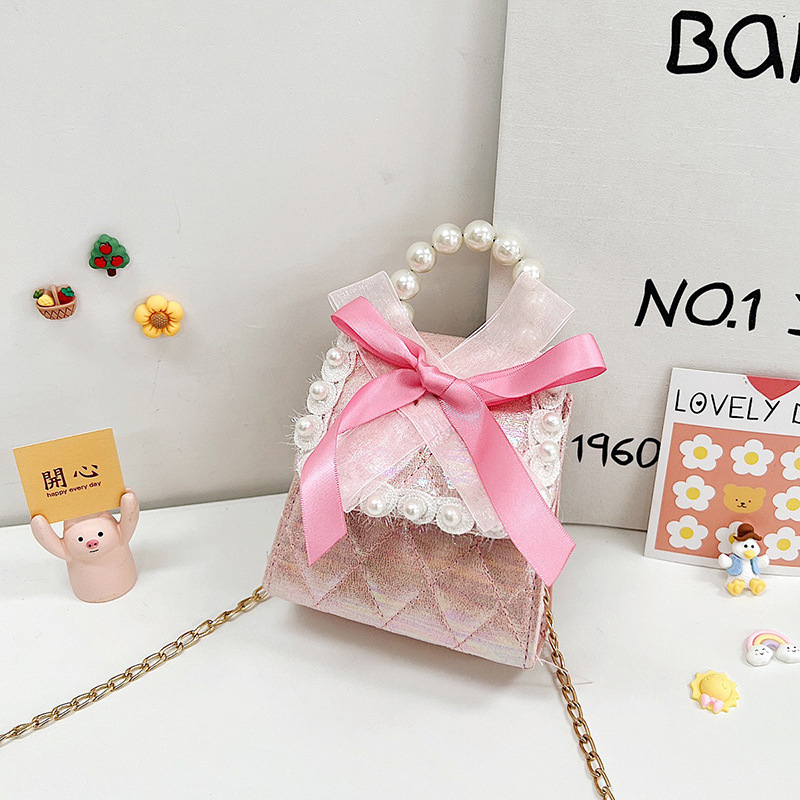 2022 새로운 한국 스타일 어린이 가방 세련된 진주 어깨 크로스 바디 핸드백 패션 체인 액세서리 작은 사각형 가방스토어 가기