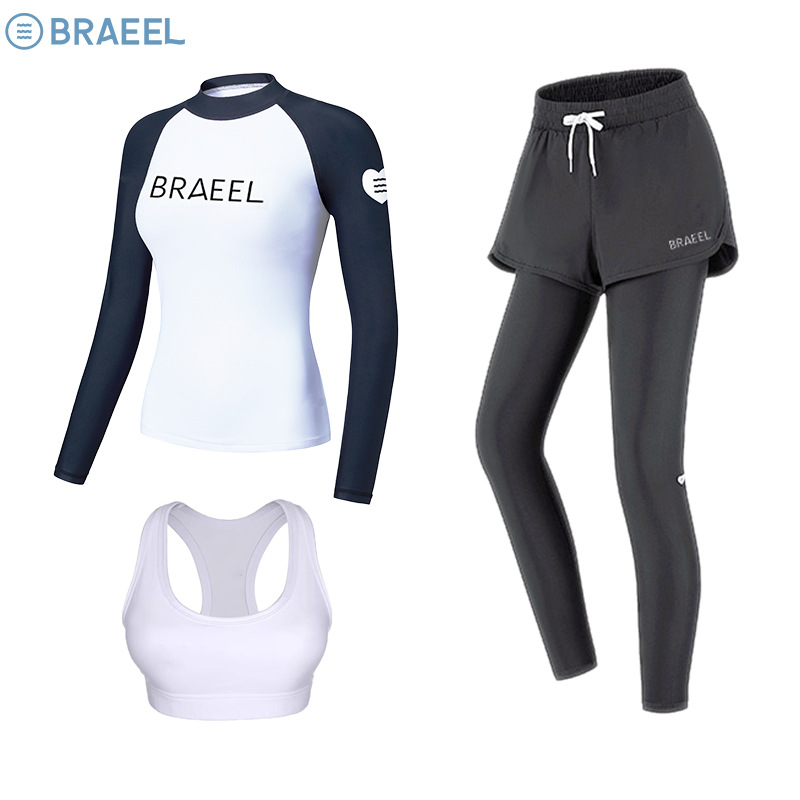 신상 한국 멩메이기 스타일 다이빙 서핑 수영복 여성용 자외선 차단 속건 긴팔 수영복 상의 분리형