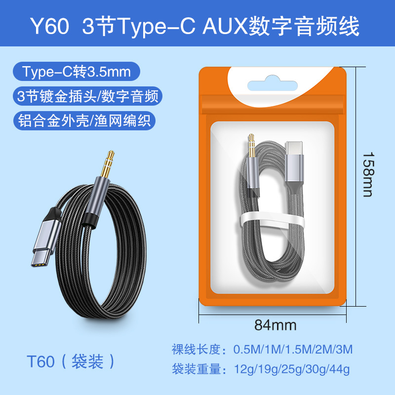 • 디지털 유형-c ~ 3.5 [자동차 AUX/오디오] T60 베어 와이어