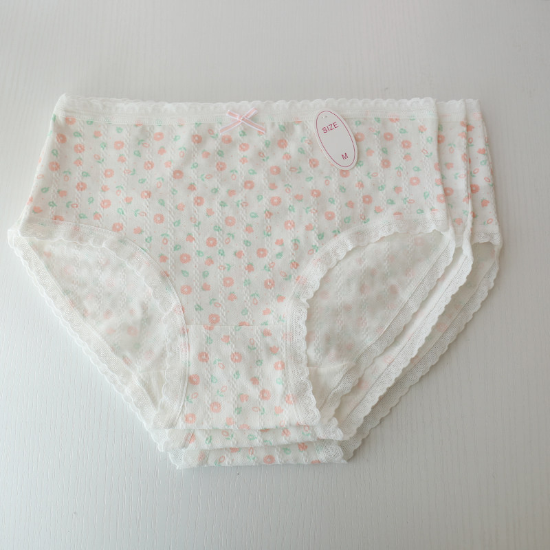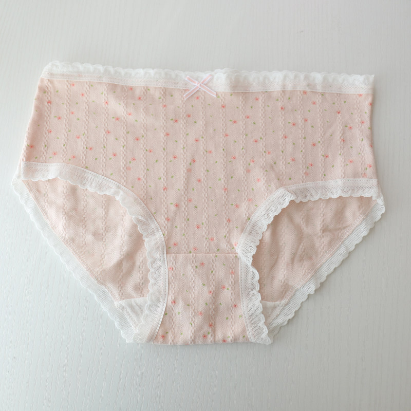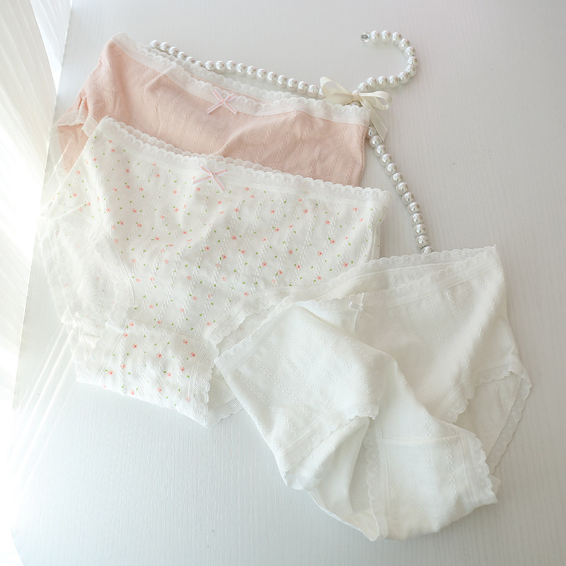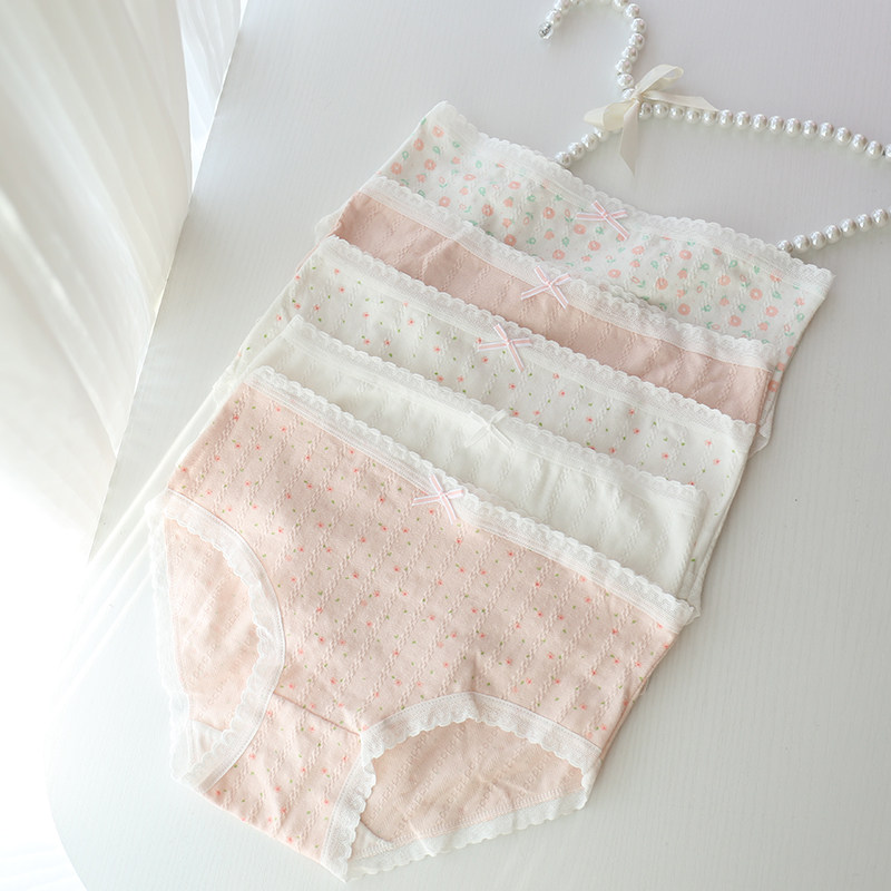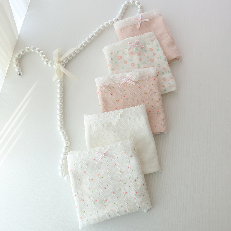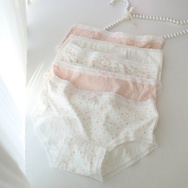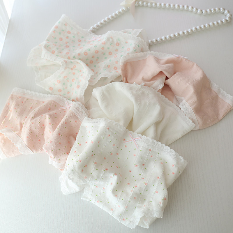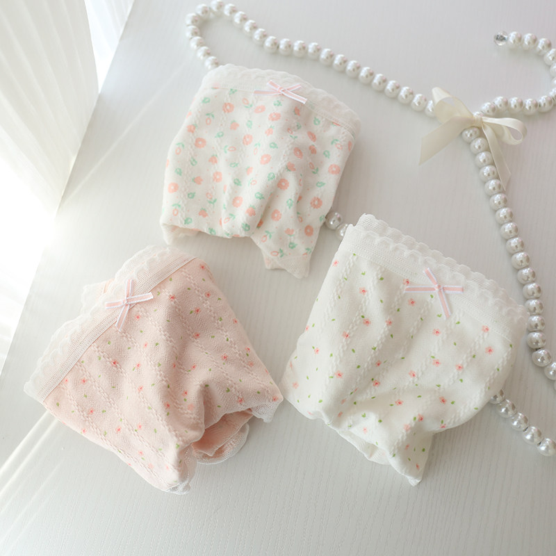 Js015 프렌치 플로럴 자카드 면 중간 허리 여성용 팬티, 상큼하고 귀여운 삼각형, 소녀 학생용, 달콤한 스타일스토어 가기