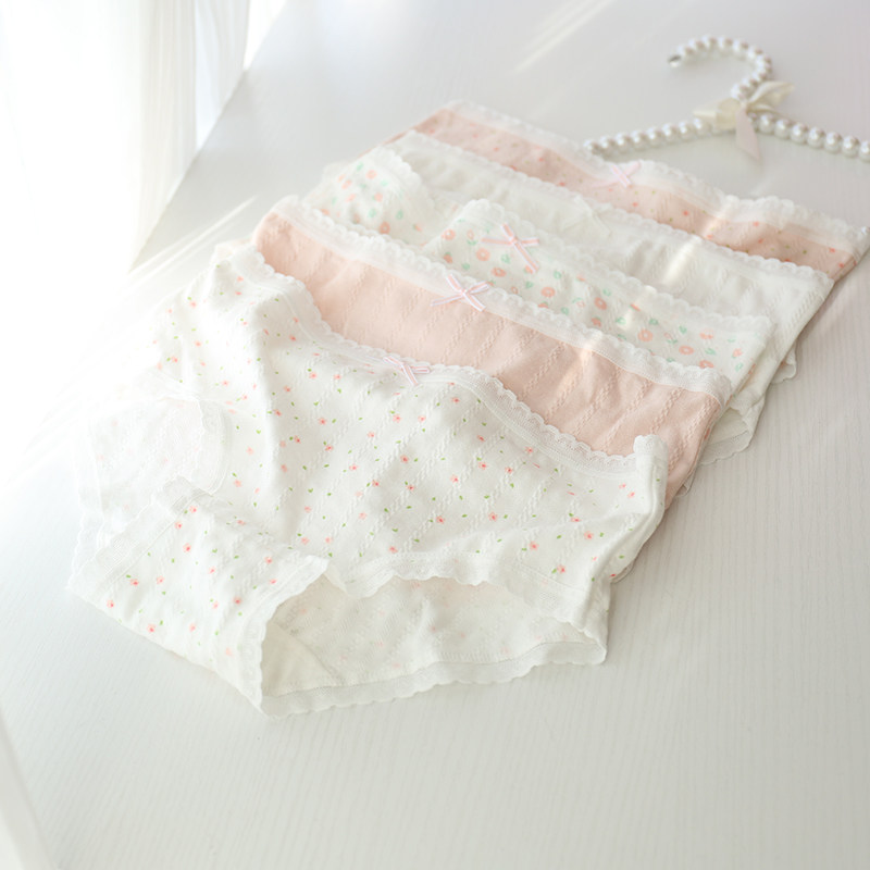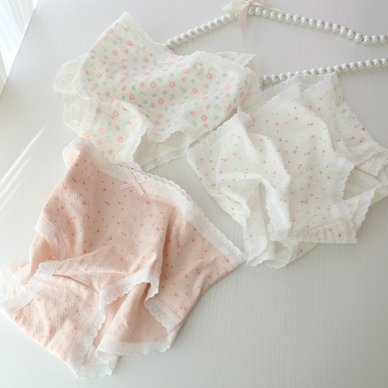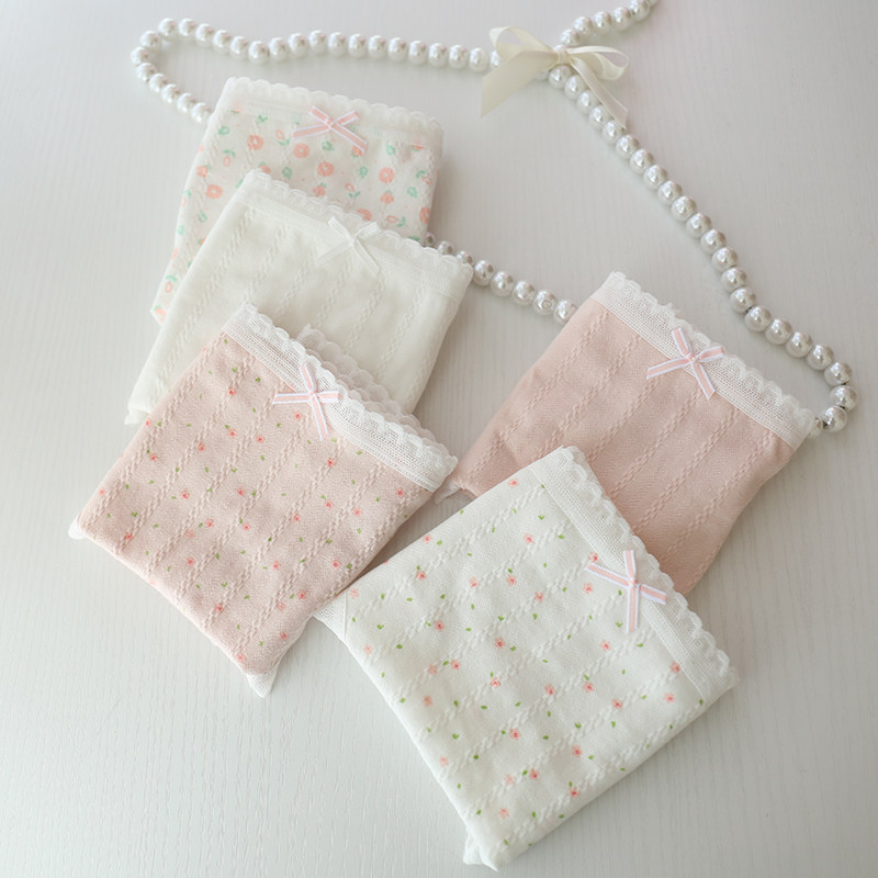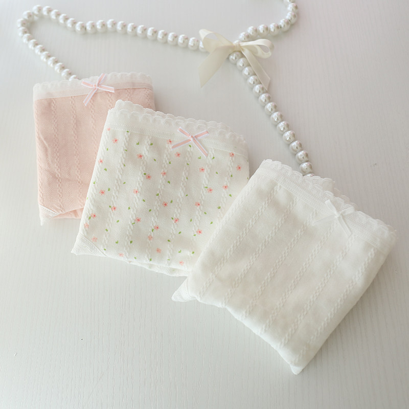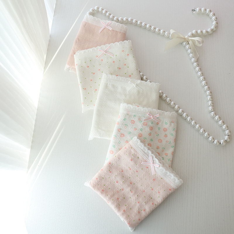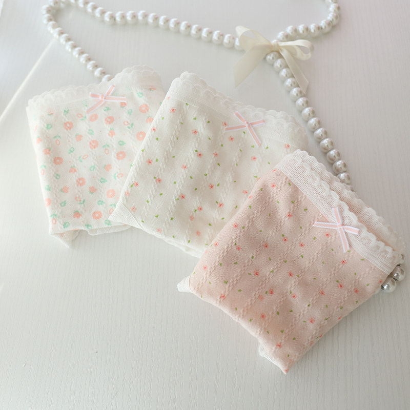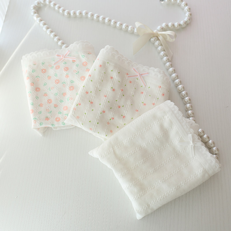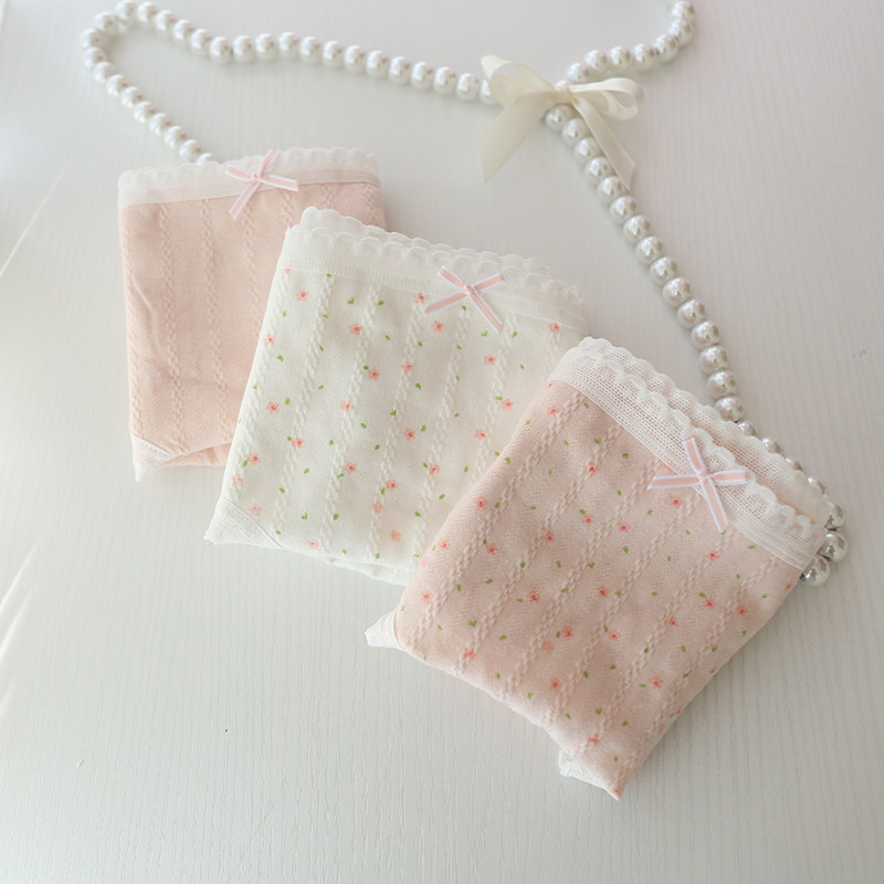 Js015 프렌치 플로럴 자카드 면 중간 허리 여성용 팬티, 상큼하고 귀여운 삼각형, 소녀 학생용, 달콤한 스타일스토어 가기