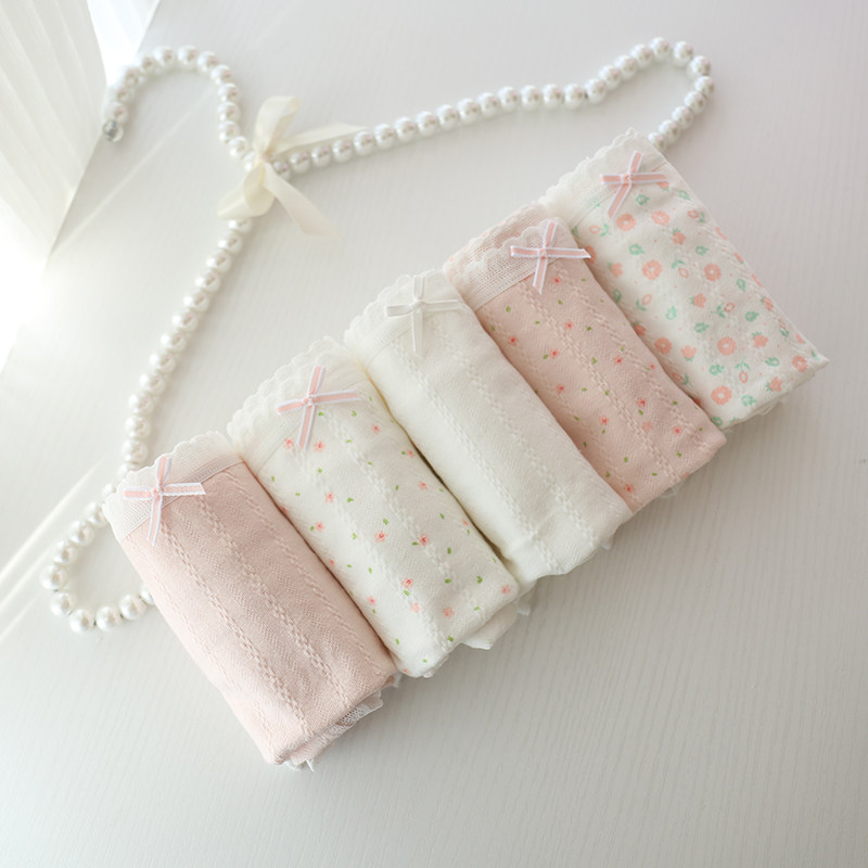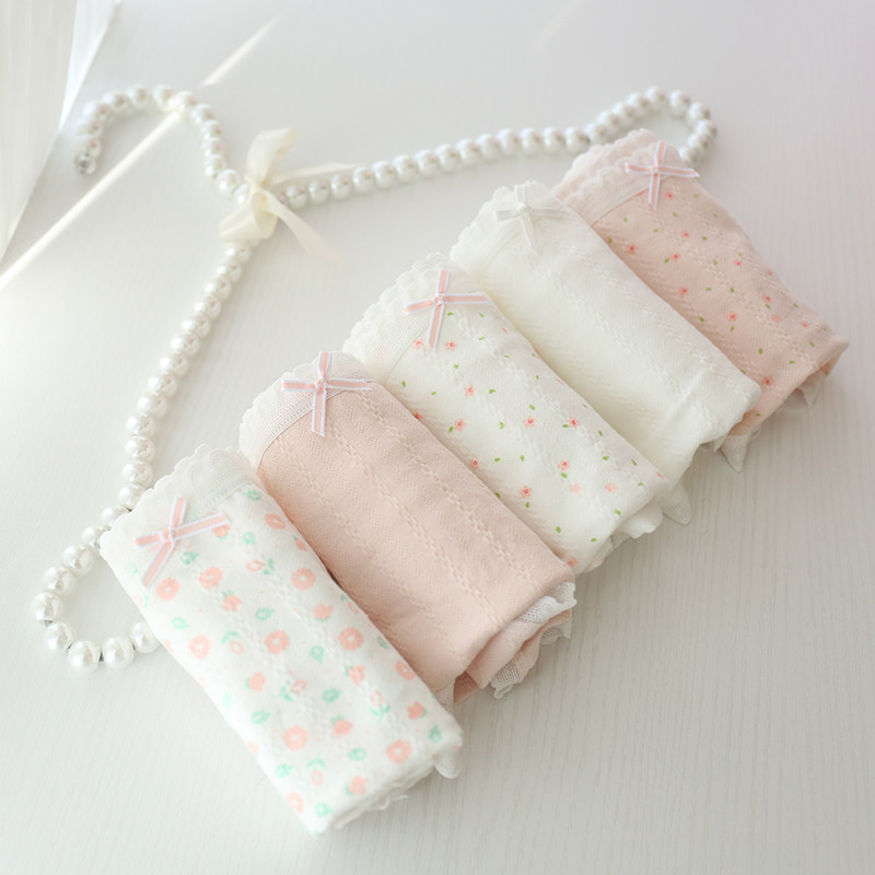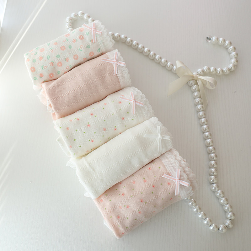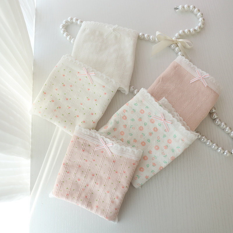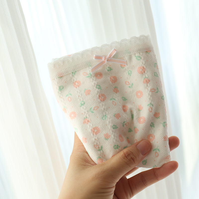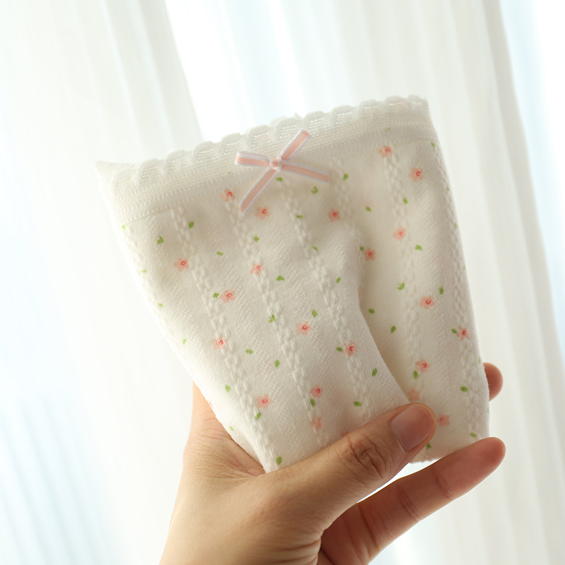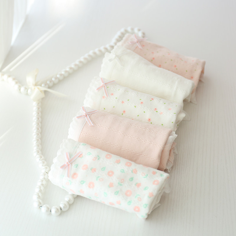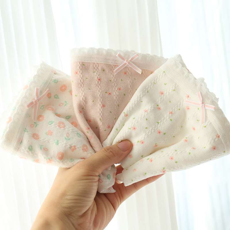 Js015 프렌치 플로럴 자카드 면 중간 허리 여성용 팬티, 상큼하고 귀여운 삼각형, 소녀 학생용, 달콤한 스타일스토어 가기