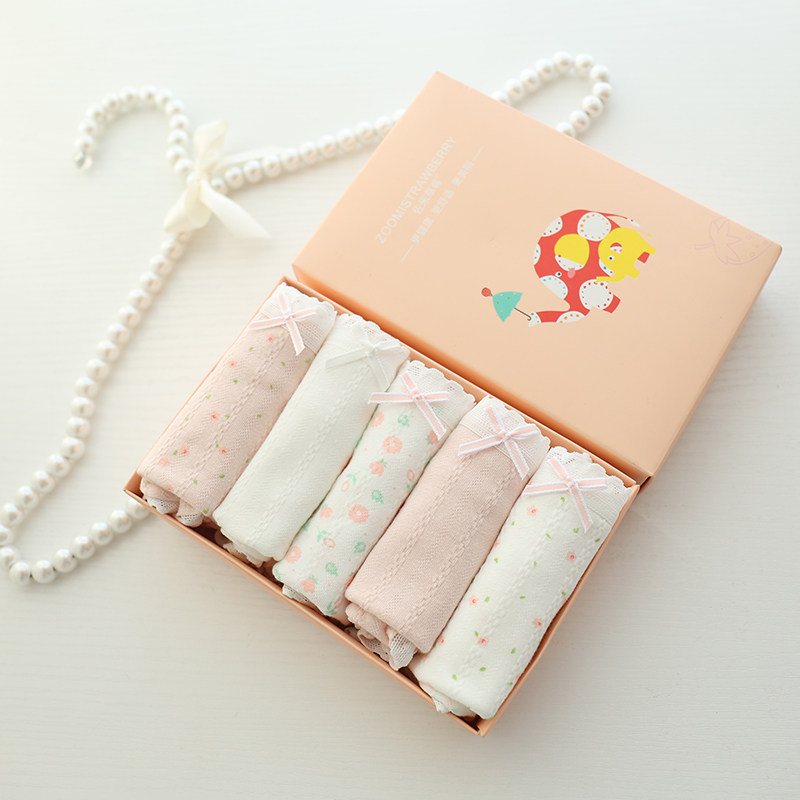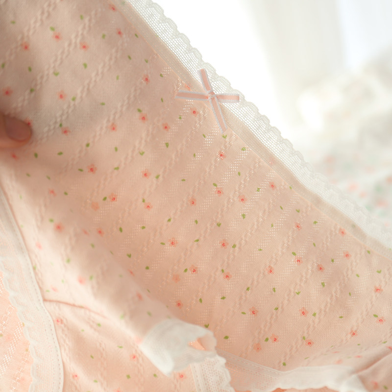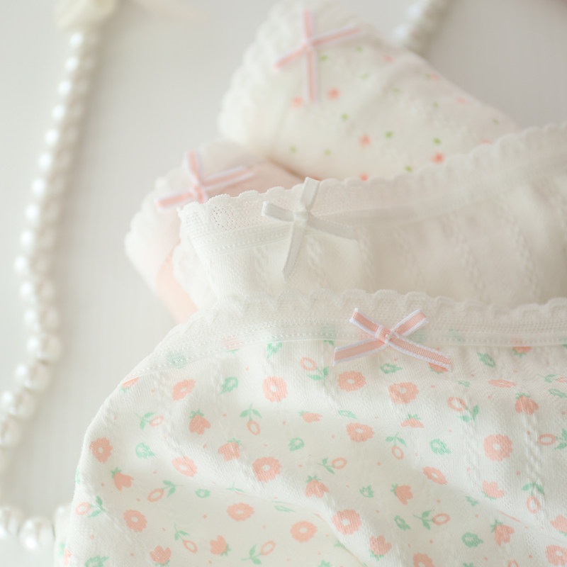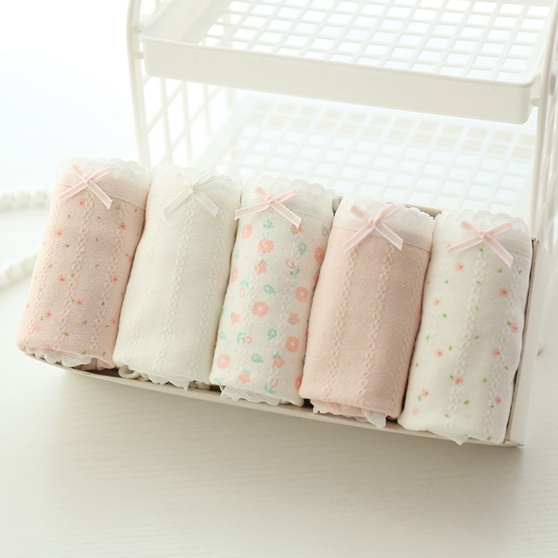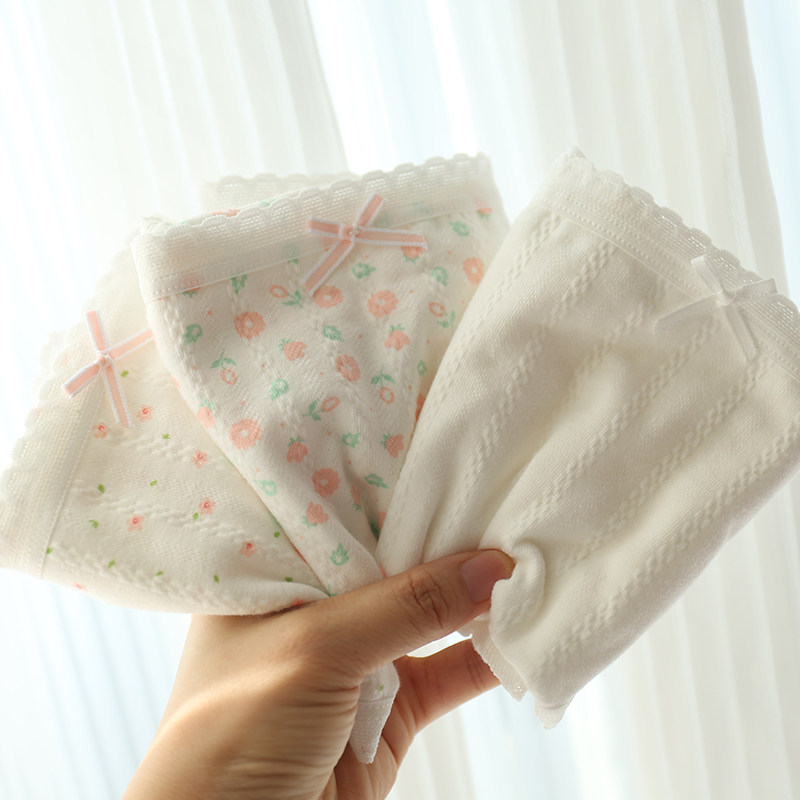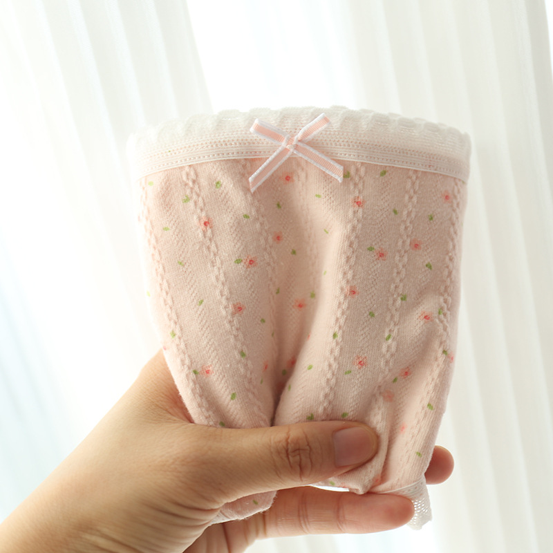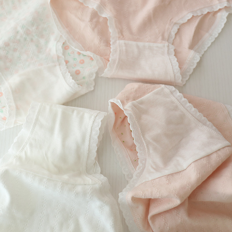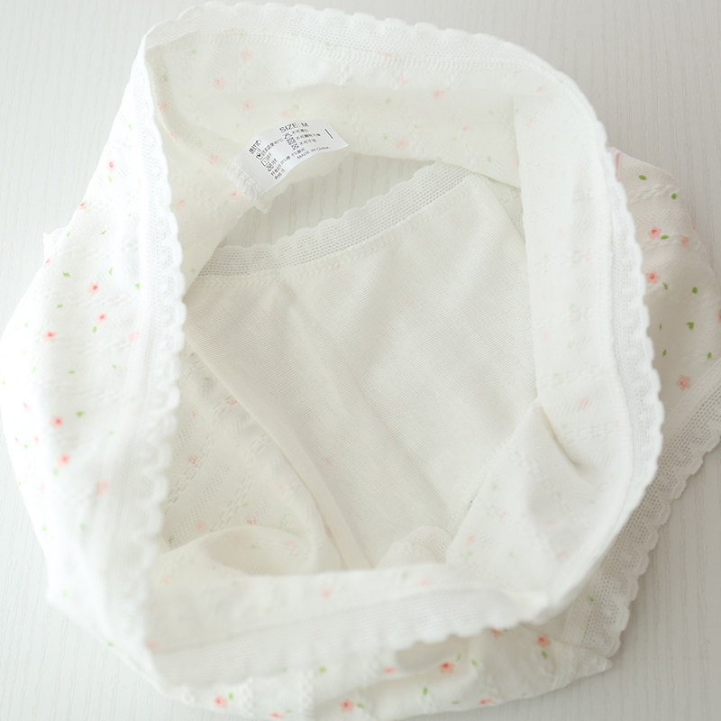Js015 프렌치 플로럴 자카드 면 중간 허리 여성용 팬티, 상큼하고 귀여운 삼각형, 소녀 학생용, 달콤한 스타일스토어 가기