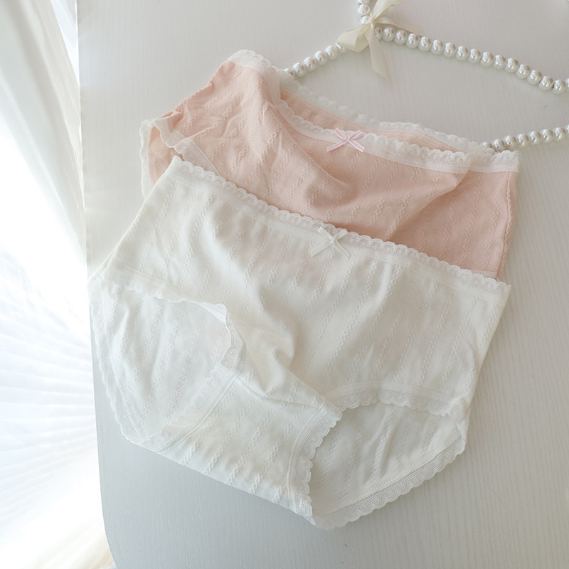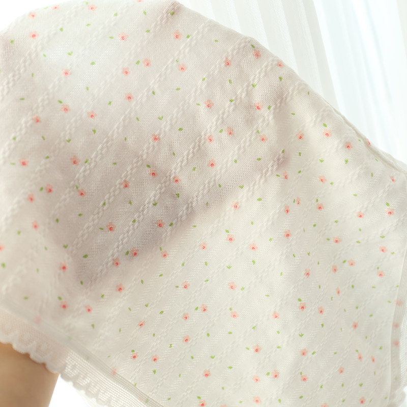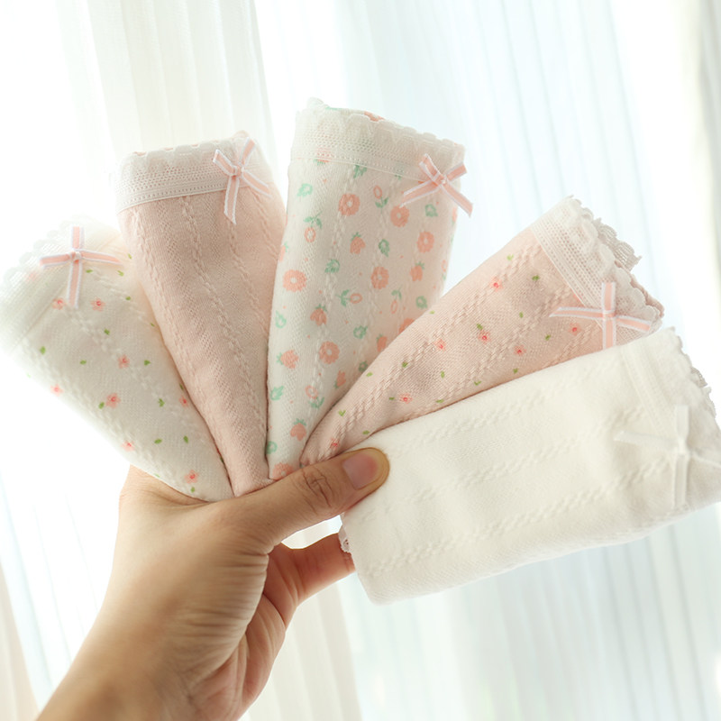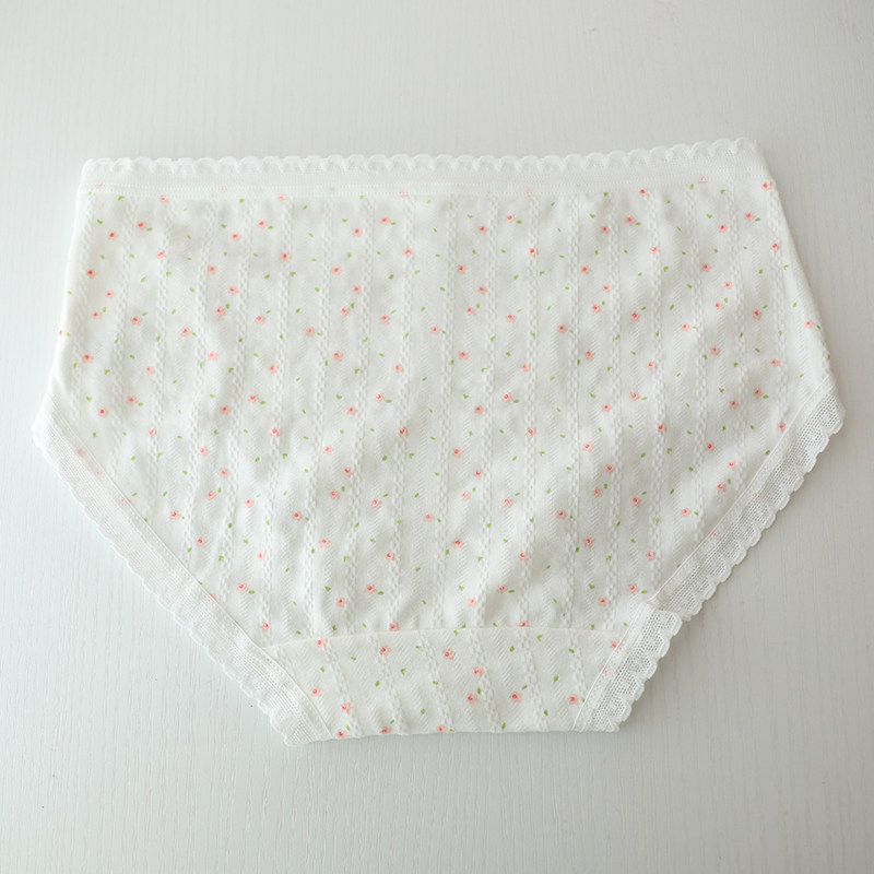 Js015 프렌치 플로럴 자카드 면 중간 허리 여성용 팬티, 상큼하고 귀여운 삼각형, 소녀 학생용, 달콤한 스타일