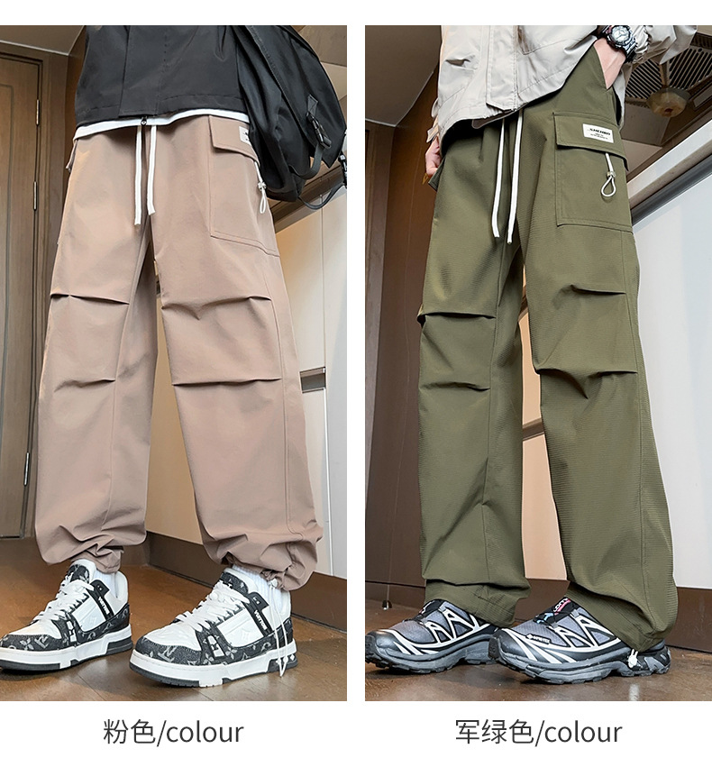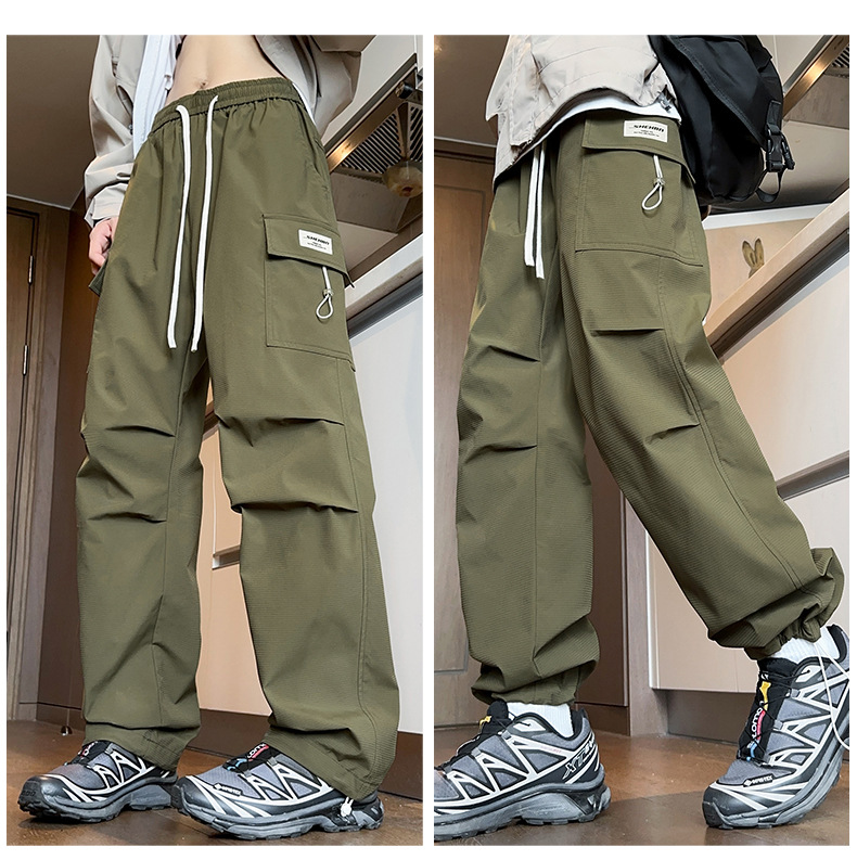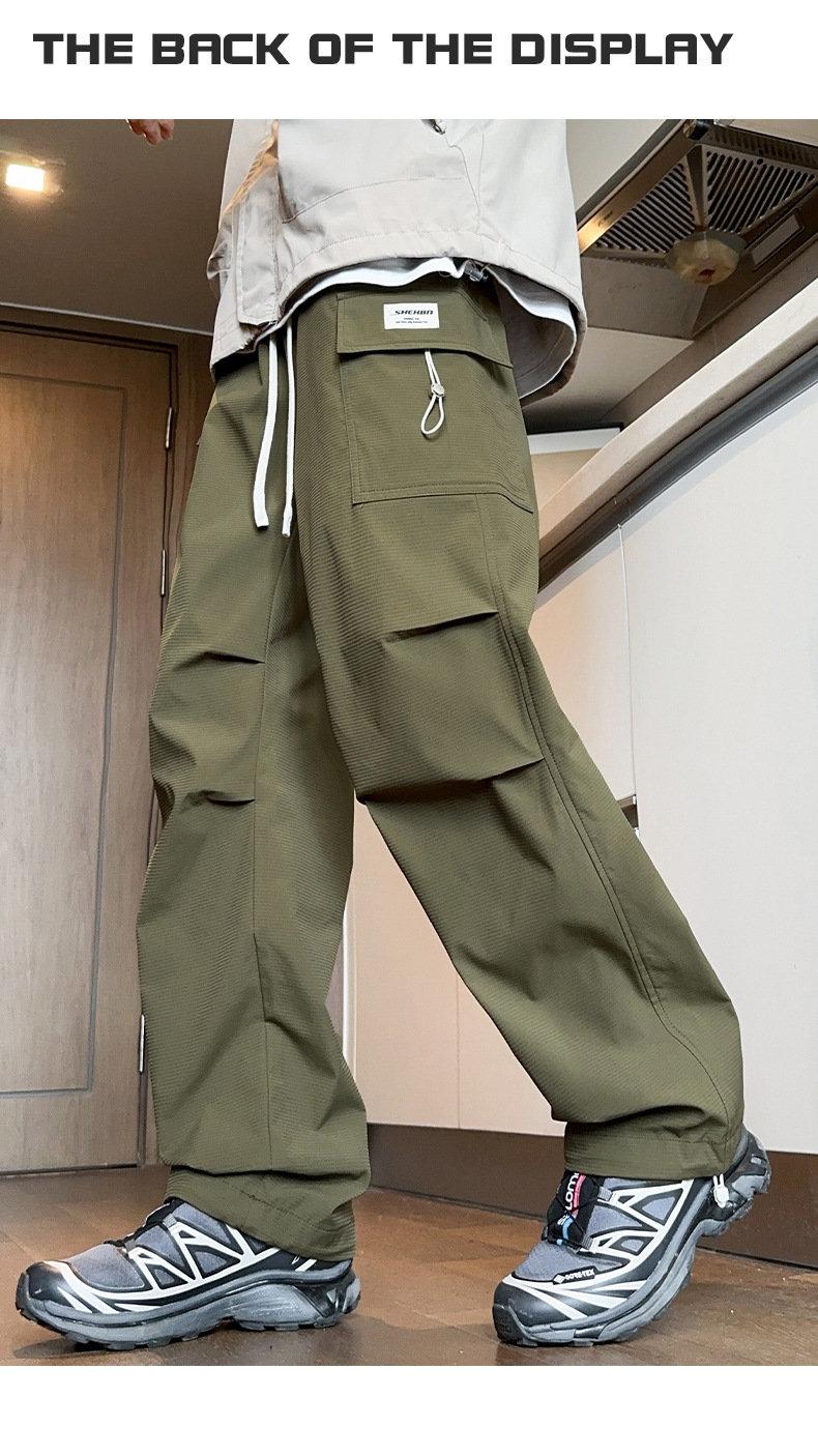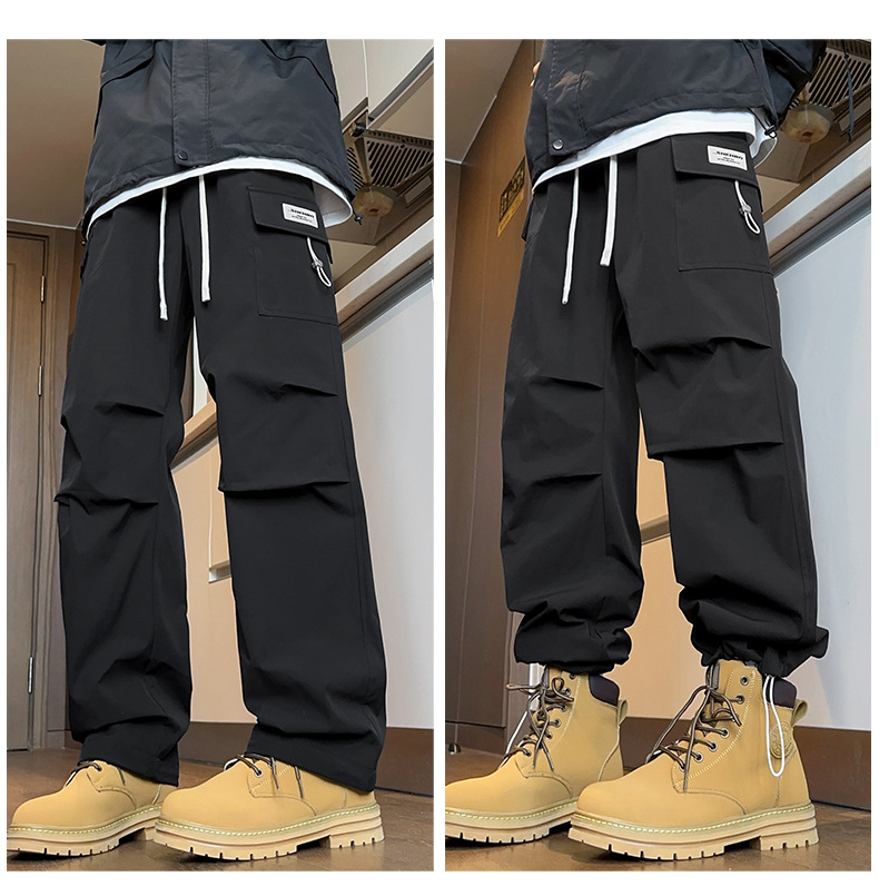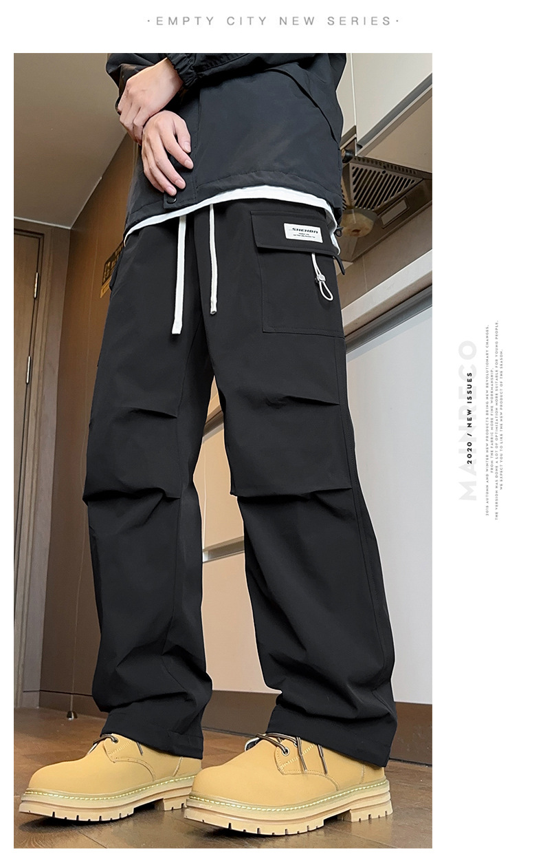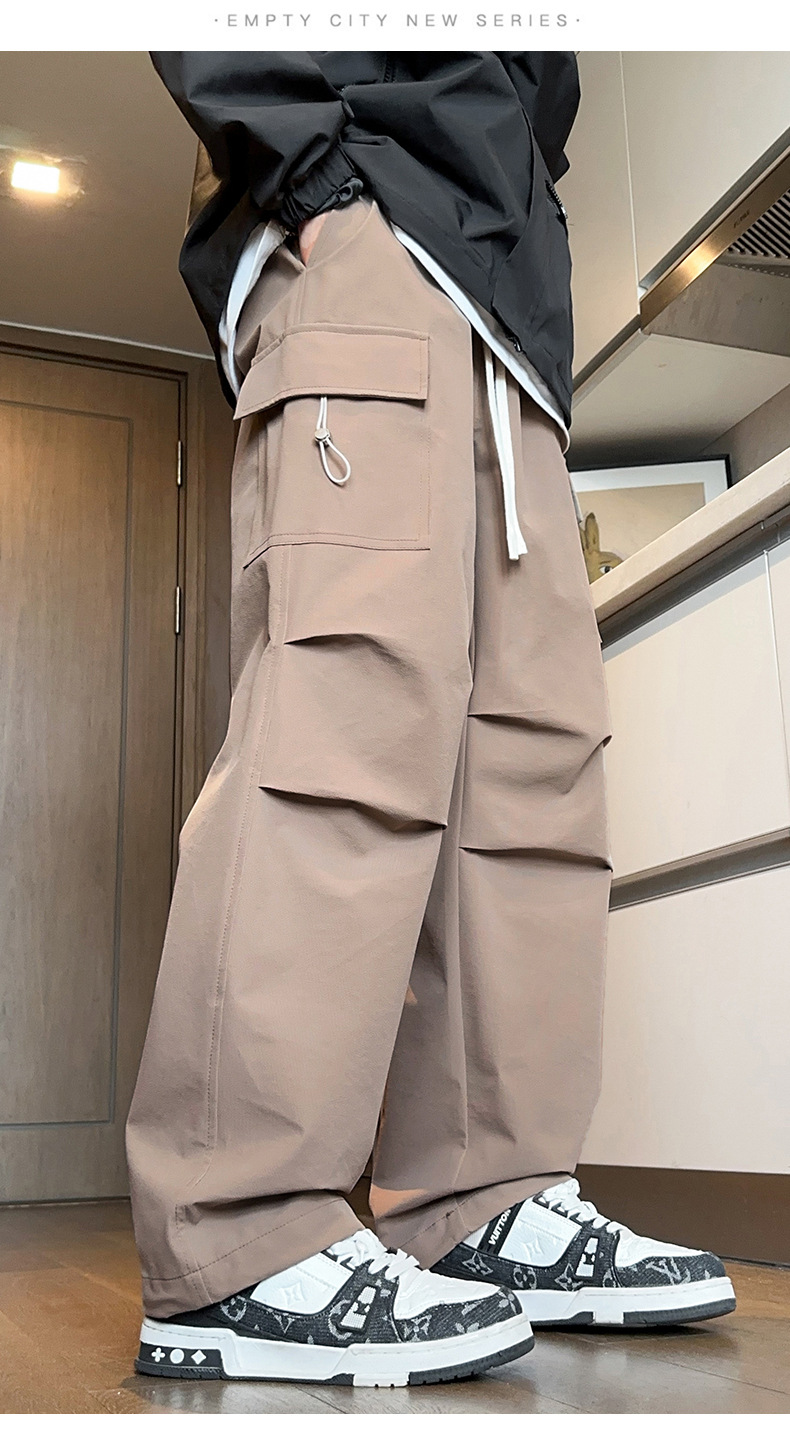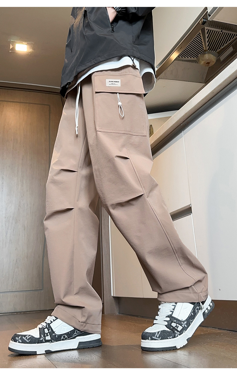 2025년 가을 신상 남성용 스트레이트 작업복 바지, 루즈핏 다중 포켓 트렌디 캐주얼 바지, 중학생용 멋지고 세련된 패션 바지스토어 가기