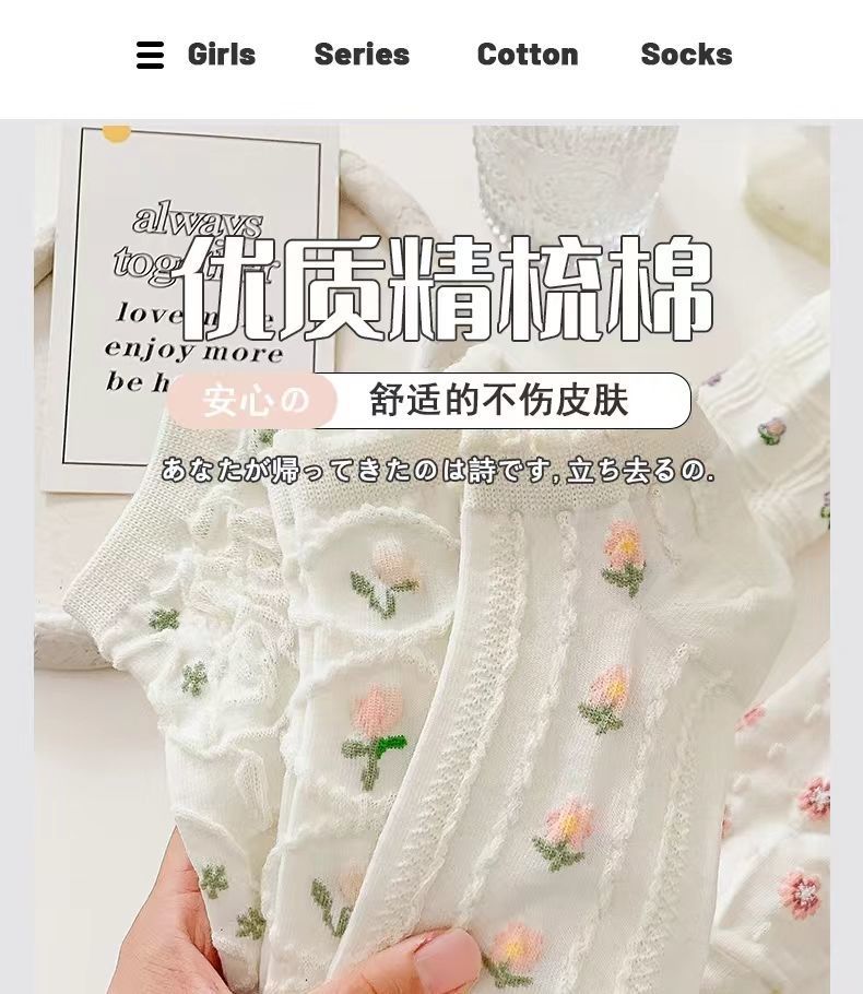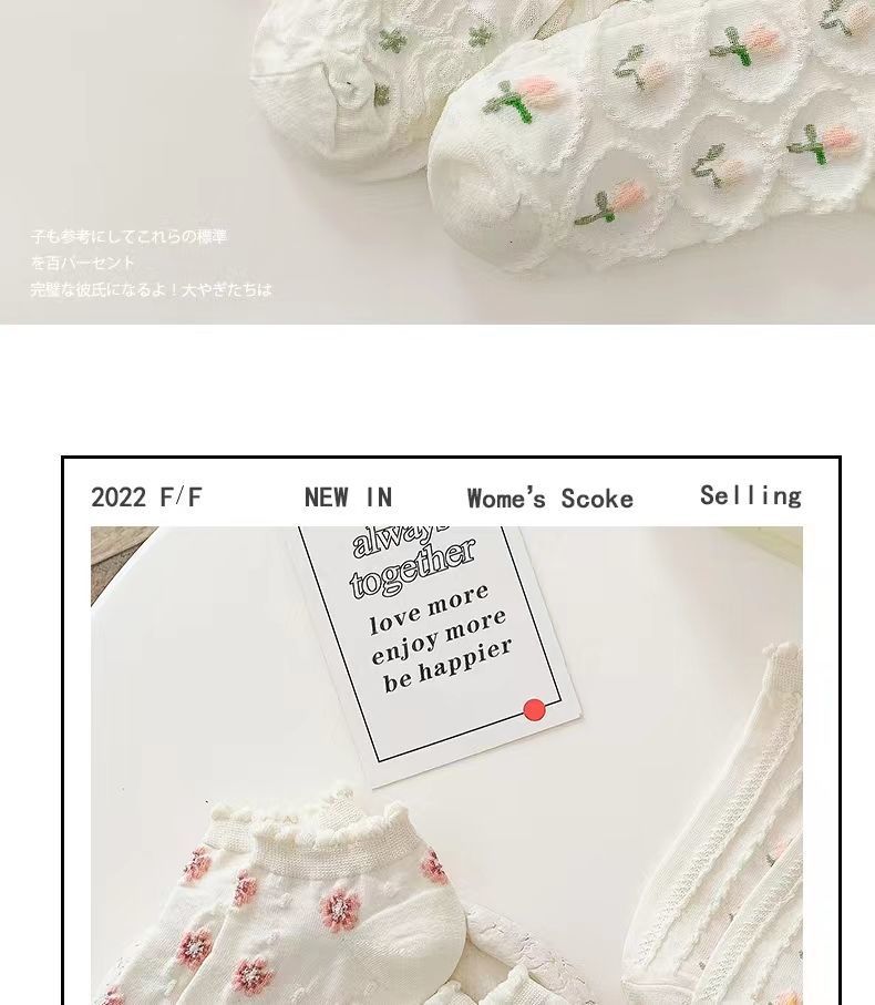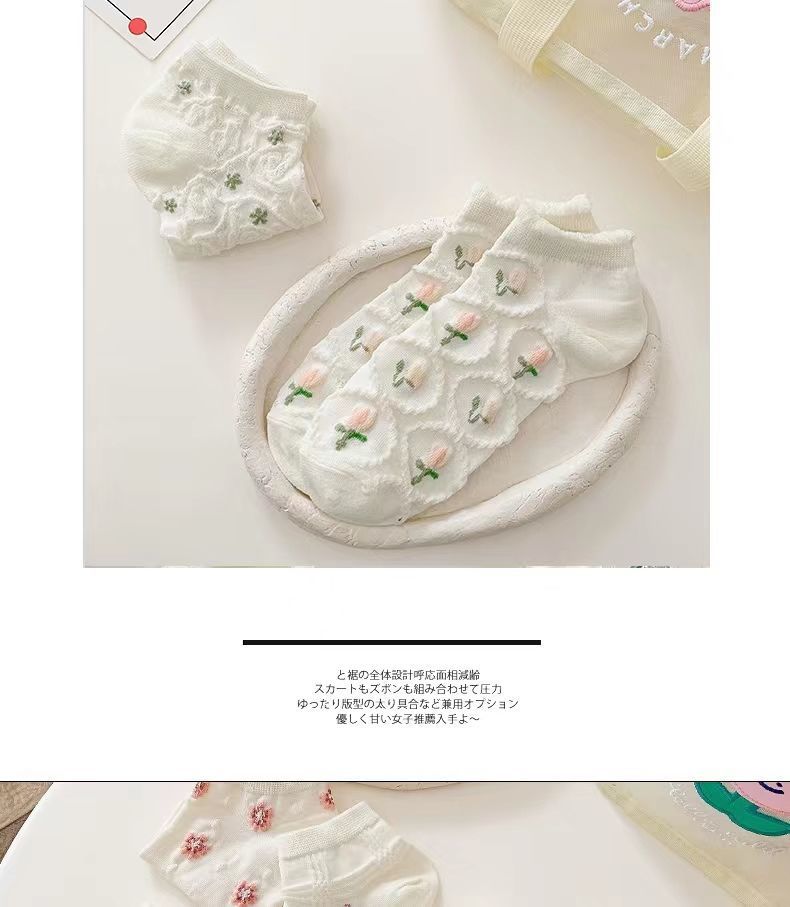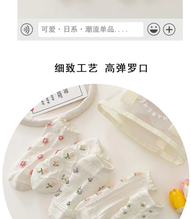 면 양말 화이트 로리타 양말 여성용 짧은 양말 여름 얇은 일본 스타일 귀여운 레이스 보트 양말 트렌디한 면 양말 학생용스토어 가기