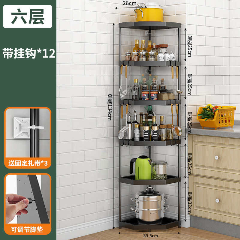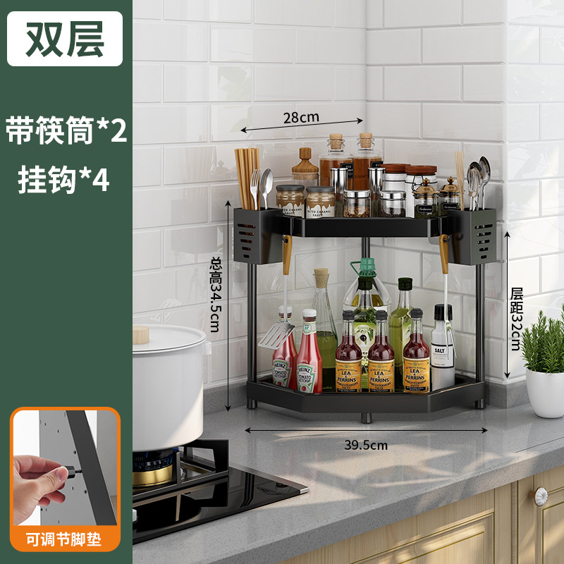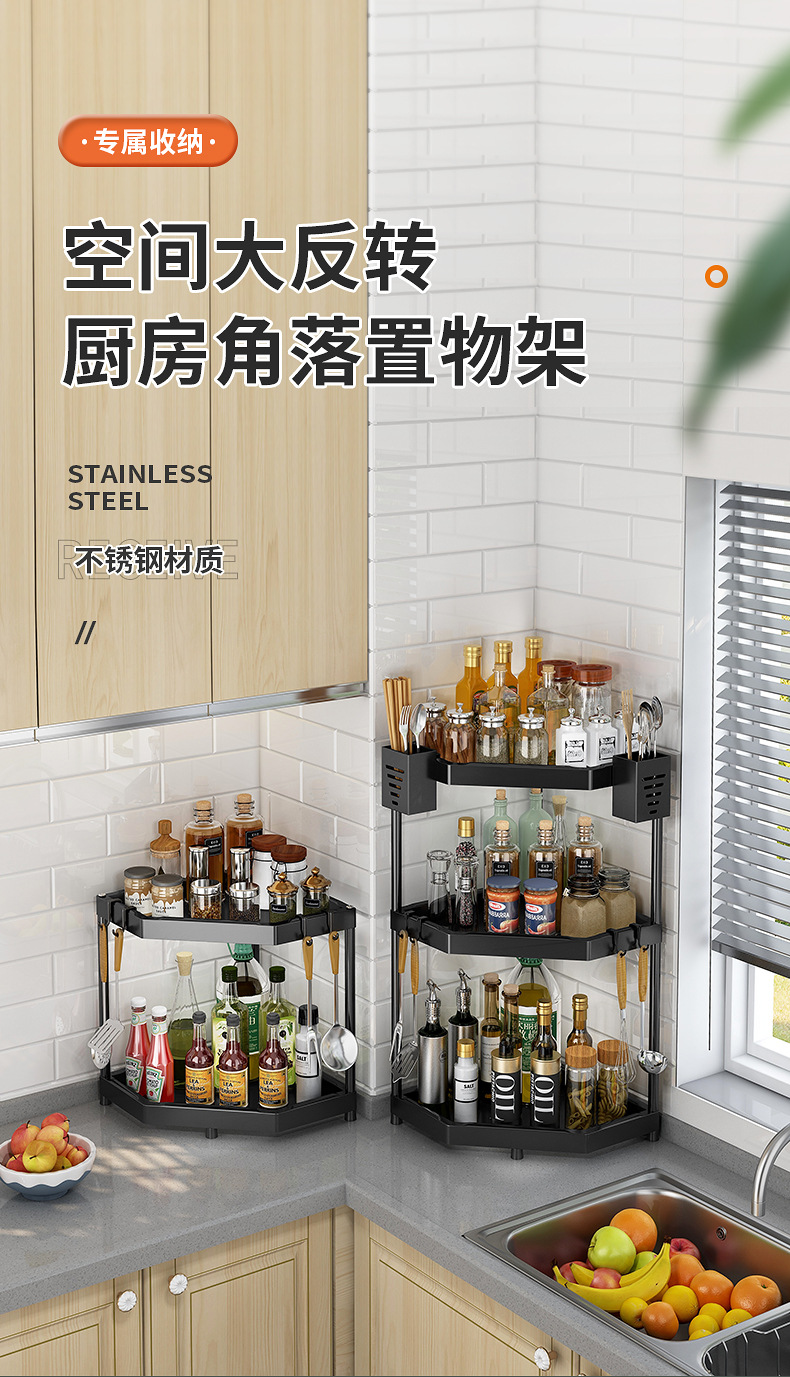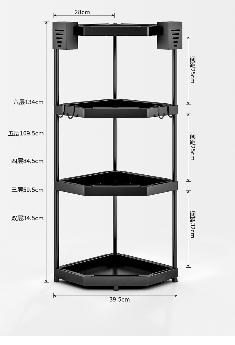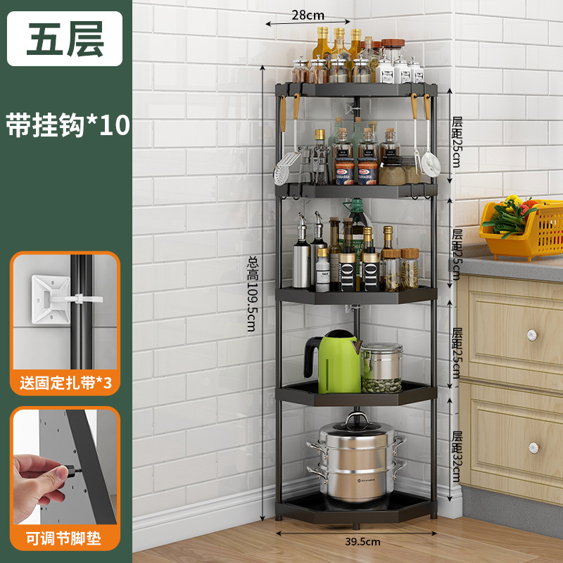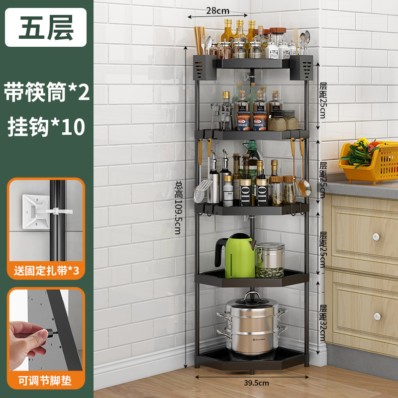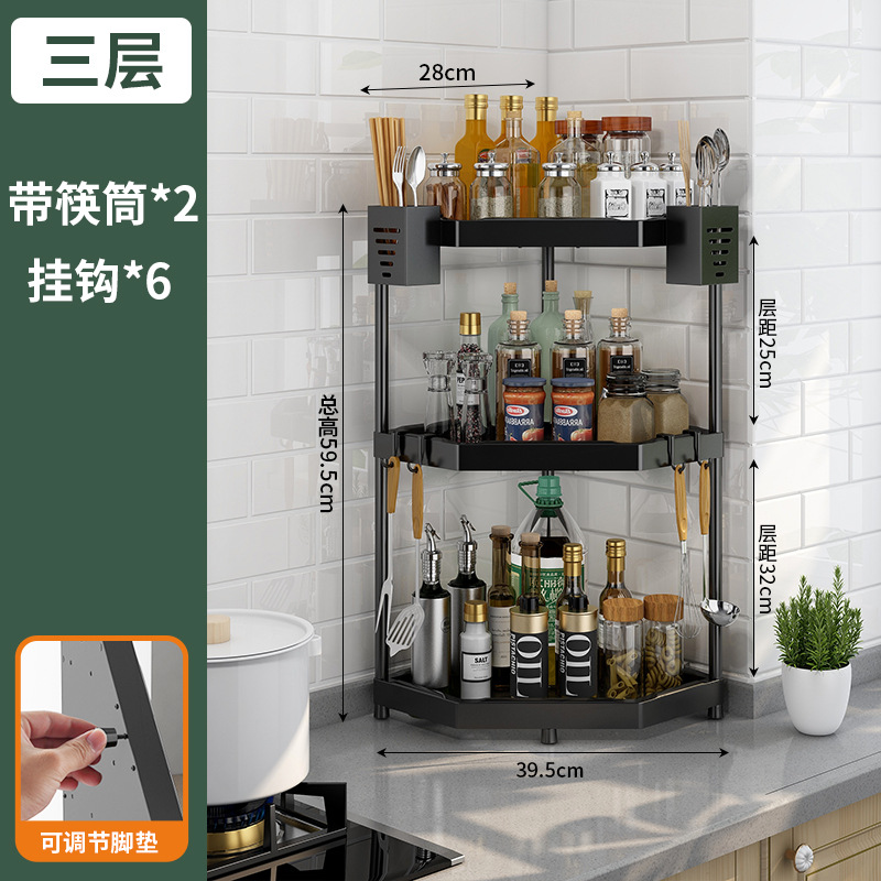 블랙 주방 코너 스토리지 랙 펀치 프리 삼각대 스테인레스 스틸 노래 랙 조리대 코너 스토리지 랙 다층